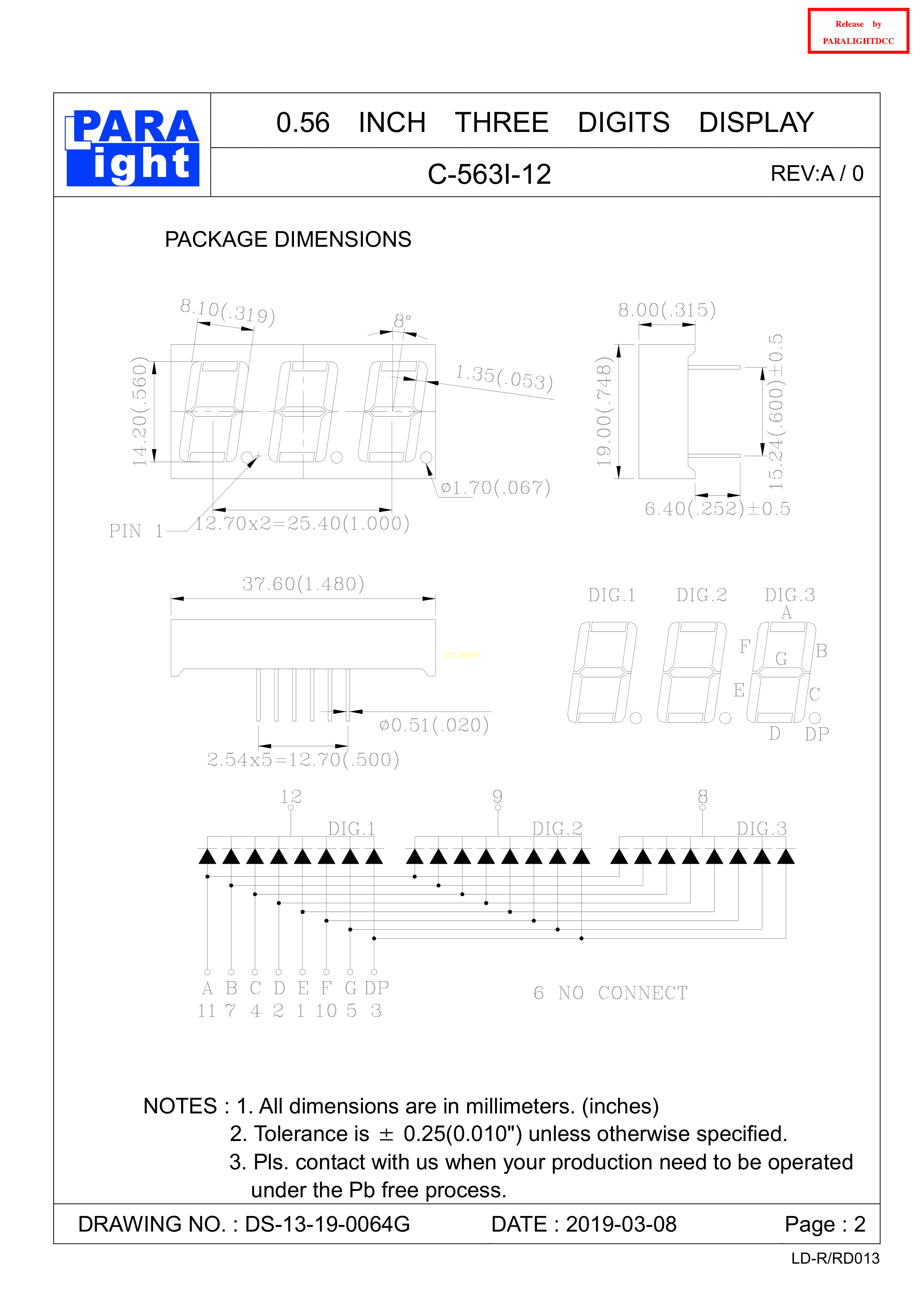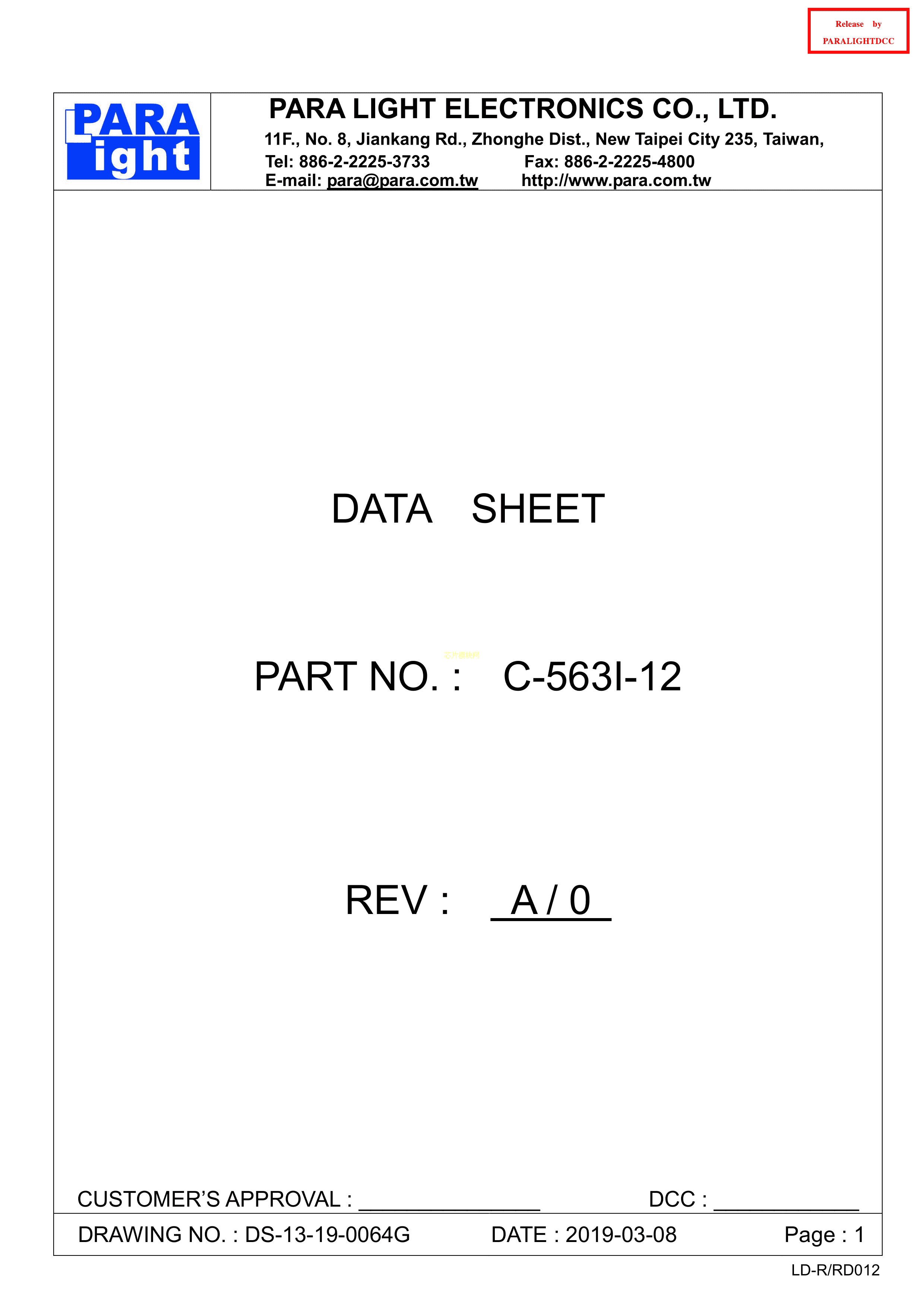 C-563I-12数据手册插件封装PARALIGHT(台湾光鼎)PDF规格书,中英文下载