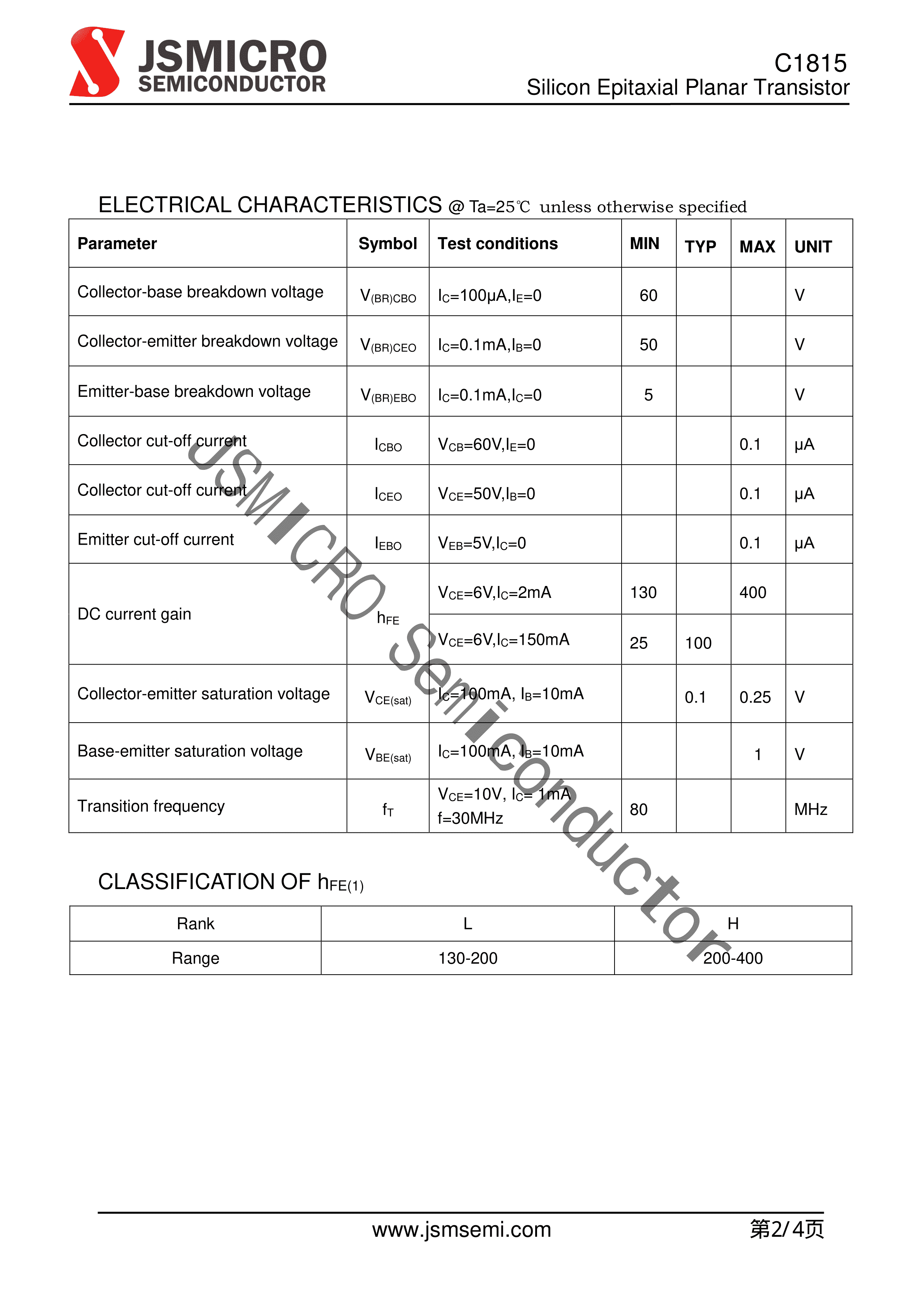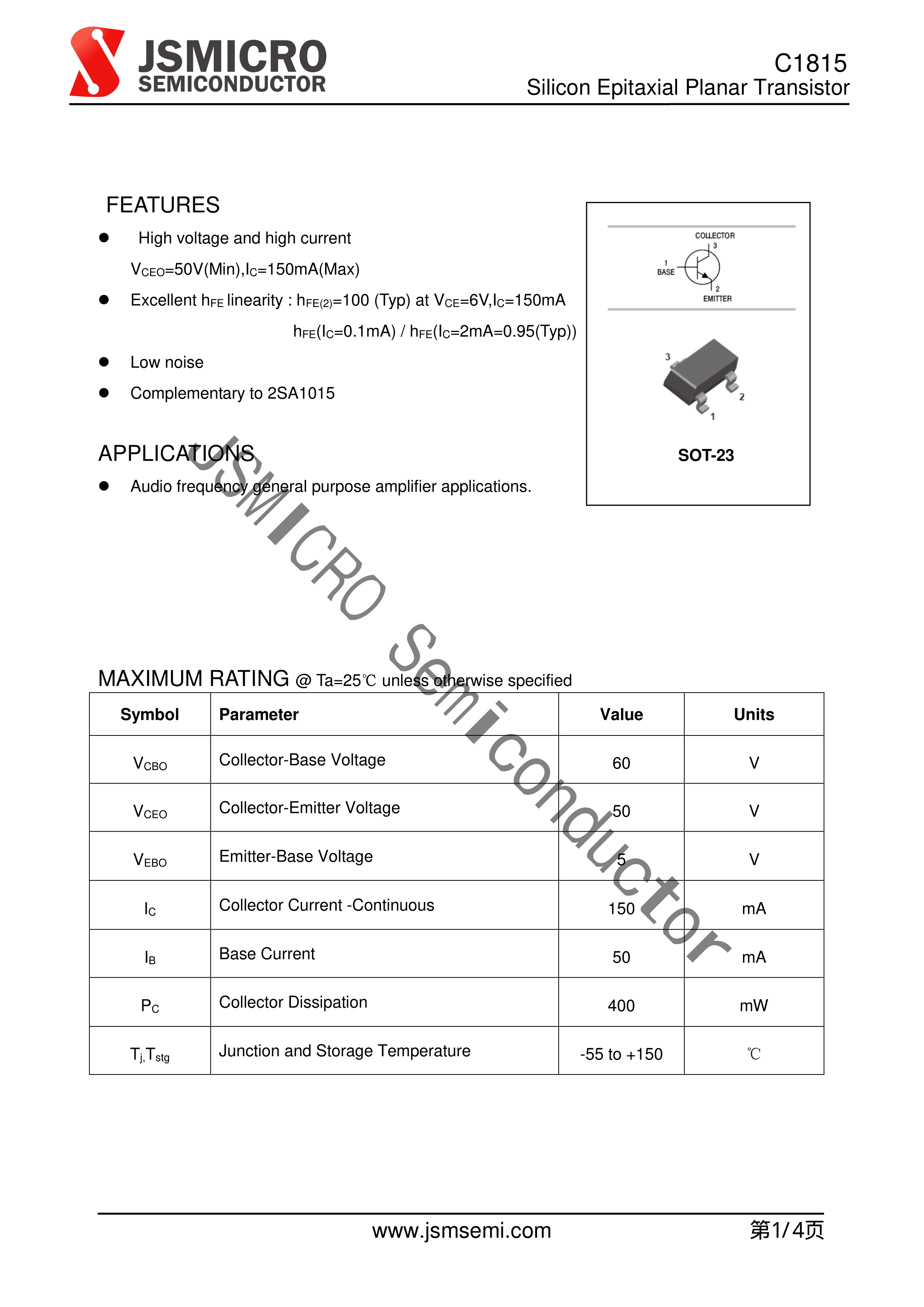 C1815数据手册SOT-23封装JSMSEMI(杰盛微)PDF规格书,中英文下载