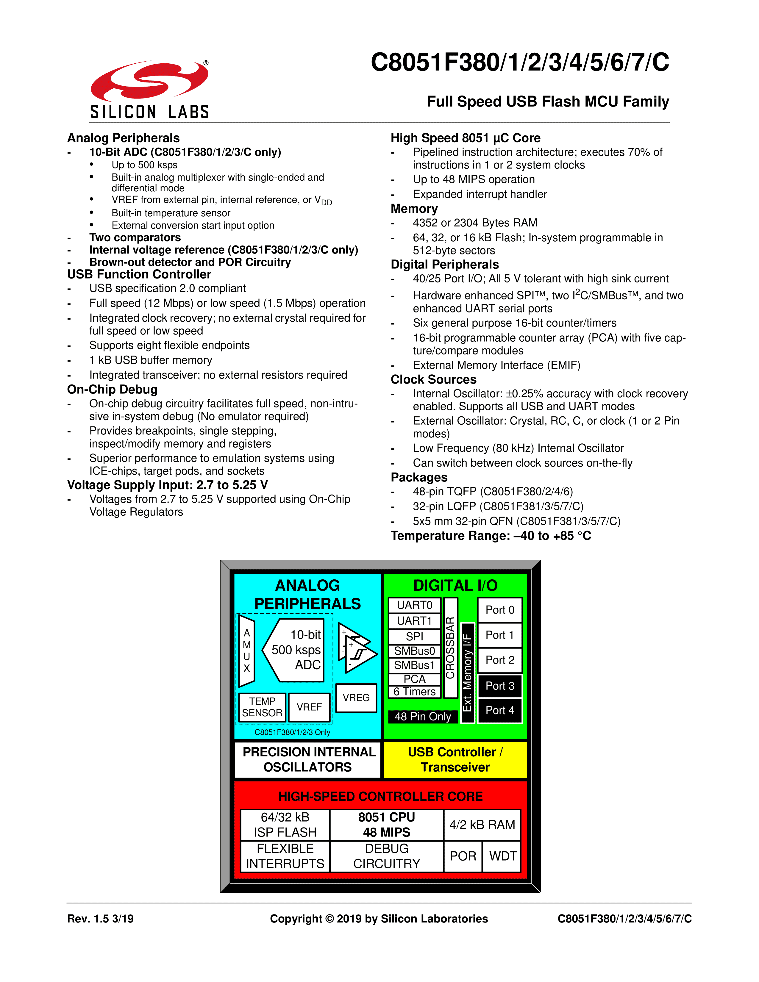 C8051F386-GQR数据手册TQFP-48(7x7)封装SILICON LABS(芯科)PDF