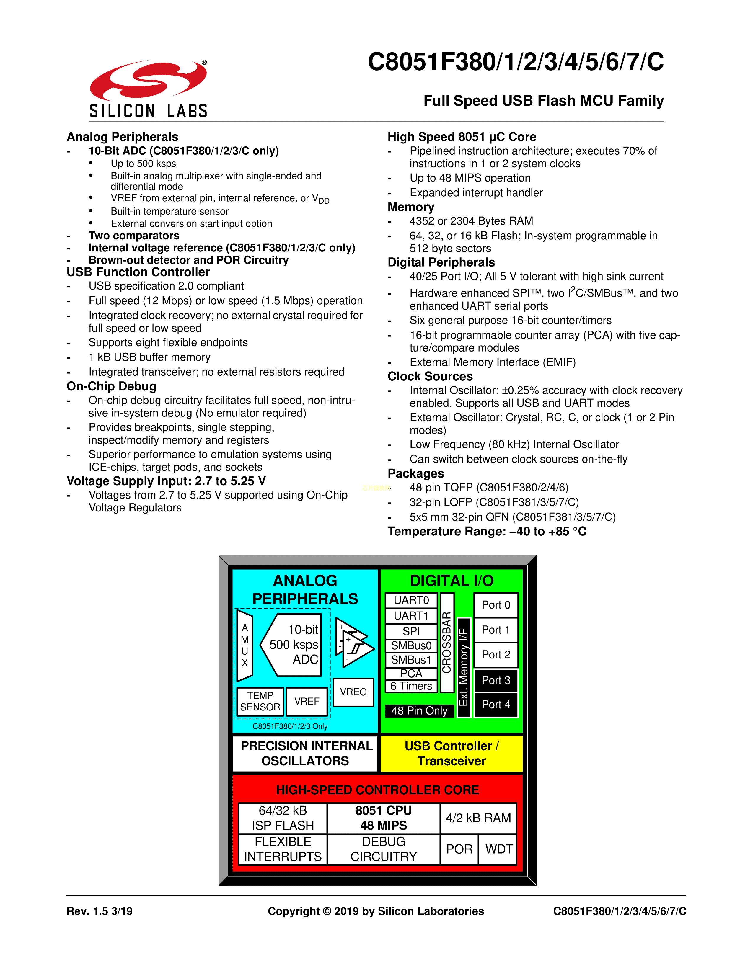 C8051F38C-GMR数据手册QFN-32(5x5)封装SILICONLABS(芯科)PDF规格书,中英文下载