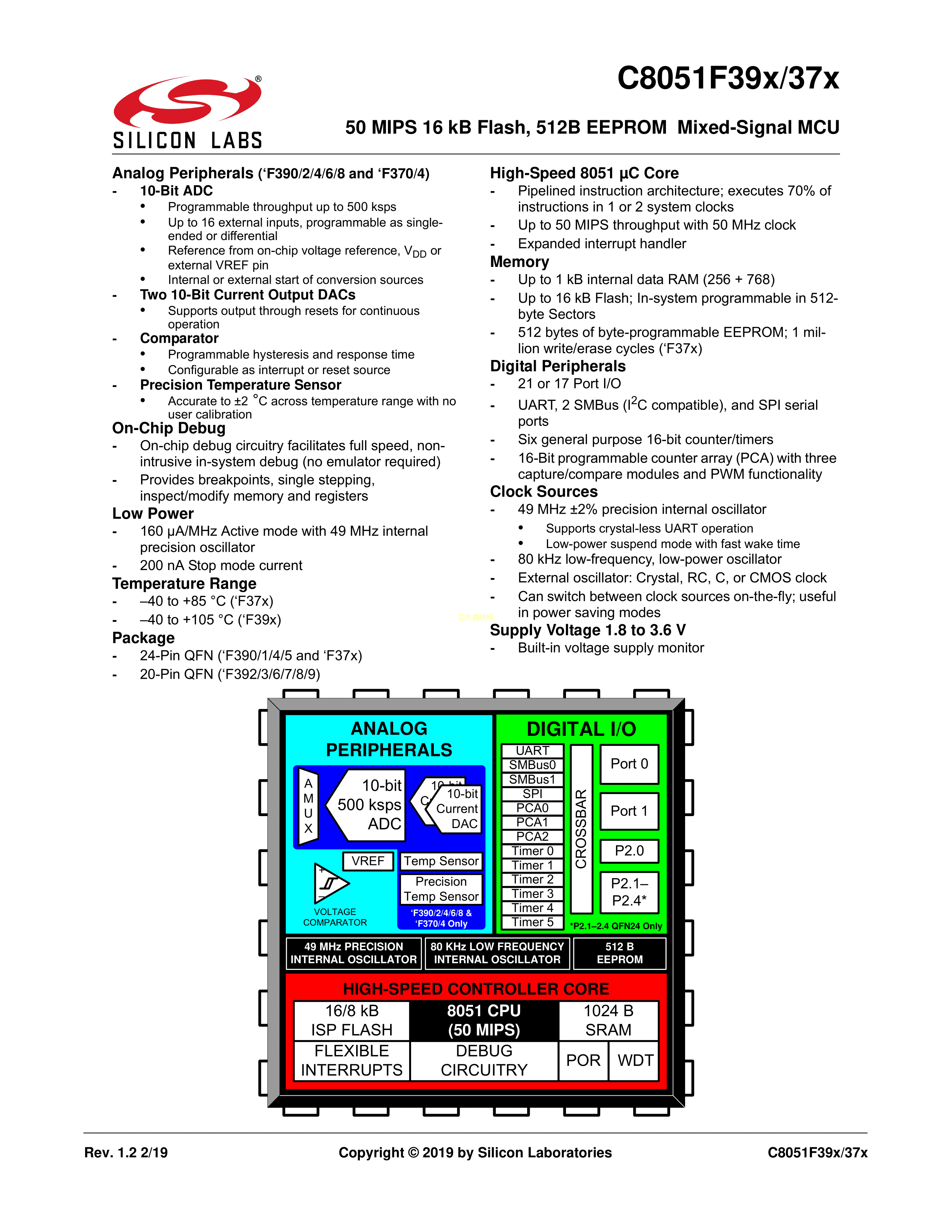 C8051F396-A-GM数据手册QFN-20封装SILICONLABS(芯科)PDF规格书,中英