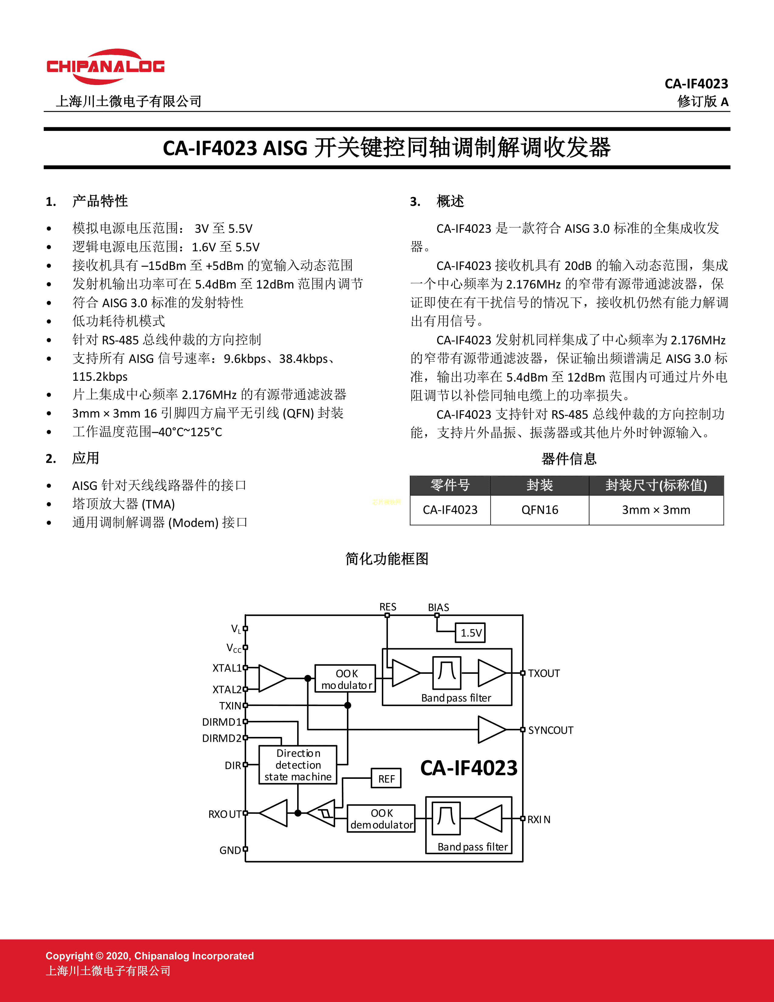 CA-IF4023数据手册QFN-16封装Chipanalog(川土)PDF规格书,中英文下载