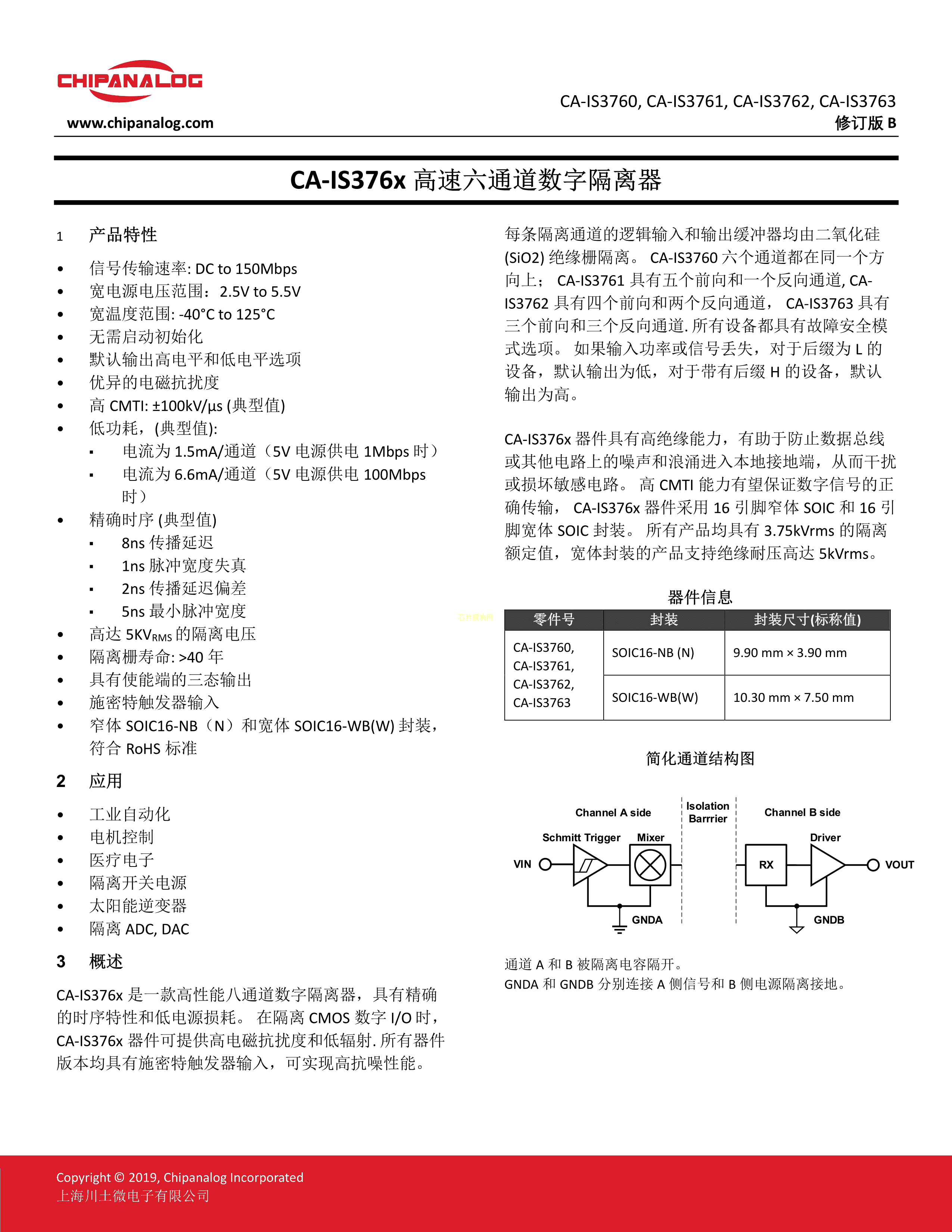 CA-IS3762HN数据手册SOIC-16封装Chipanalog(川土)PDF规格书,中英文下载