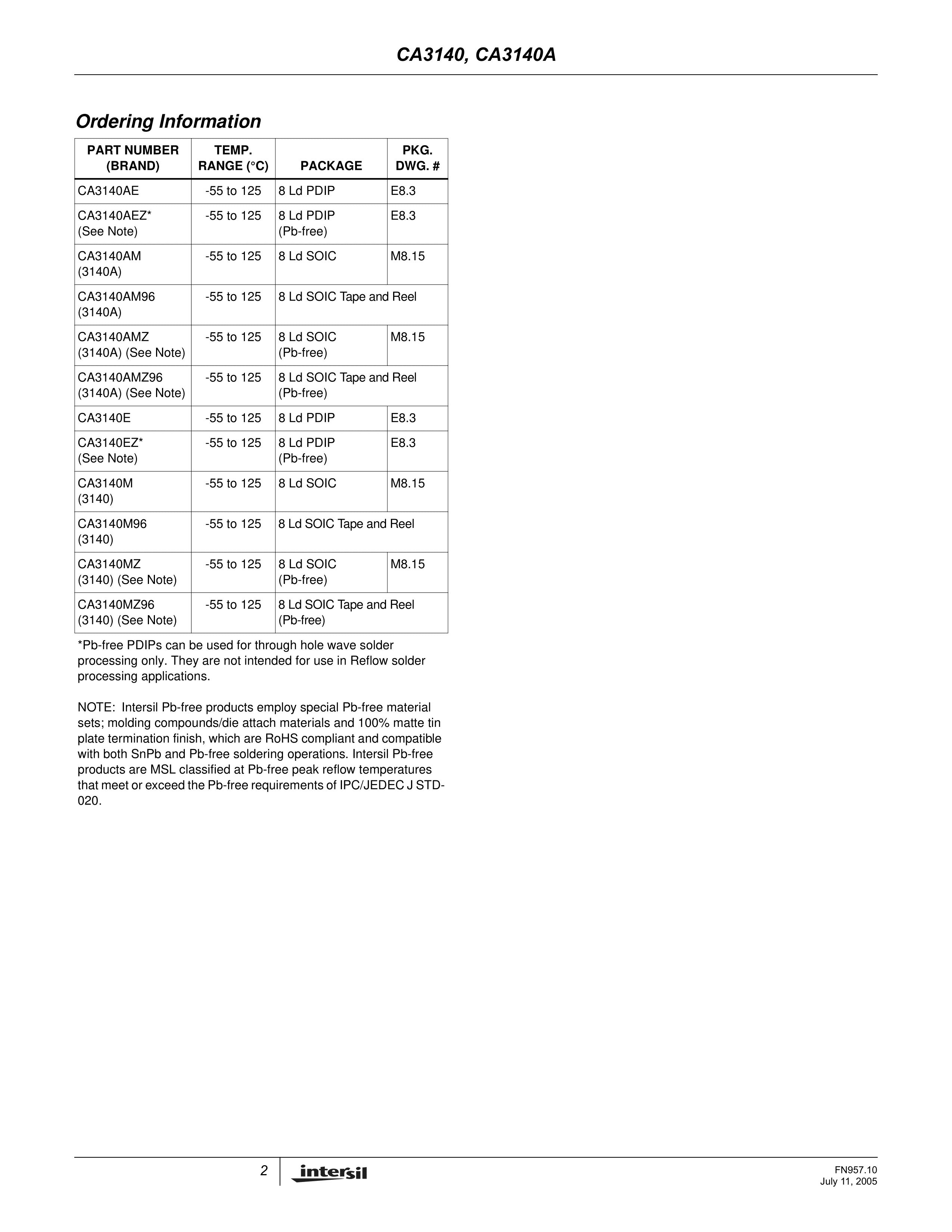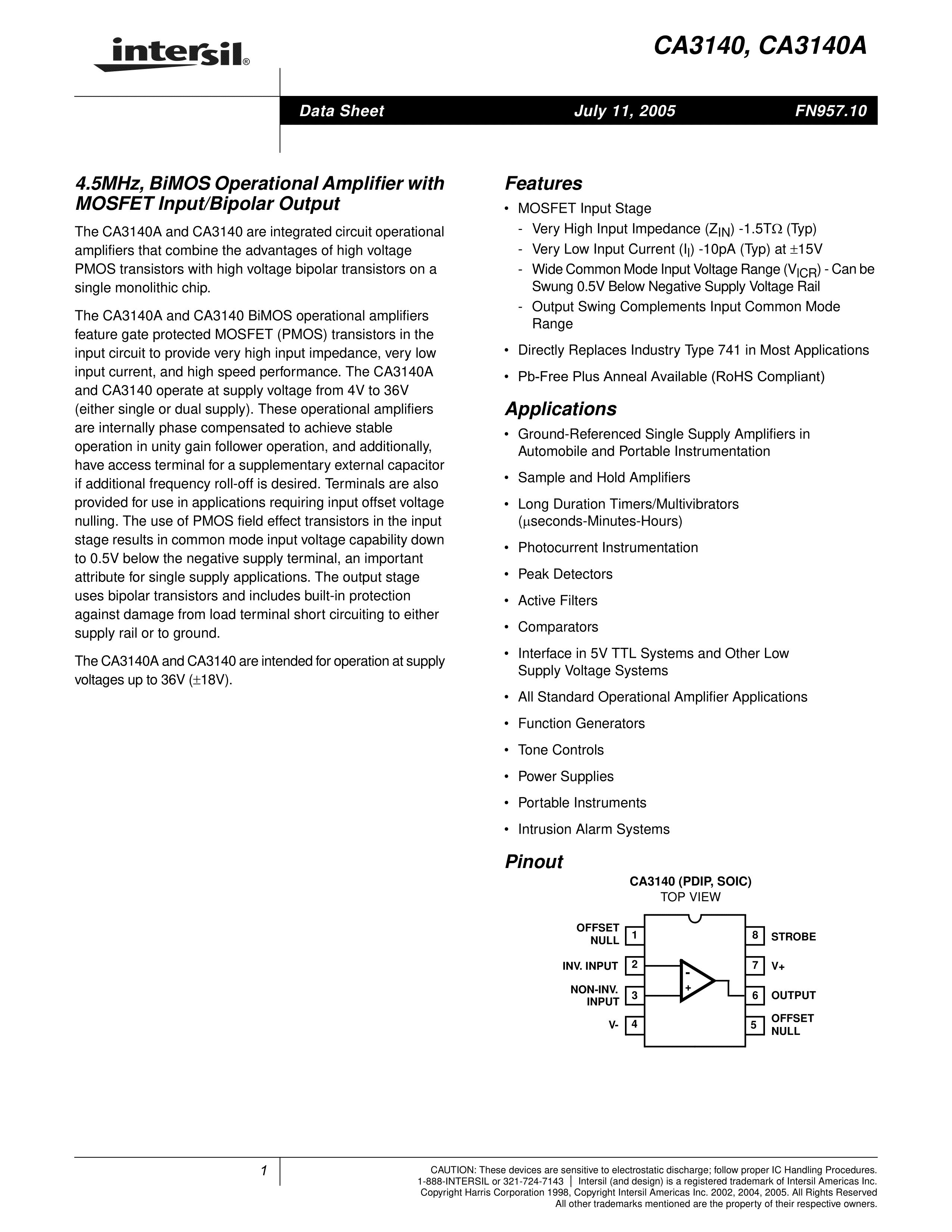 CA3140EZ数据手册DIP-8封装RENESAS(瑞萨)-IDTPDF规格书,中英文下载