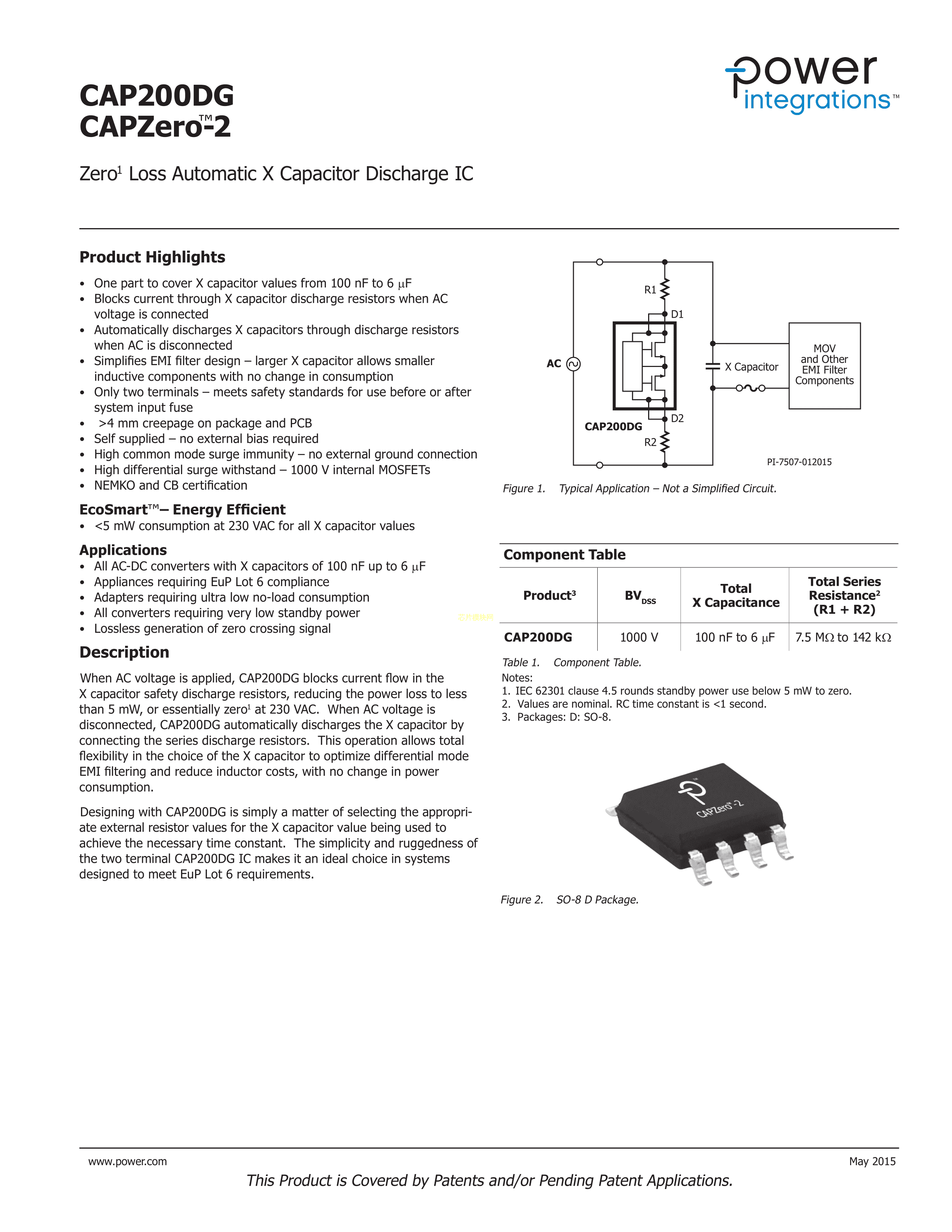 CAP200DG-TL数据手册SO-8封装PowerIntegrations(帕沃英蒂格盛)PDF规