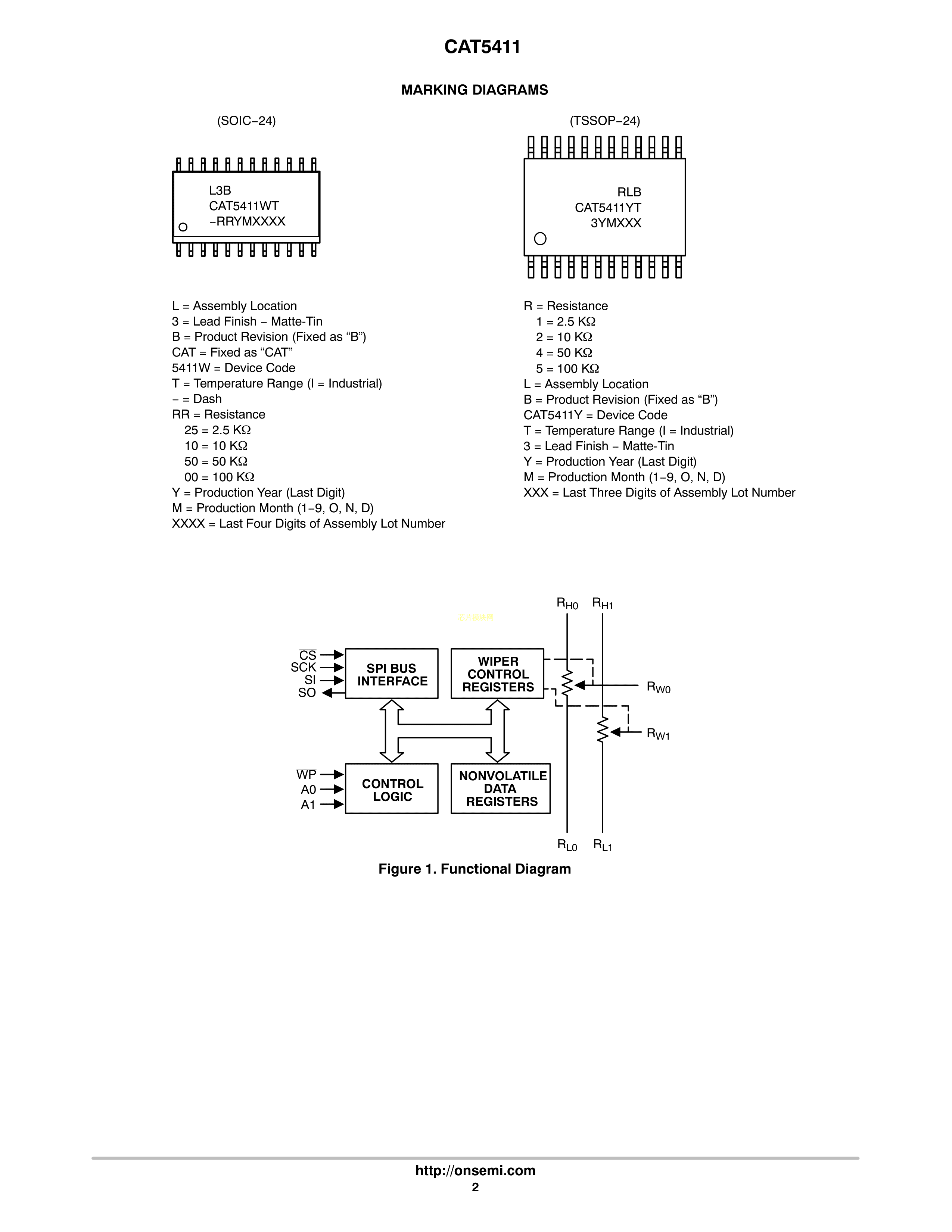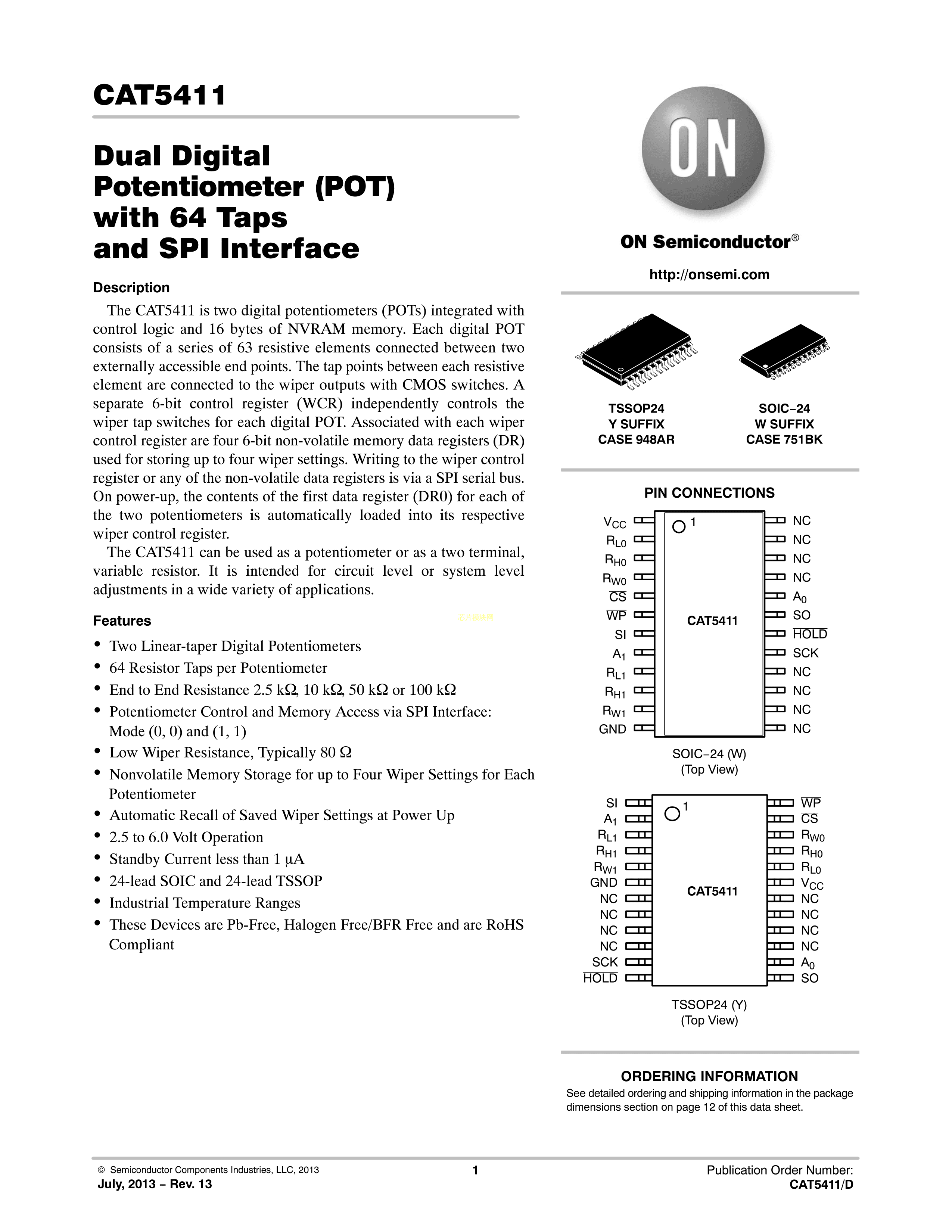 CAT5411YI-25-T2数据手册TSSOP-24封装onsemi(安森美)PDF规格书,中英文