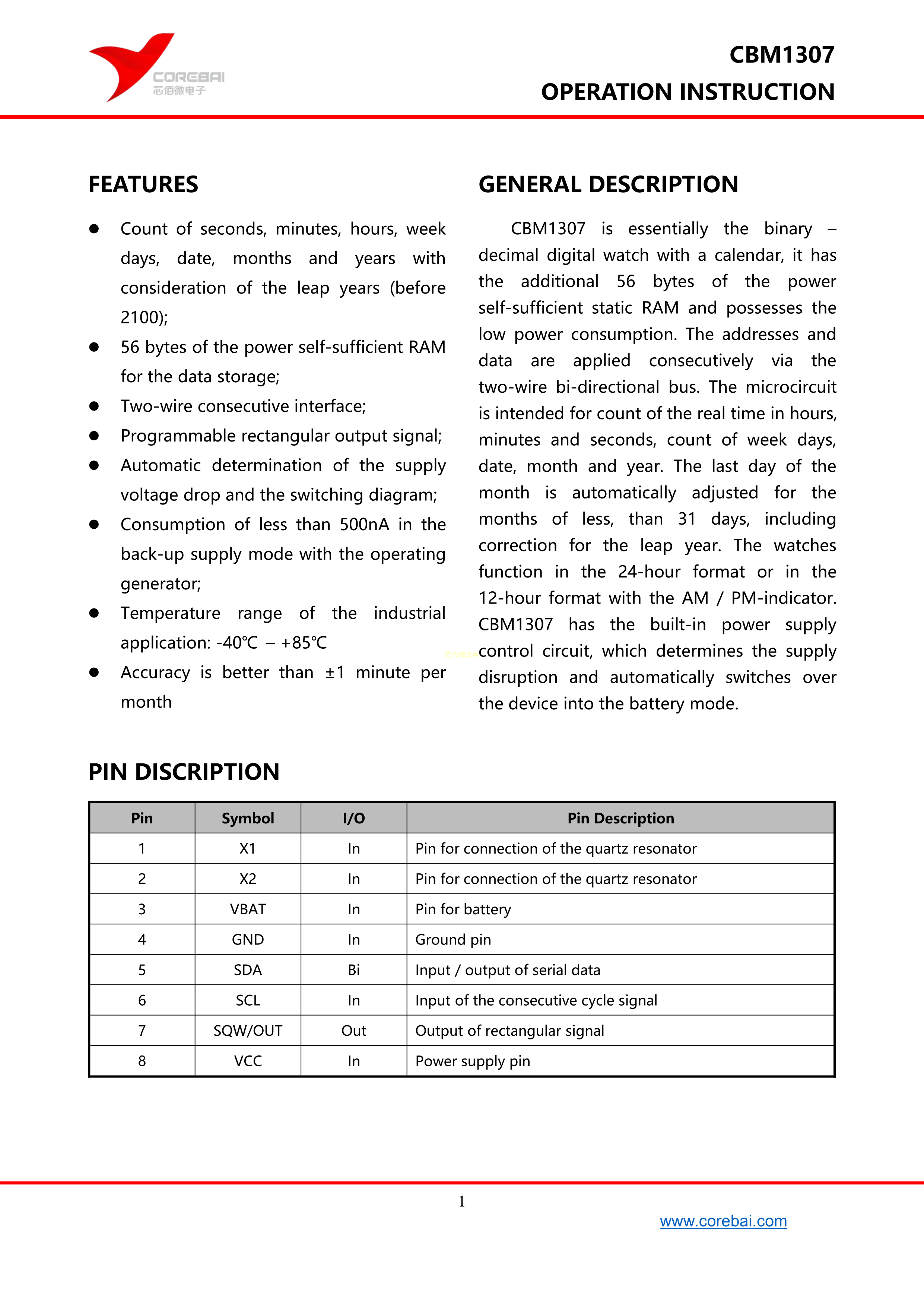 CBM1307AS8数据手册SOP-8封装Corebai(芯佰微)PDF规格书,中英文下载
