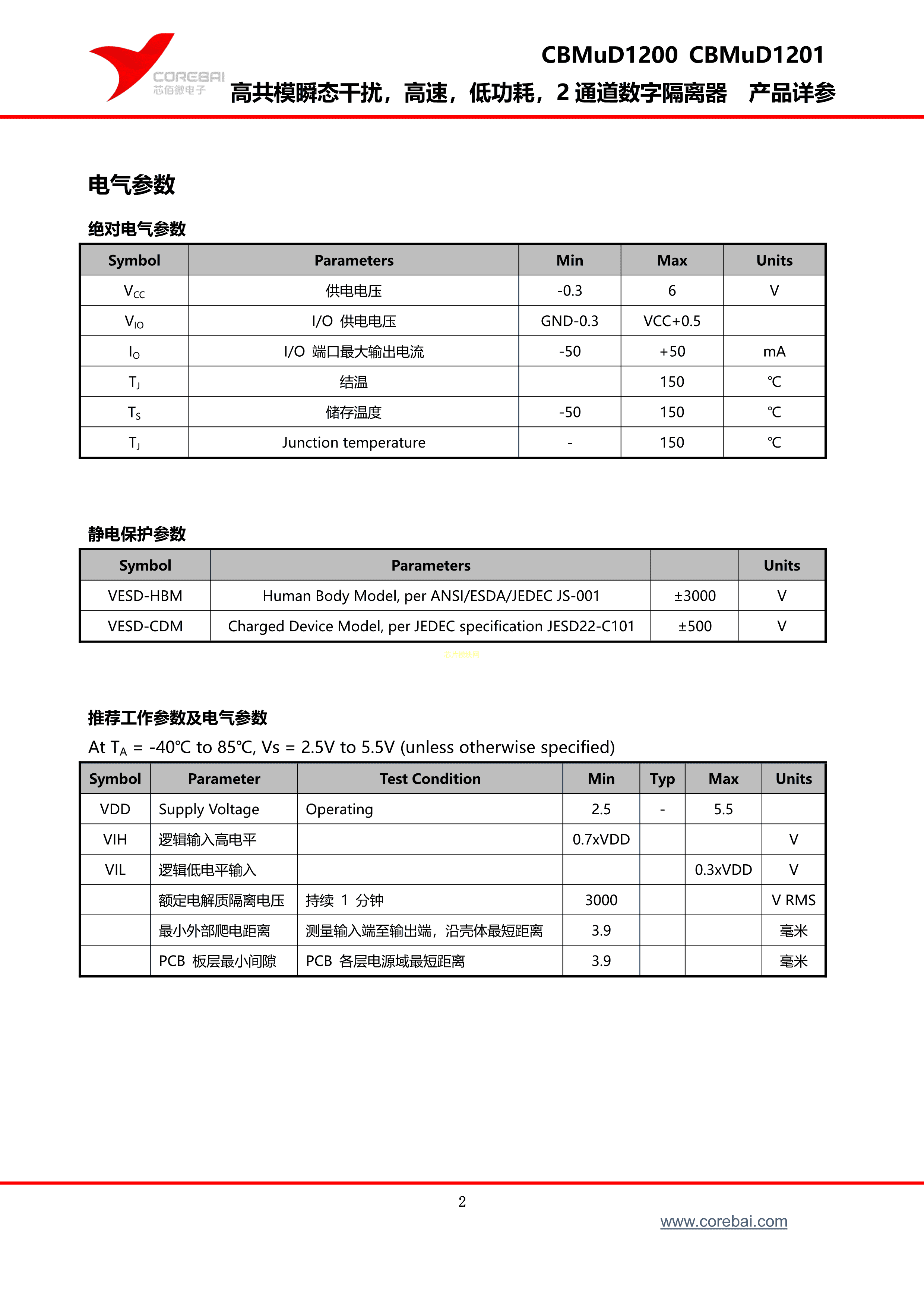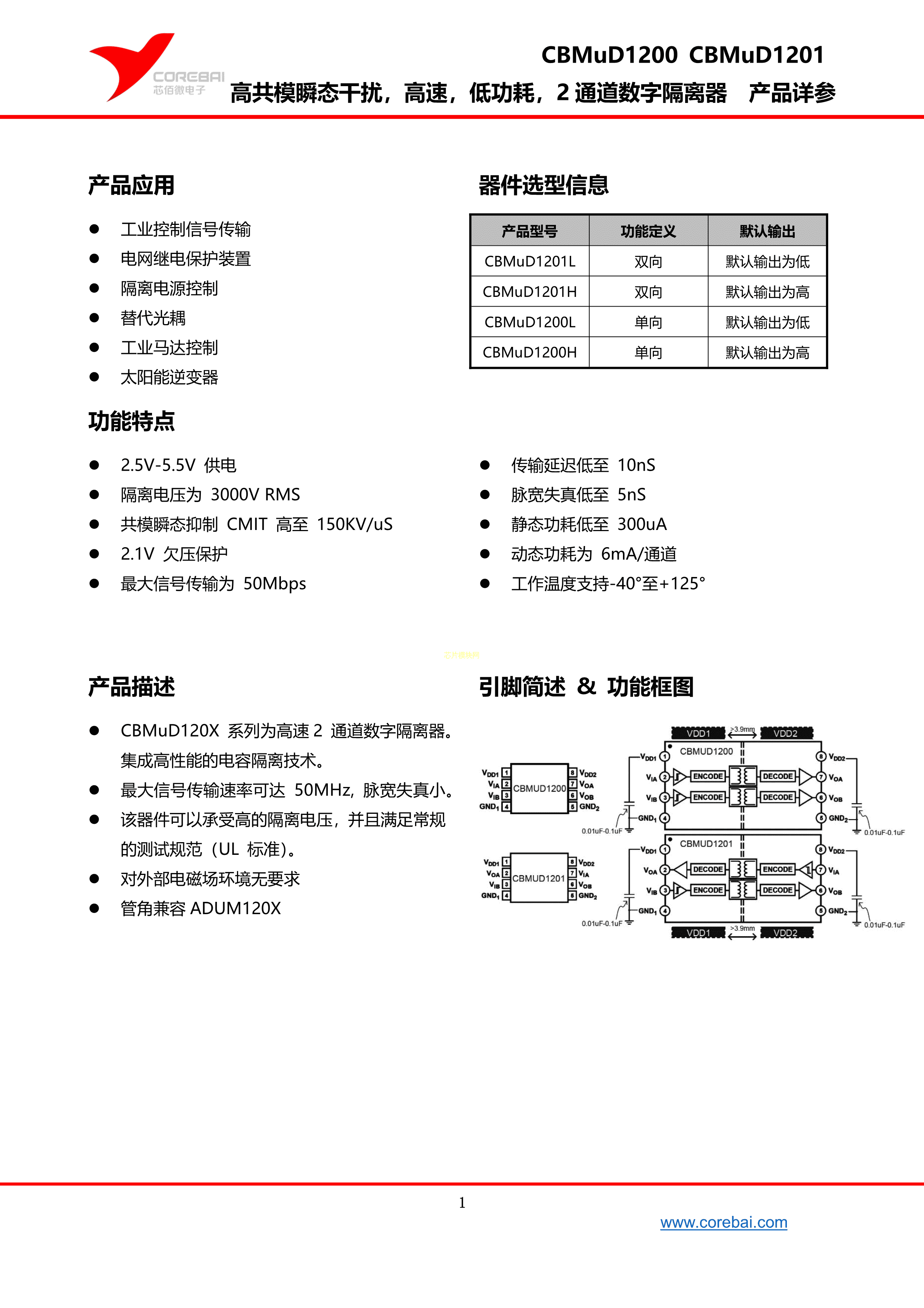 CBMuD1201LAS8数据手册SOIC-8封装Corebai(芯佰微)PDF规格书,中英文下载