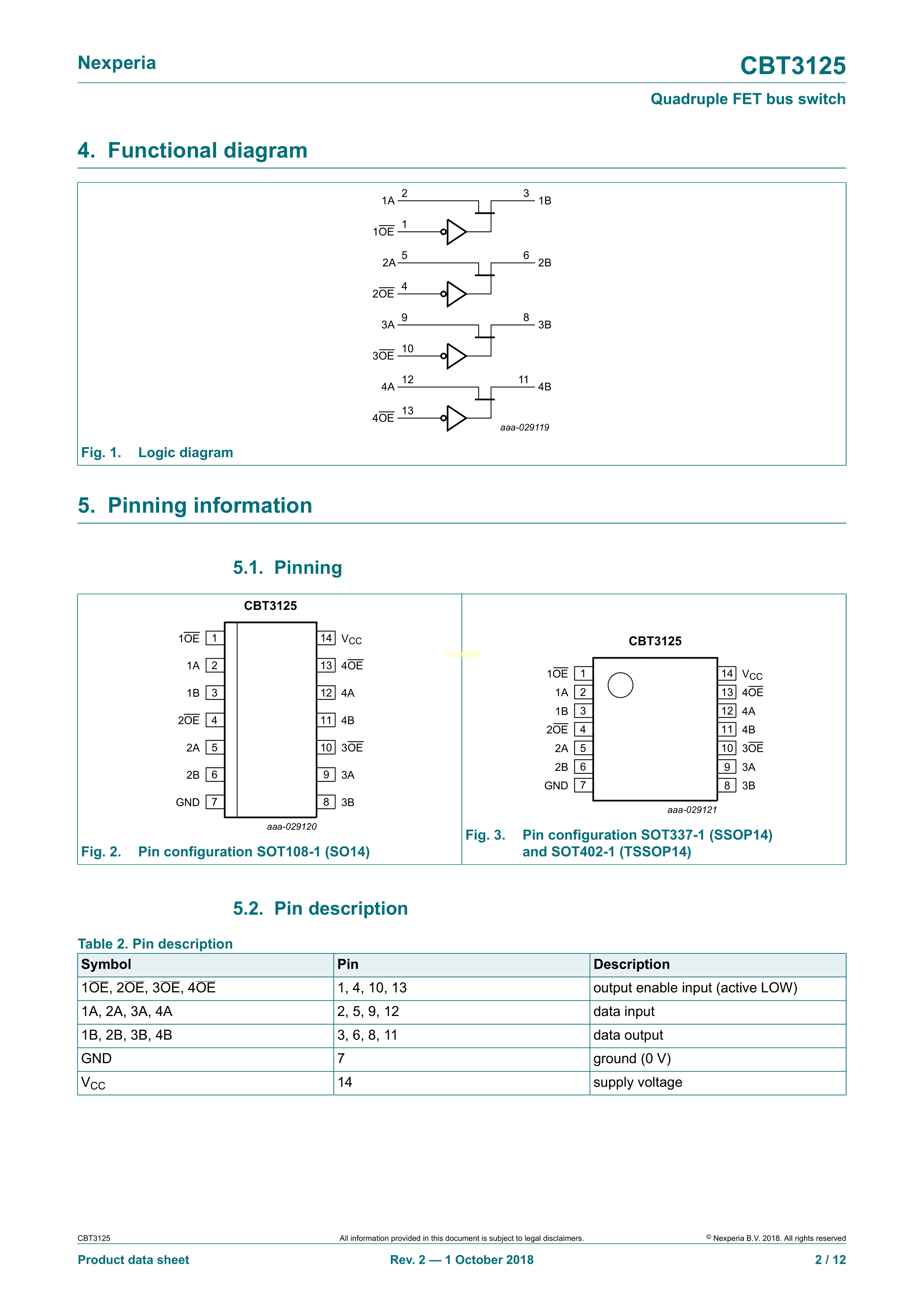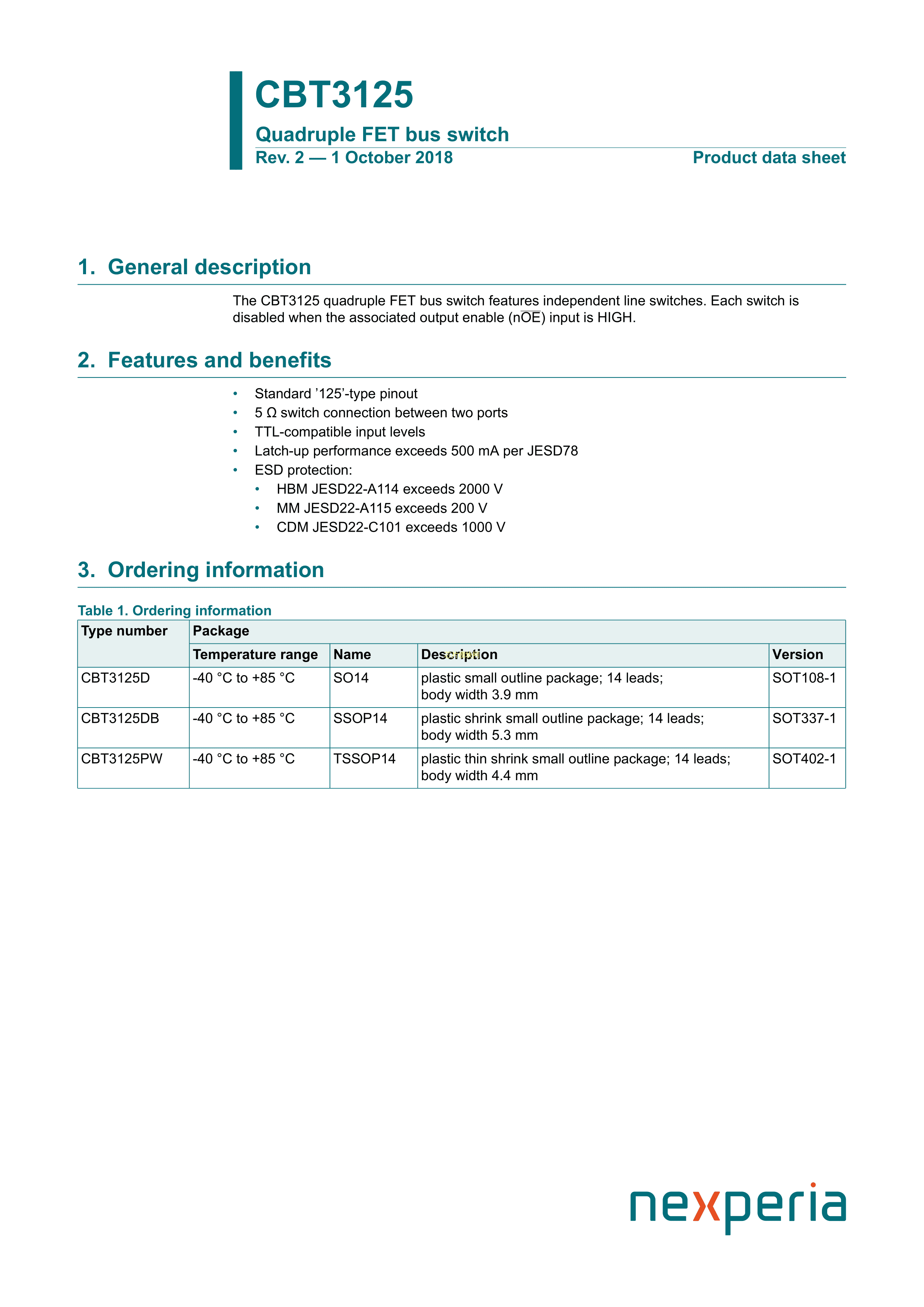CBT3125PW112数据手册TSSOP-14封装Nexperia(安世)PDF规格书,中英文下载