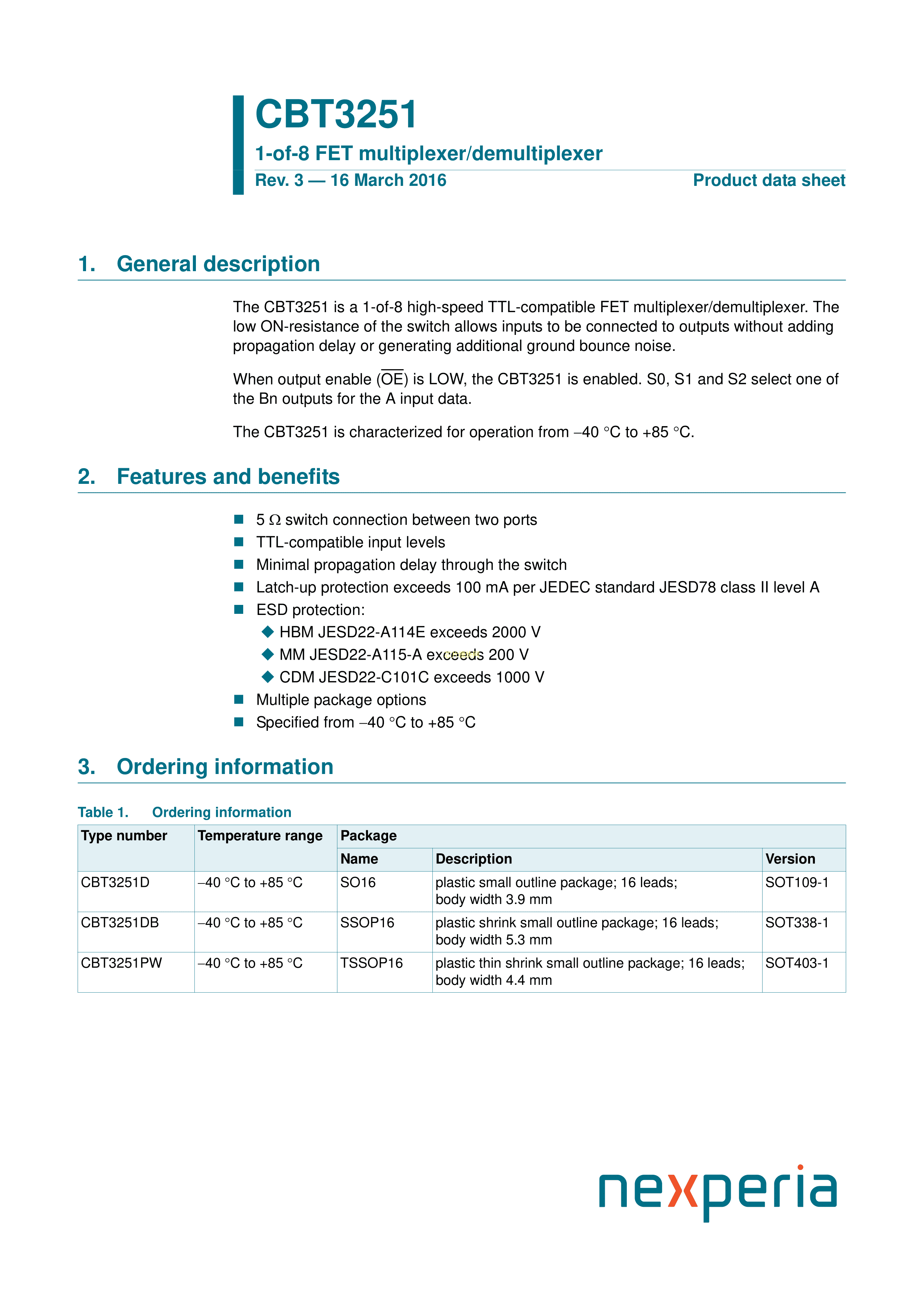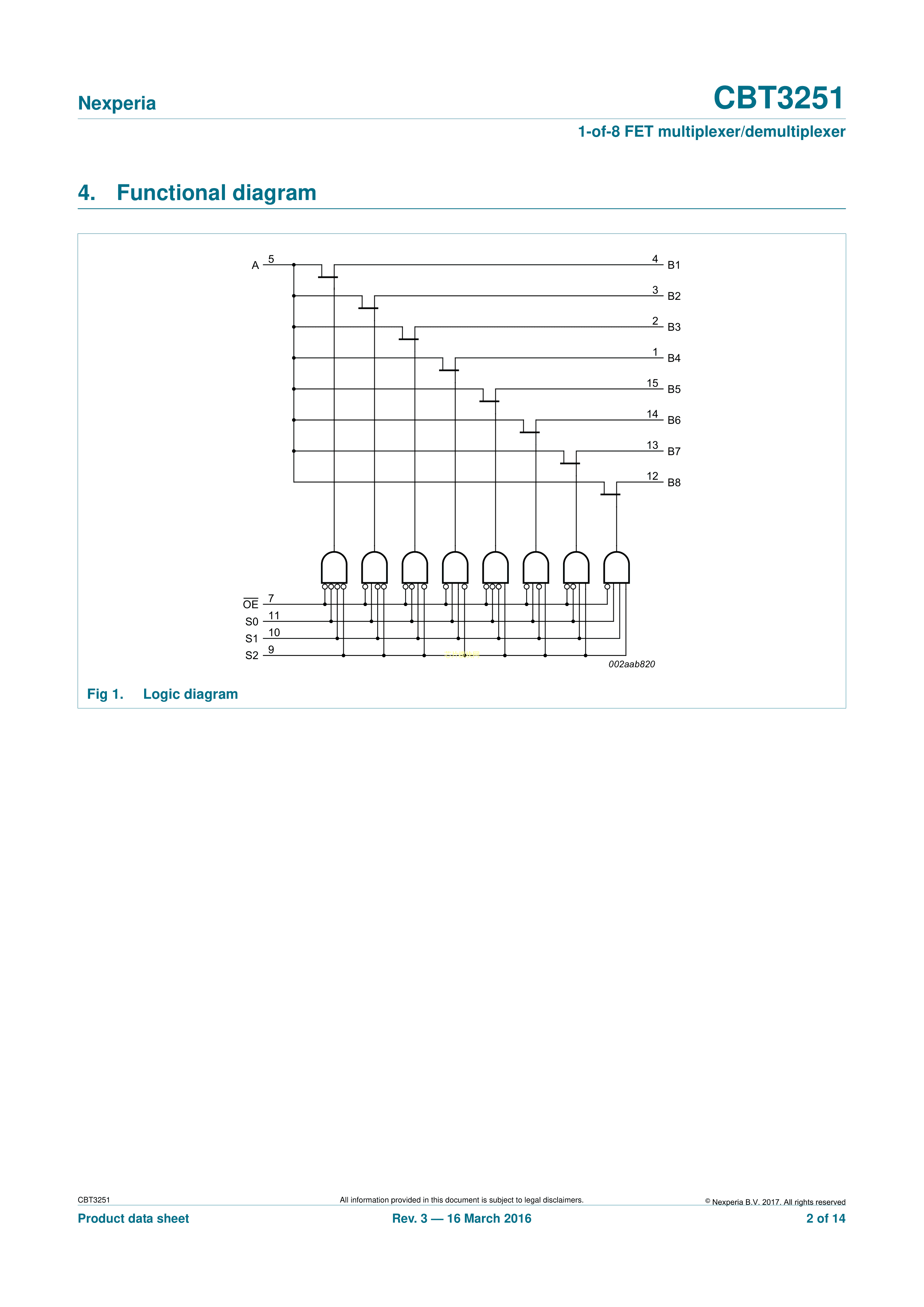 CBT3251PW118数据手册TSSOP-16封装Nexperia(安世)PDF规格书,中英文下载