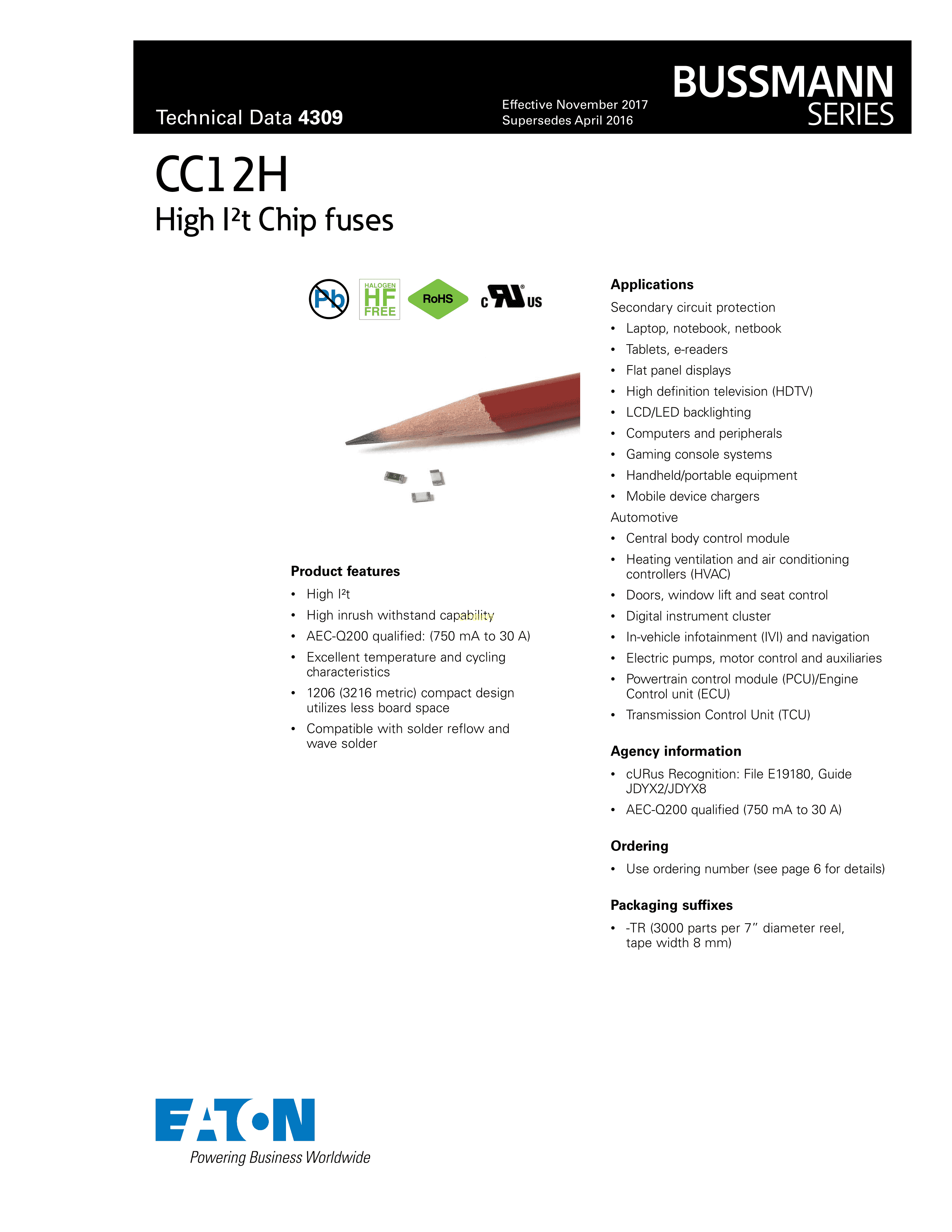 CC12H750MA-TR数据手册1206封装BUSSMANNPDF规格书,中英文下载