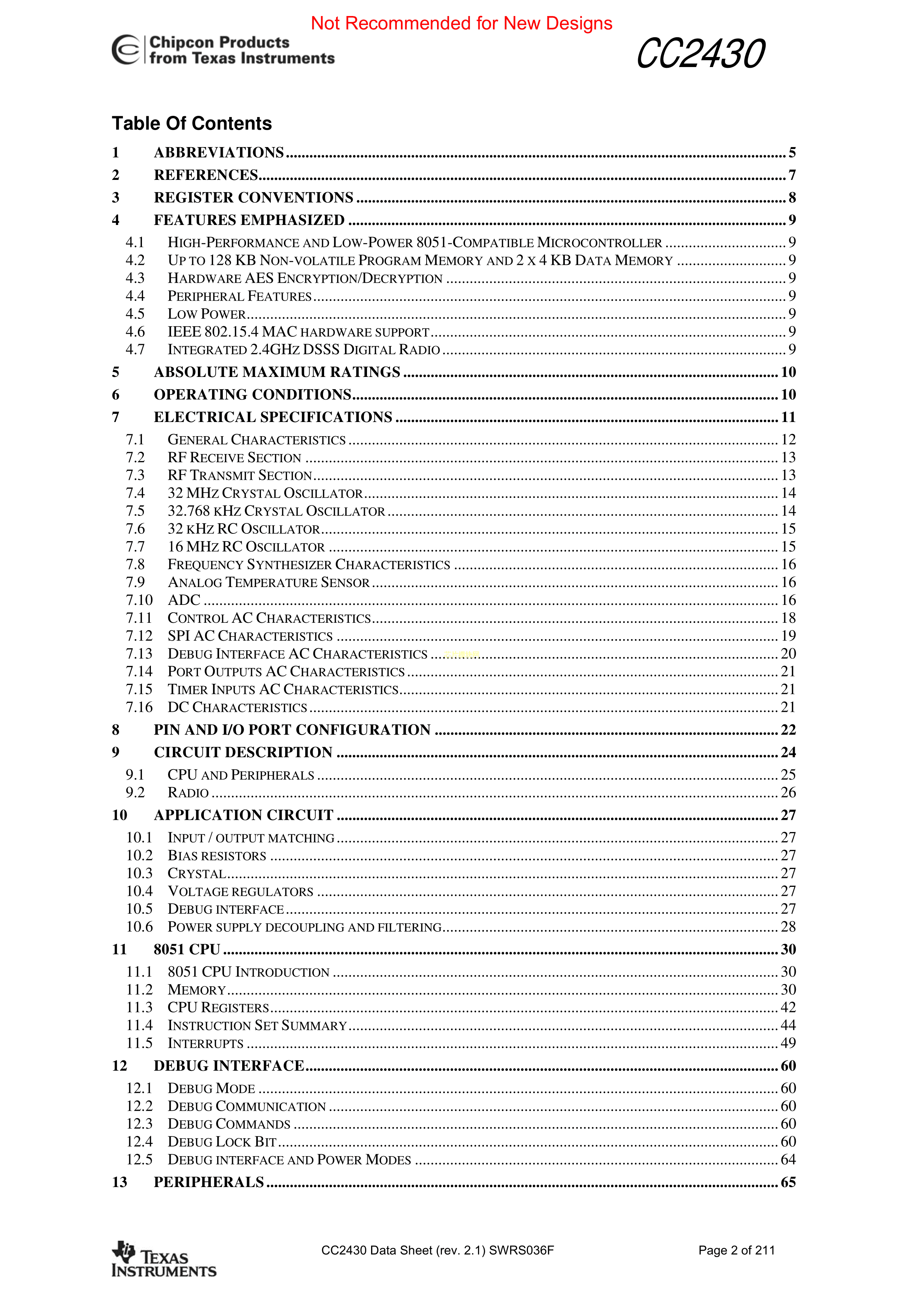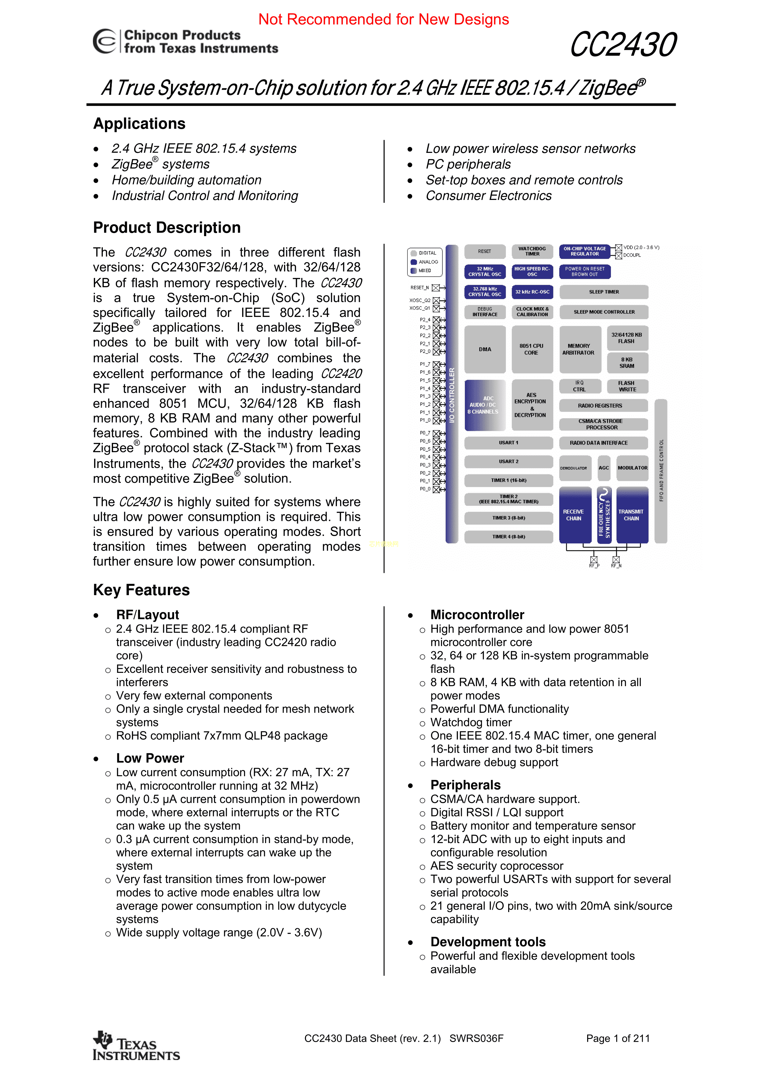 CC2430ZF128RTCR数据手册VQFN-48封装TI(德州仪器)PDF规格书,中英文下载