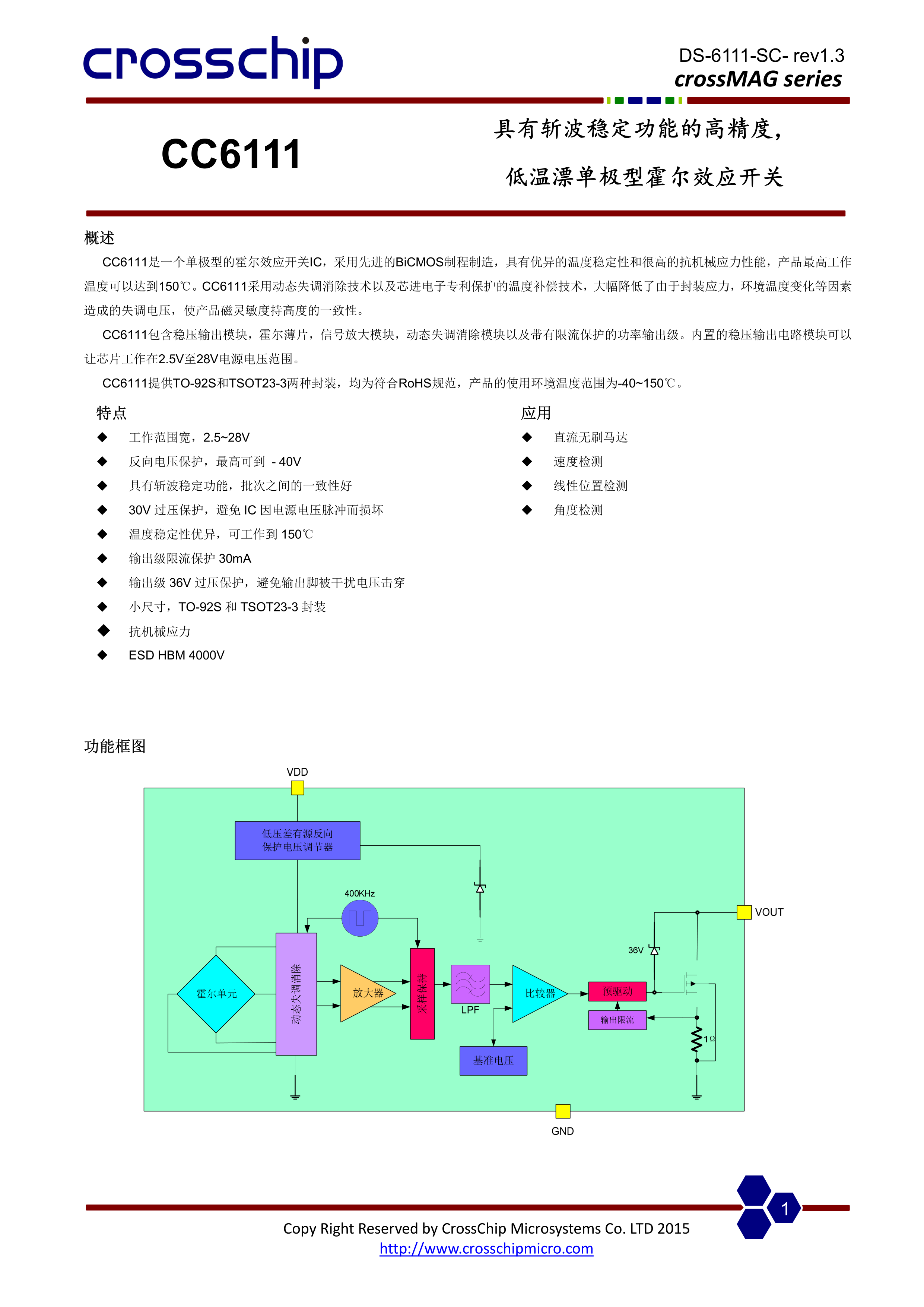 CC6111ST数据手册TSOT-23-3封装CrossChip(成都芯进)PDF规格书,中英文下载