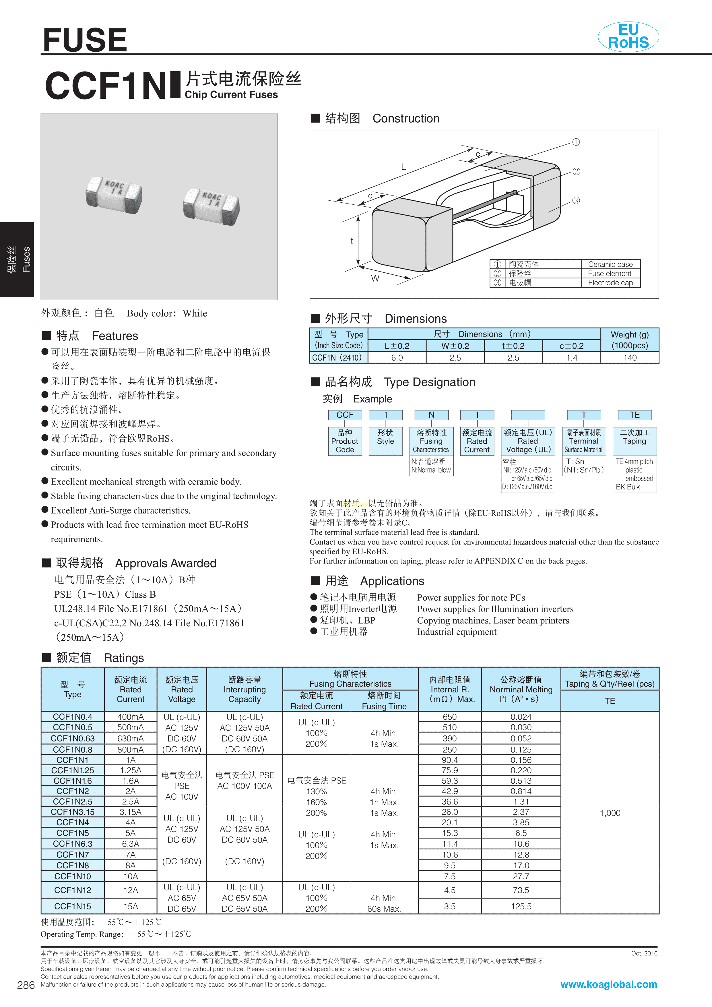 CCF1N2TTE数据手册-封装KOAPDF规格书,中英文下载