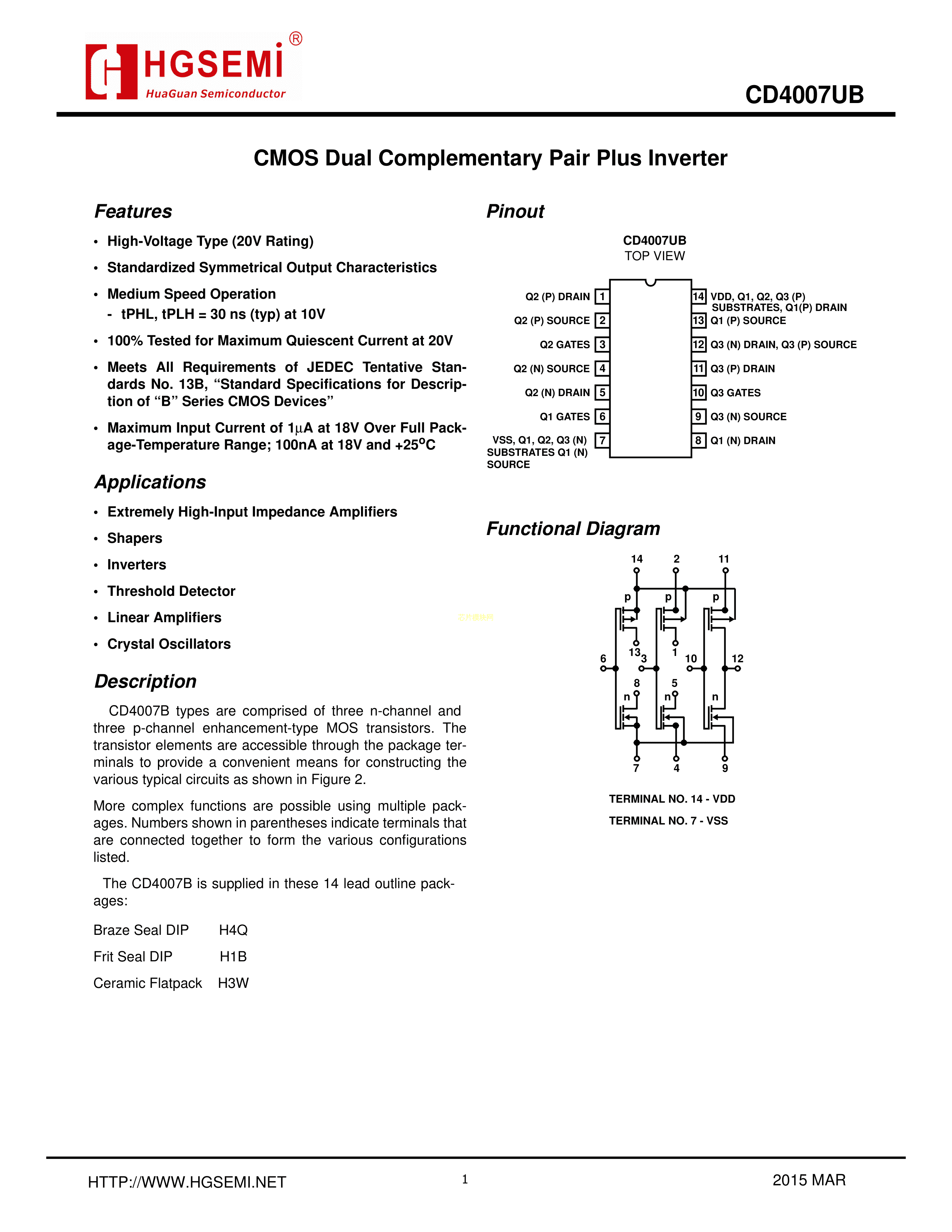 CD4007UBM-TR数据手册SOP-14封装HGSEMI(华冠)PDF规格书,中英文下载
