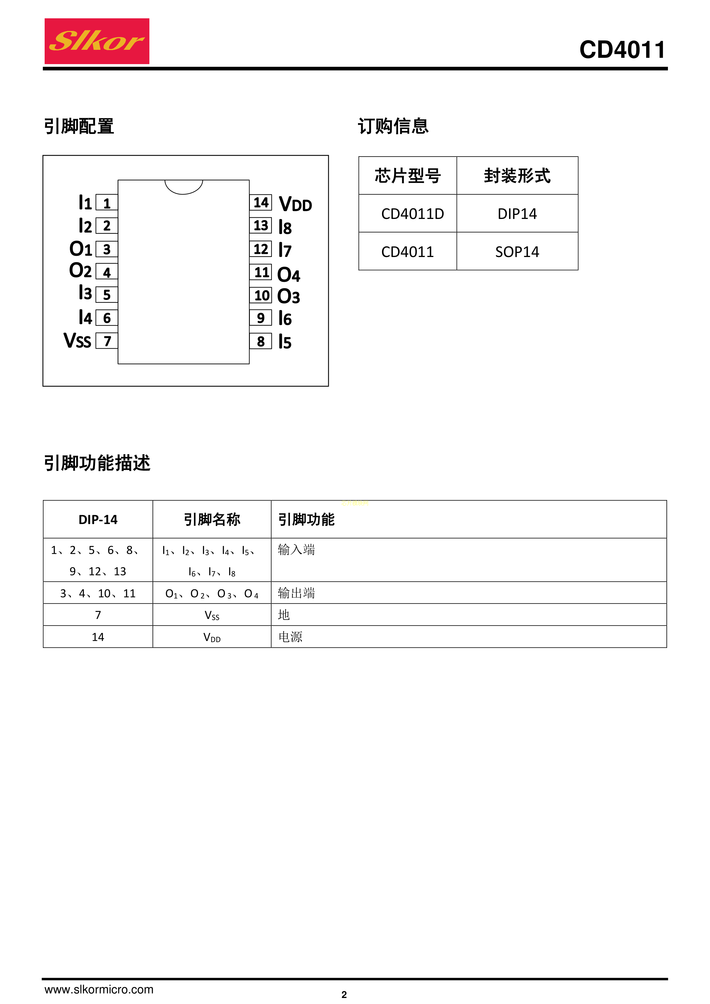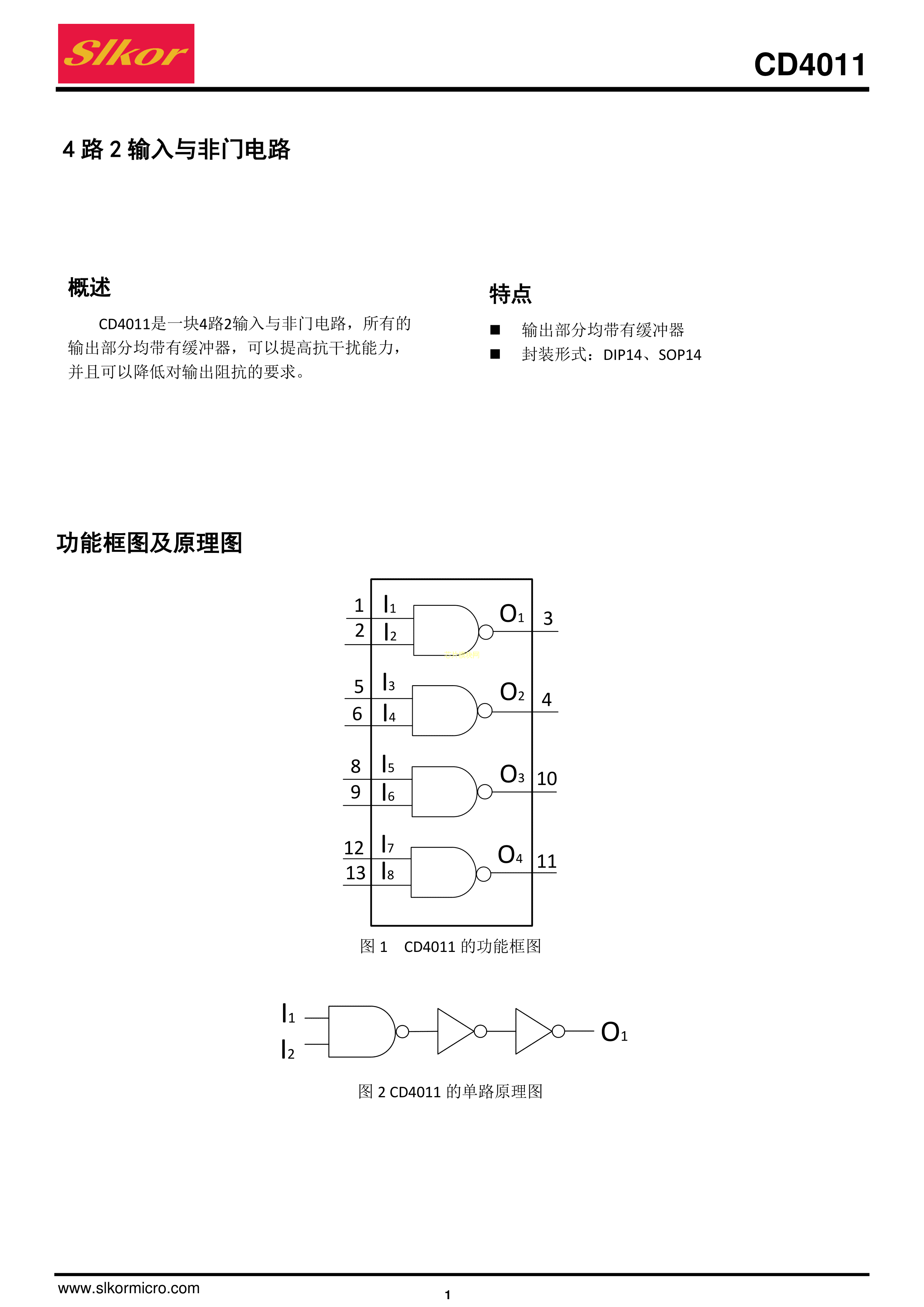 CD4011数据手册SOP-14封装Slkor(萨科微)PDF规格书,中英文下载