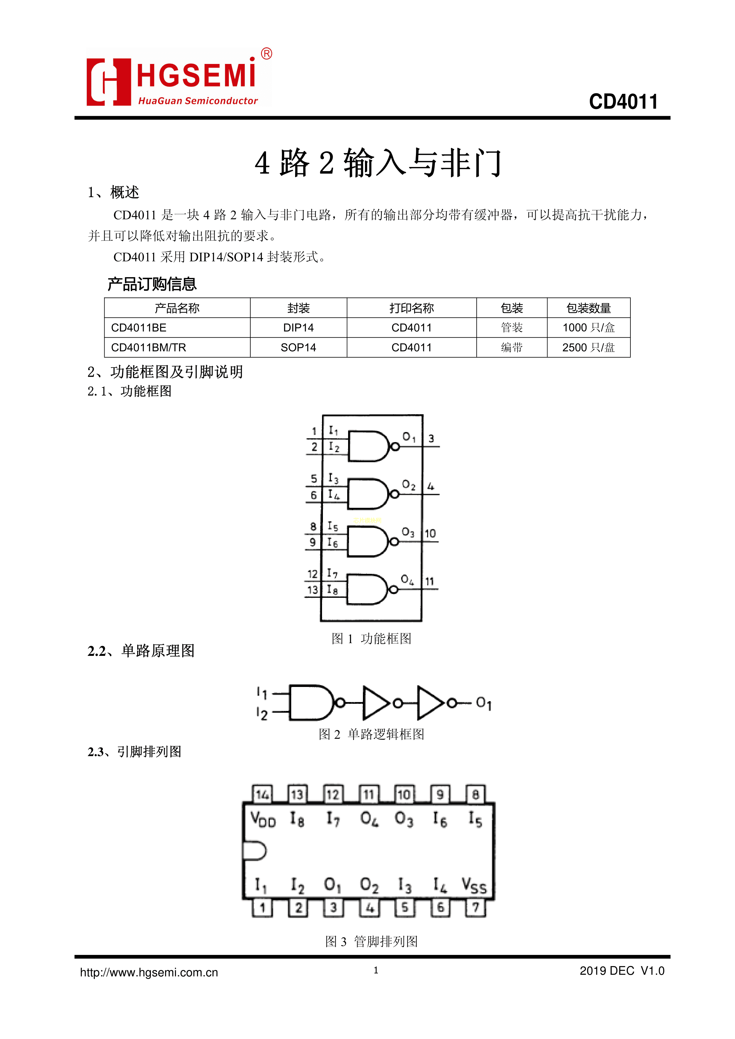 CD4011BE数据手册DIP-14封装HGSEMI(华冠)PDF规格书,中英文下载