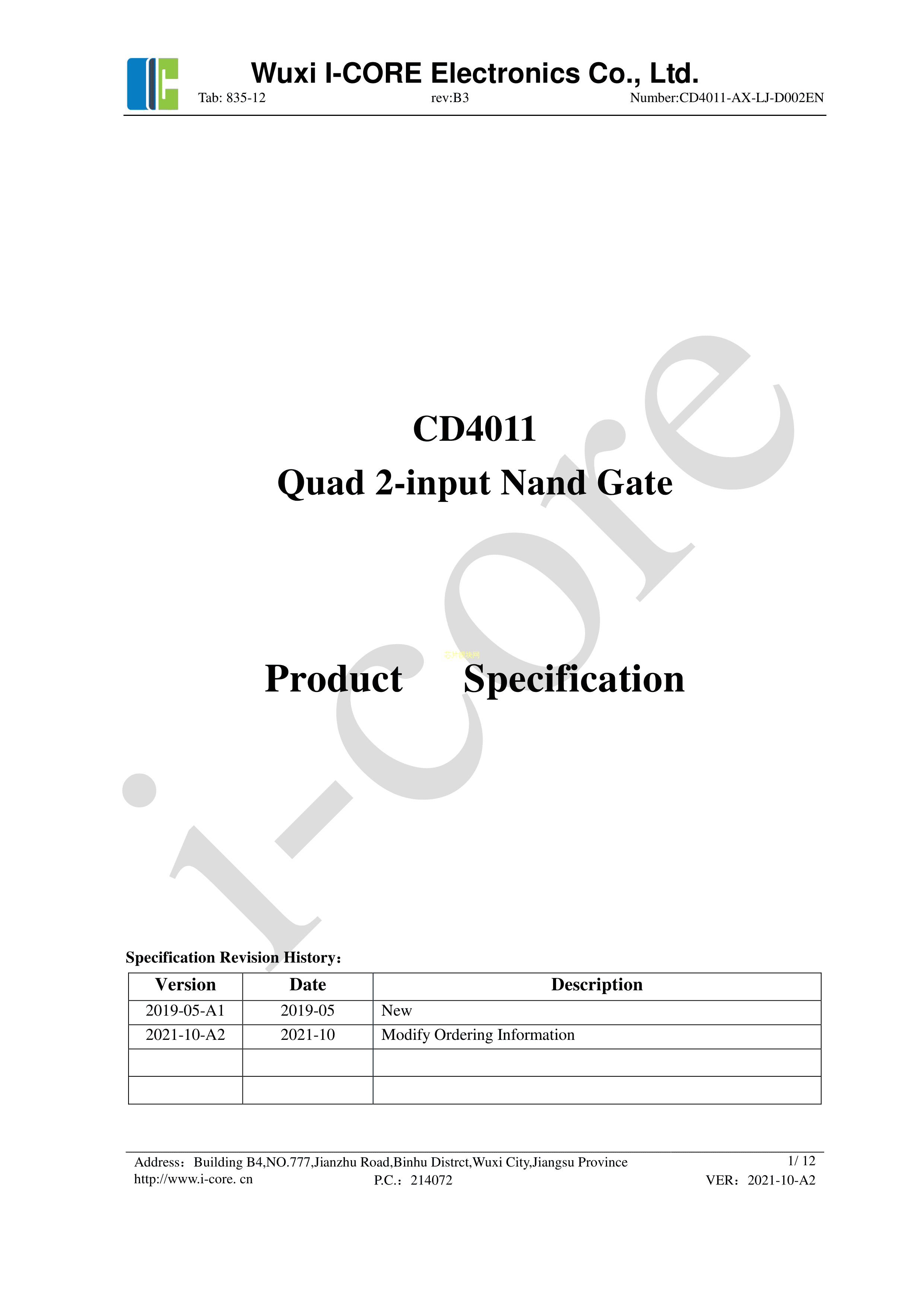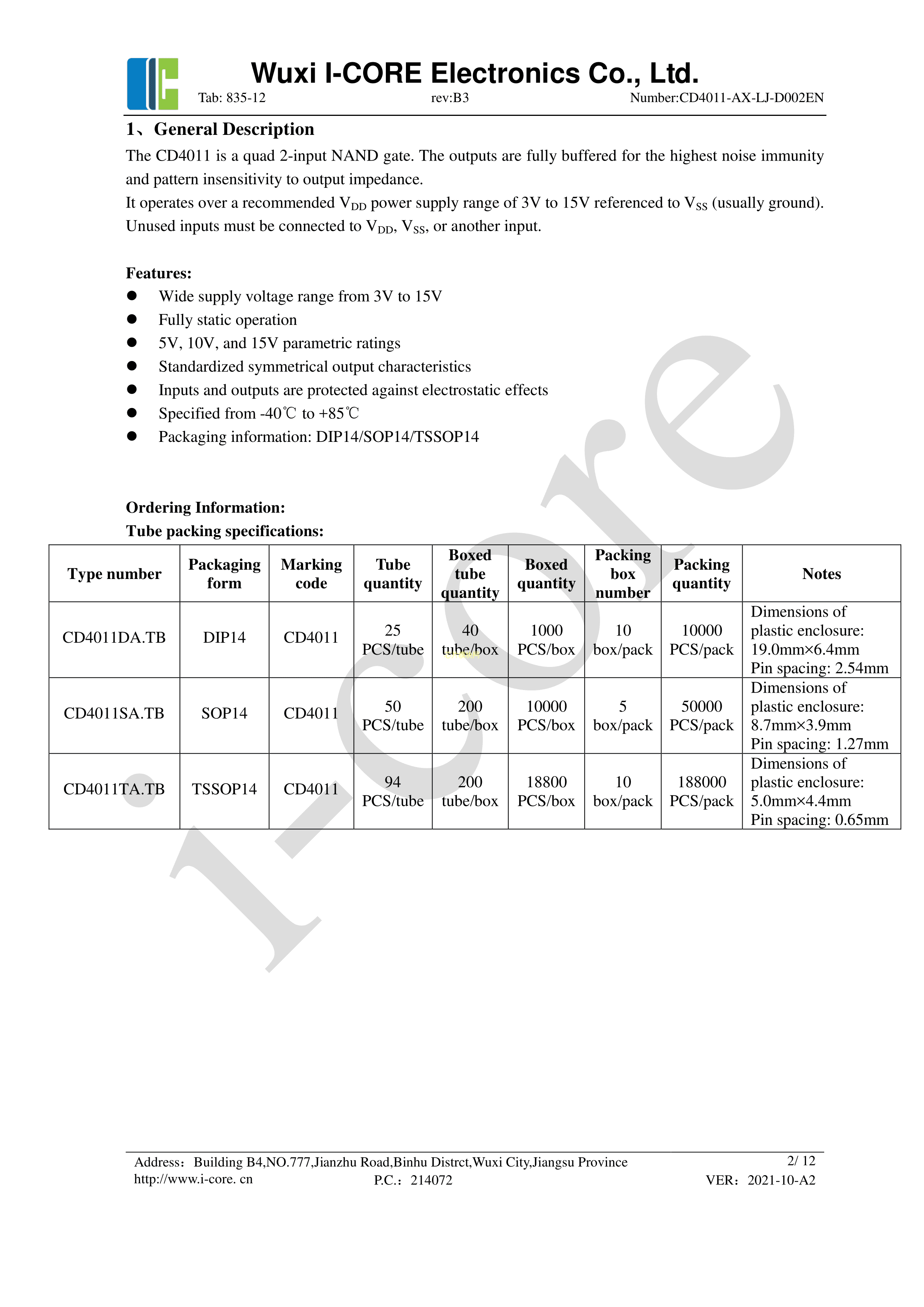 CD4011DA.TB数据手册DIP-14封装I-CORE(中微爱芯)PDF规格书,中英文下载