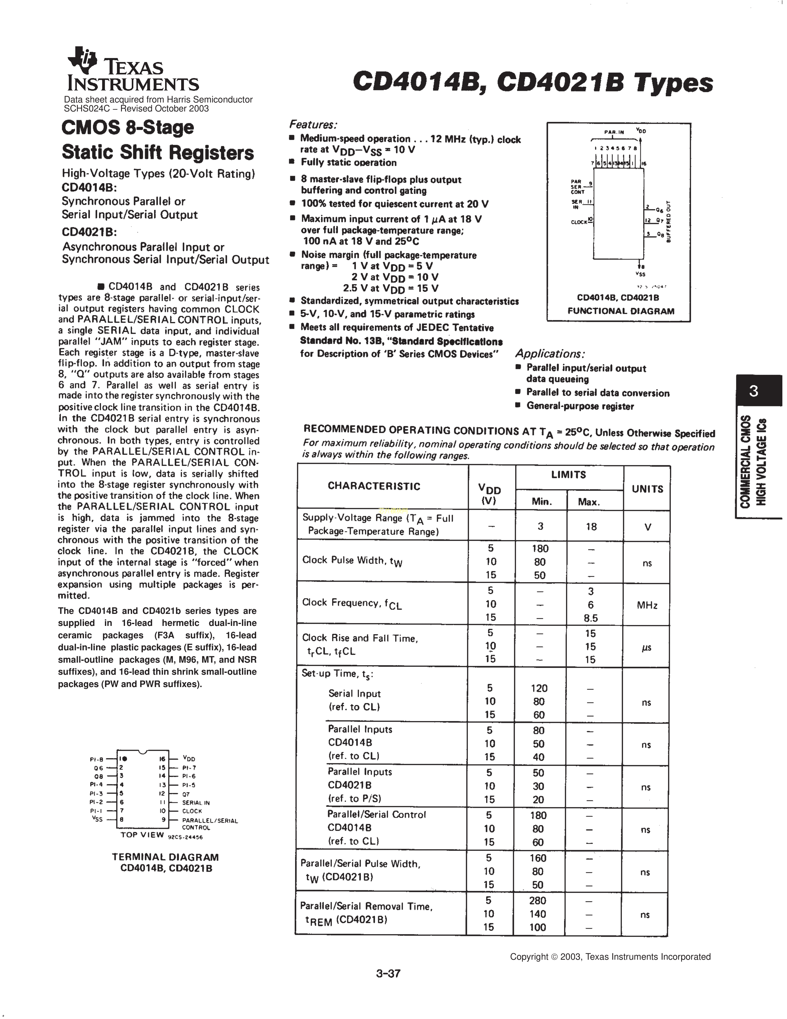 CD4021BM数据手册SOIC-16封装TI(德州仪器)PDF规格书,中英文下载