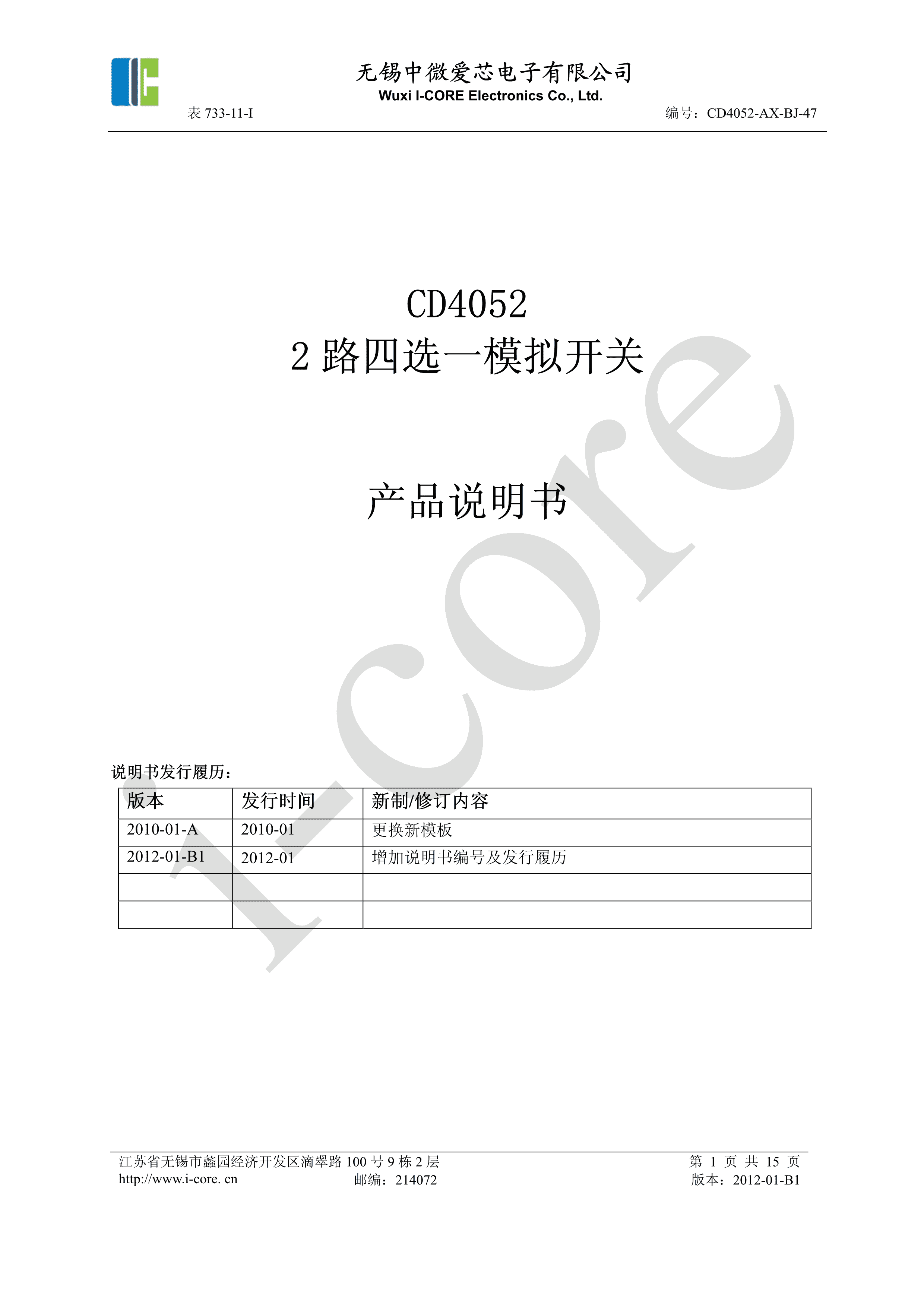 CD4052数据手册DIP-16封装I-CORE(中微爱芯)PDF规格书,中英文下载