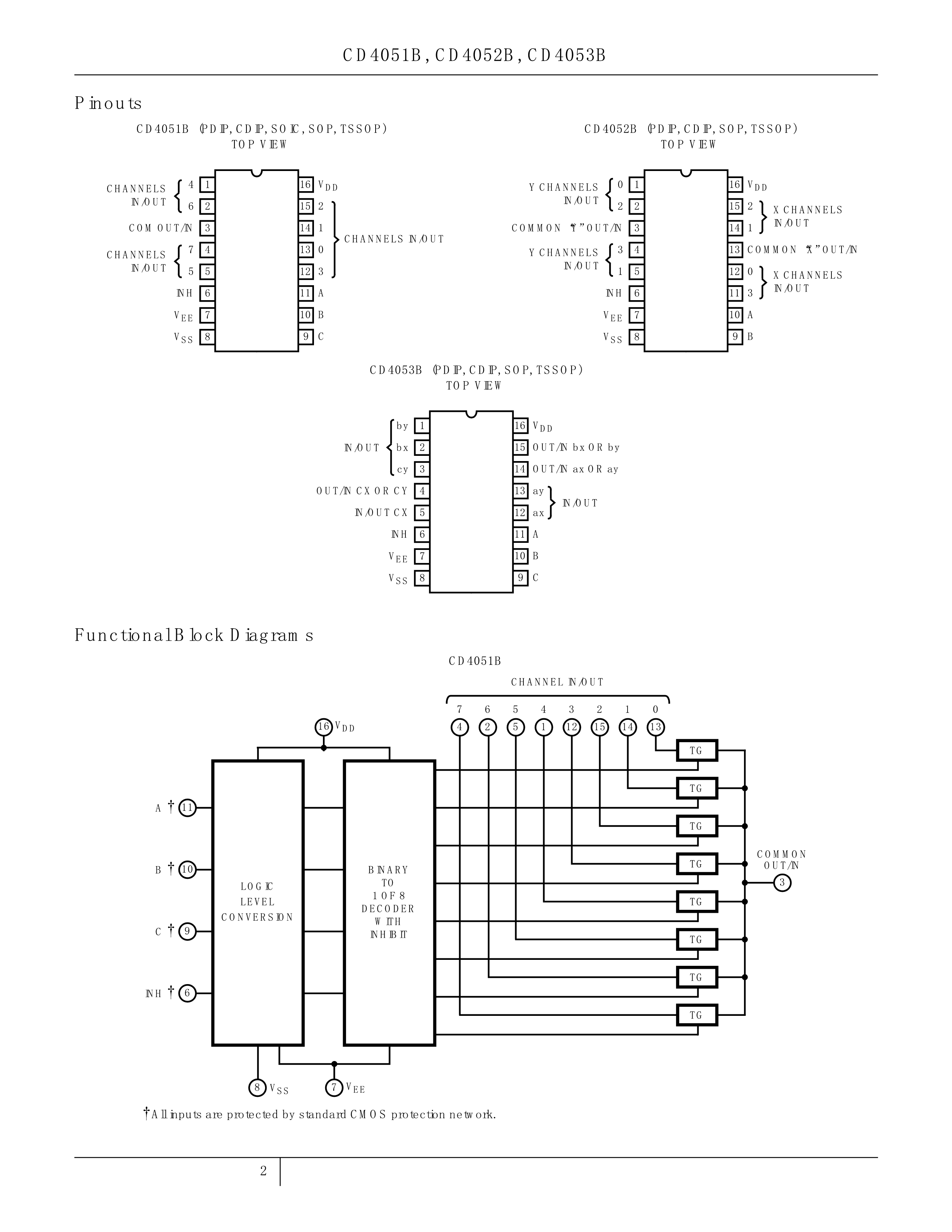 CD4052BE数据手册DIP-16封装TI(德州仪器)PDF规格书,中英文下载