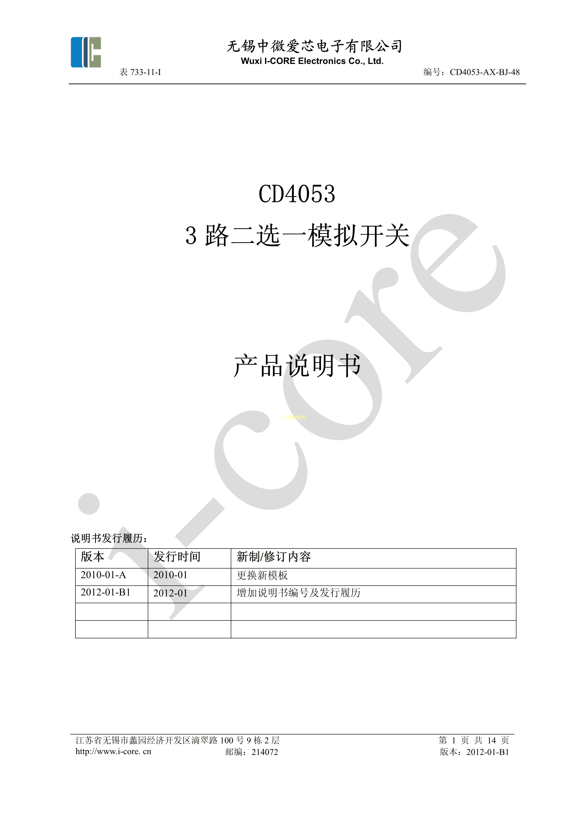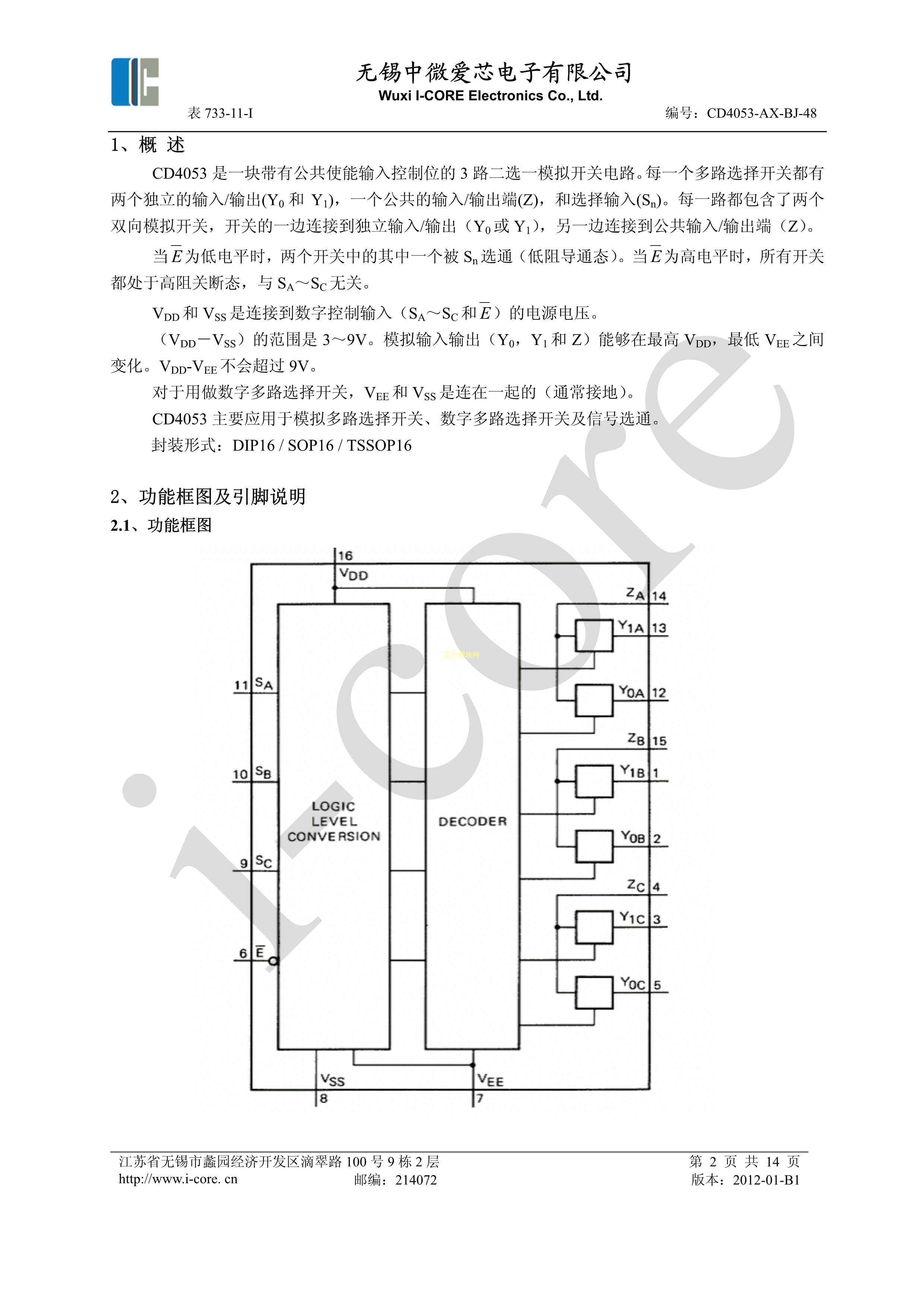 CD4053数据手册DIP-16封装I-CORE(中微爱芯)PDF规格书,中英文下载