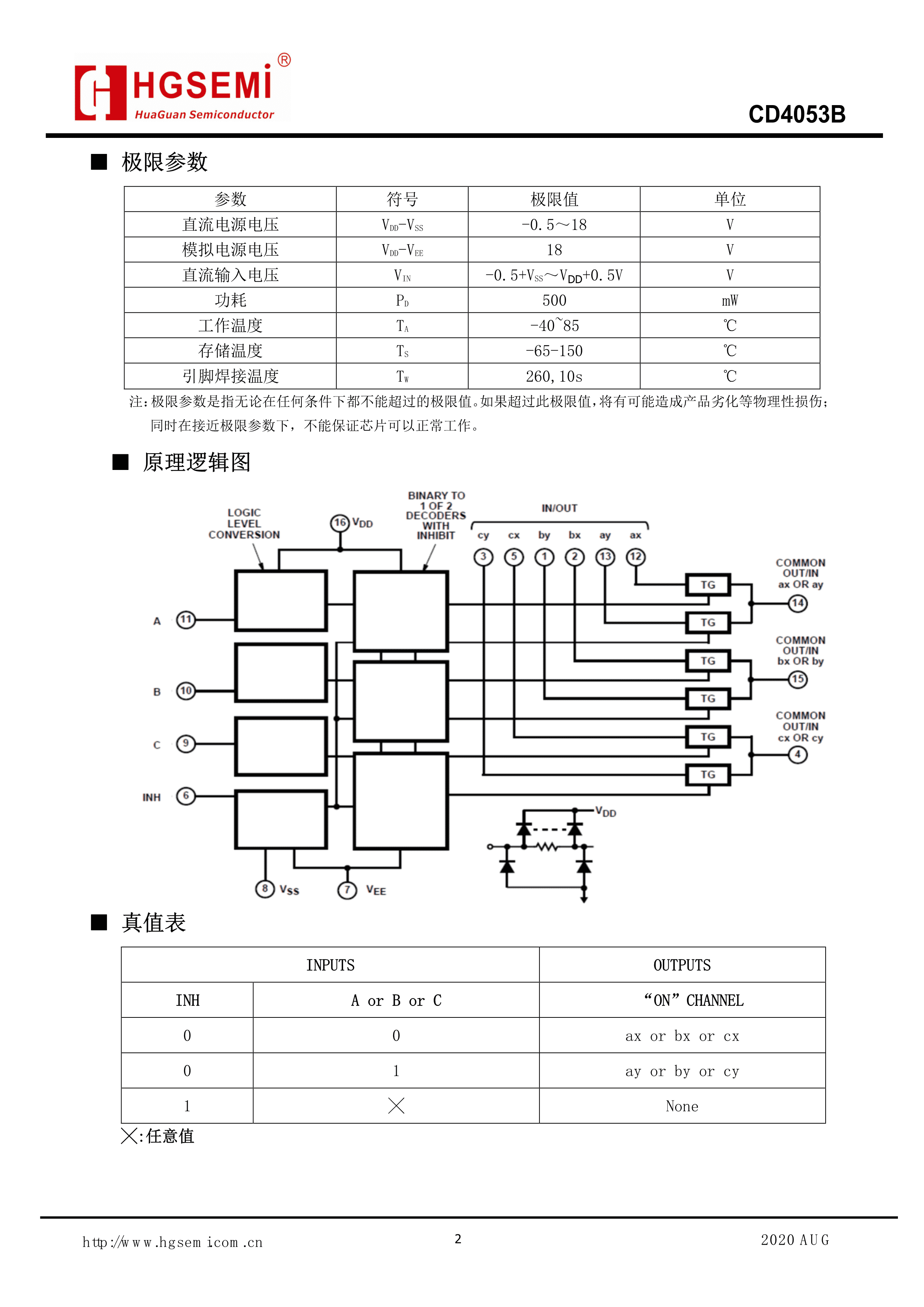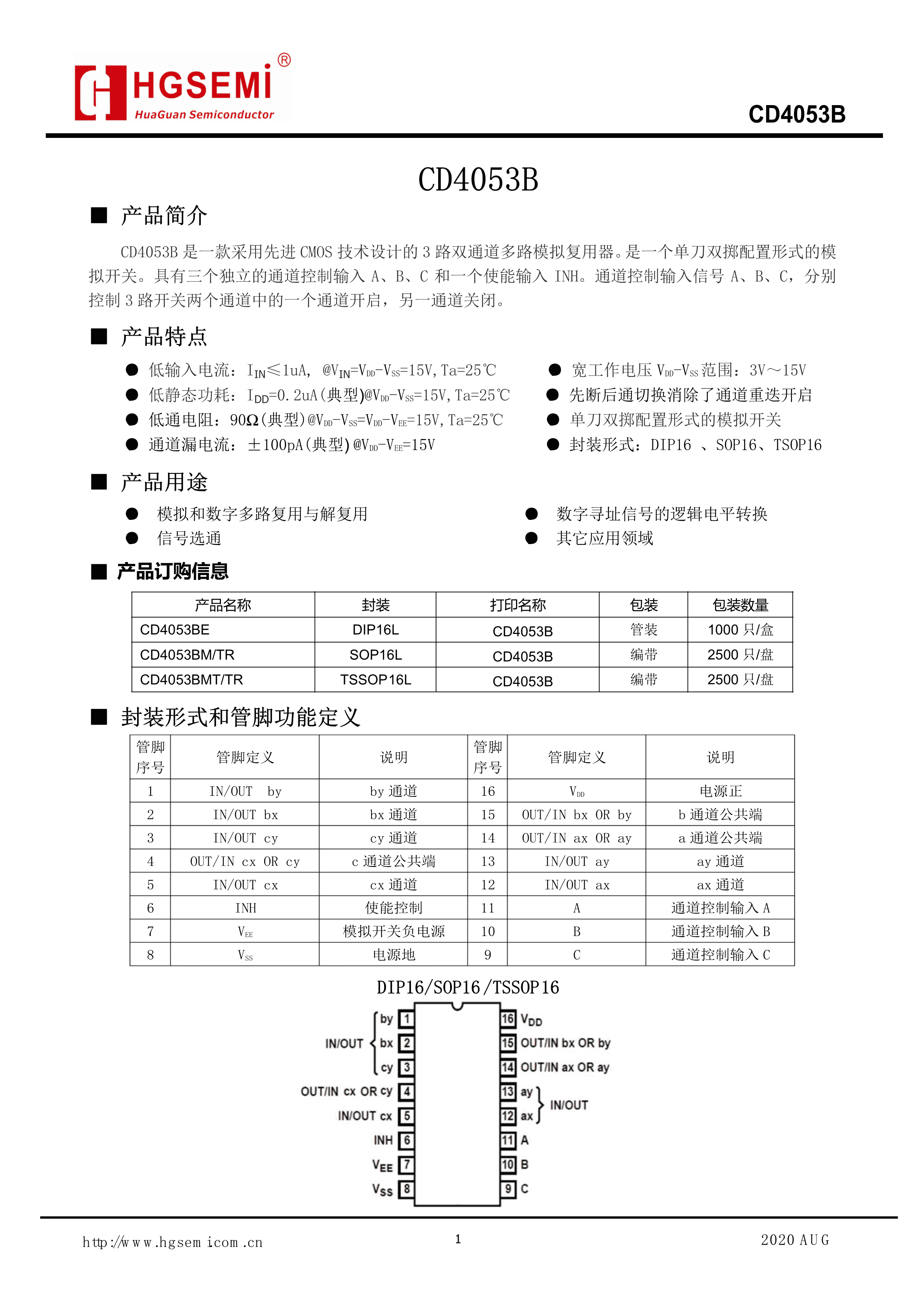 CD4053BMT-TR数据手册TSSOP-16封装HGSEMI(华冠)PDF规格书,中英文下载