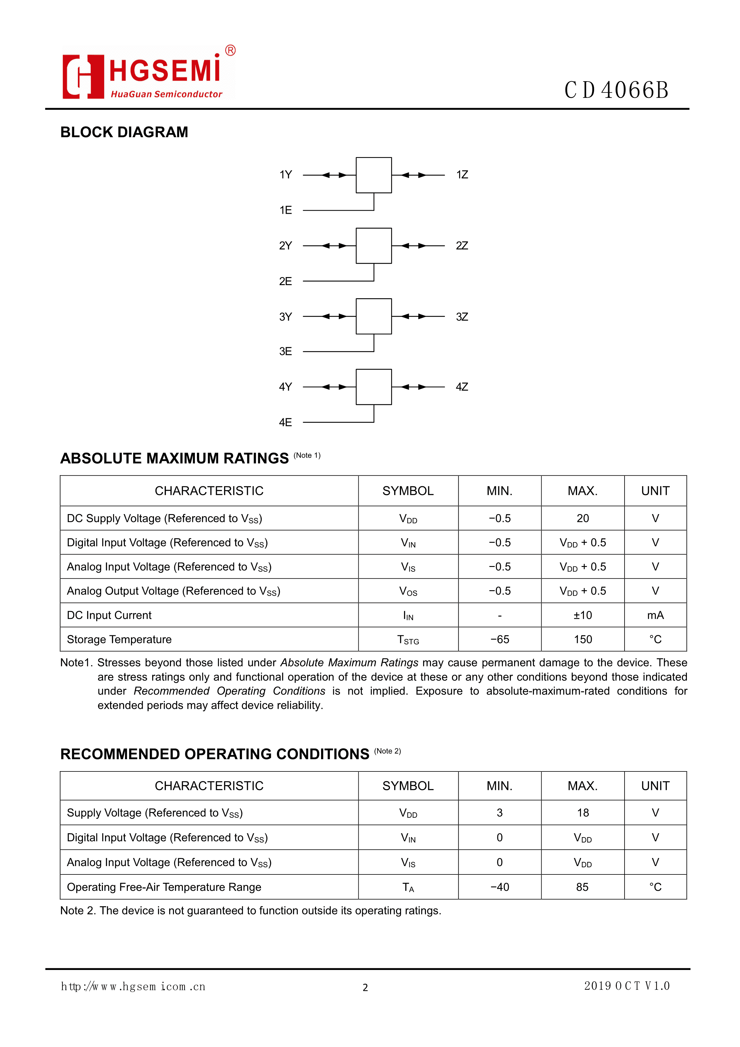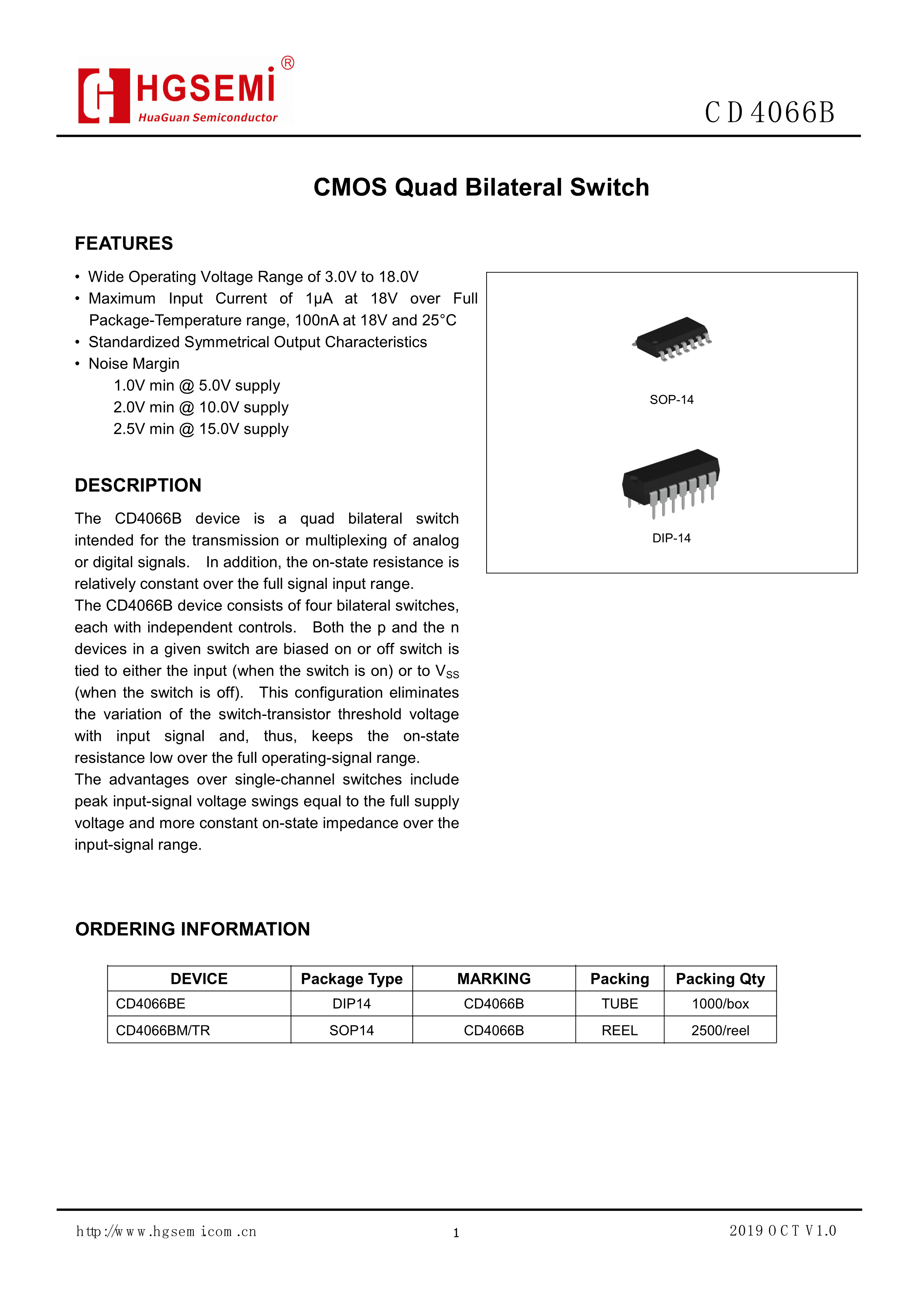 CD4066BE数据手册DIP-14封装HGSEMI(华冠)PDF规格书,中英文下载