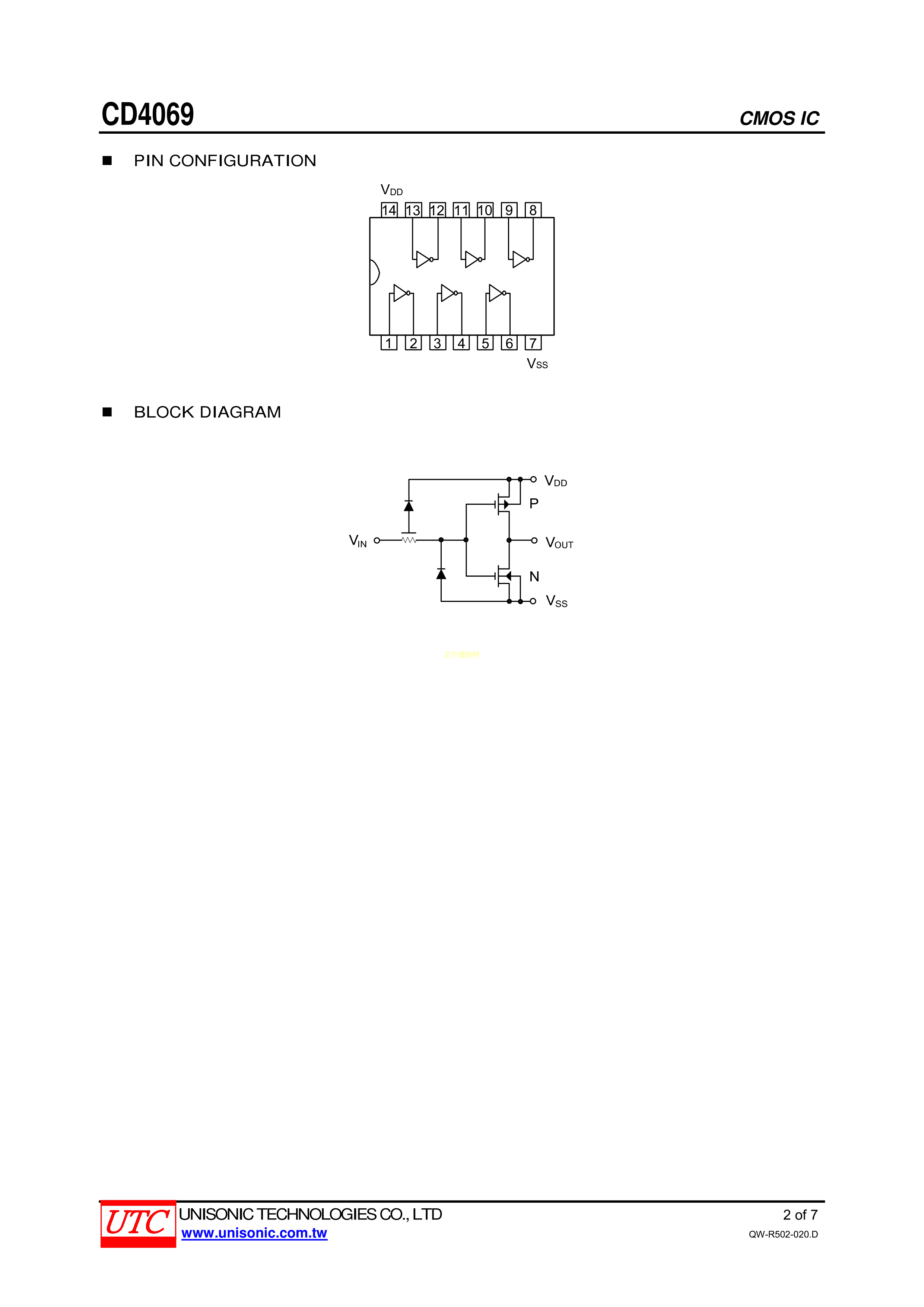 CD4069L-D14-R数据手册DIP-14封装UTC(友顺)PDF规格书,中英文下载