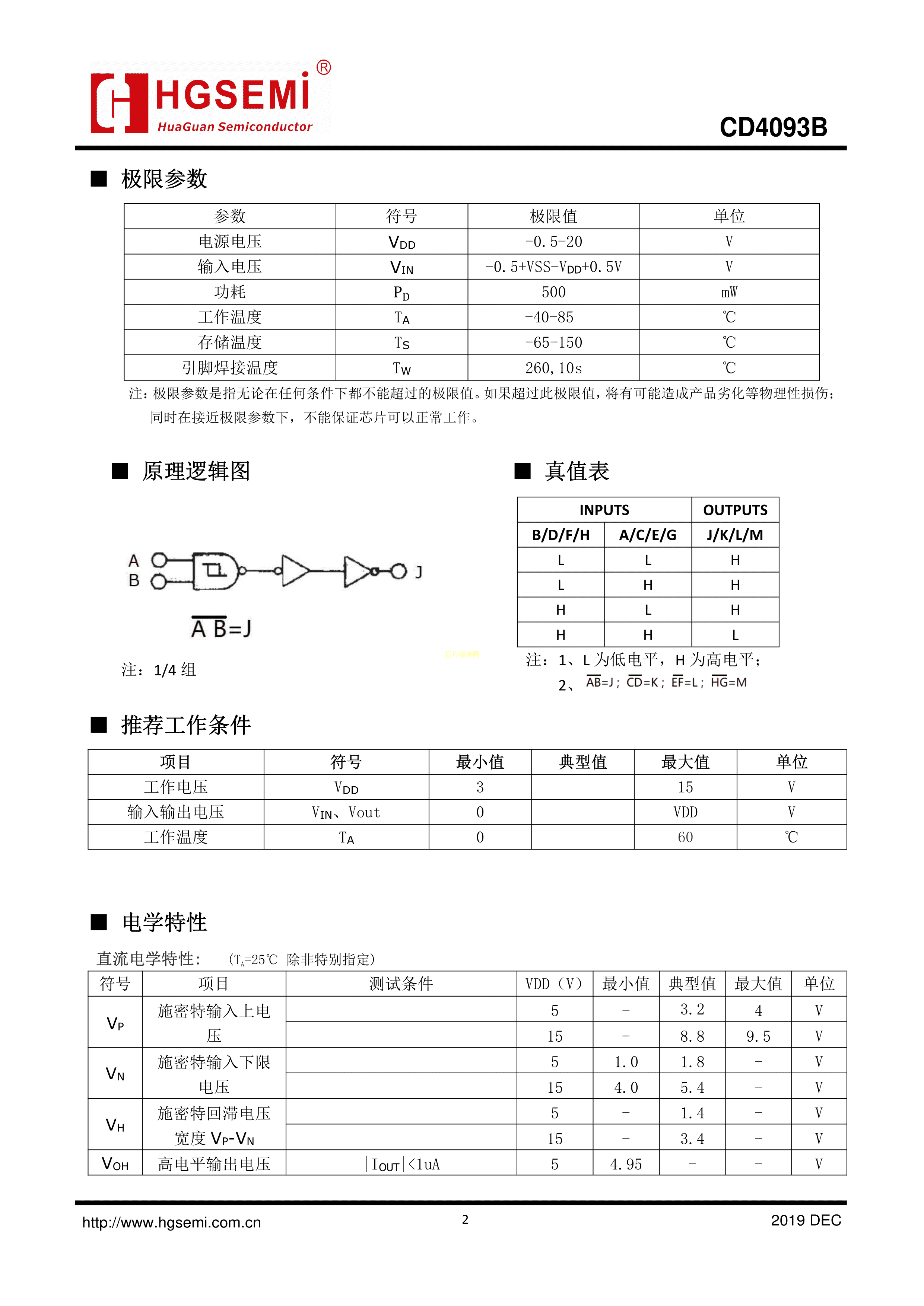 CD4093BM-TR数据手册SOP-14L封装HGSEMI(华冠)PDF规格书,中英文下载