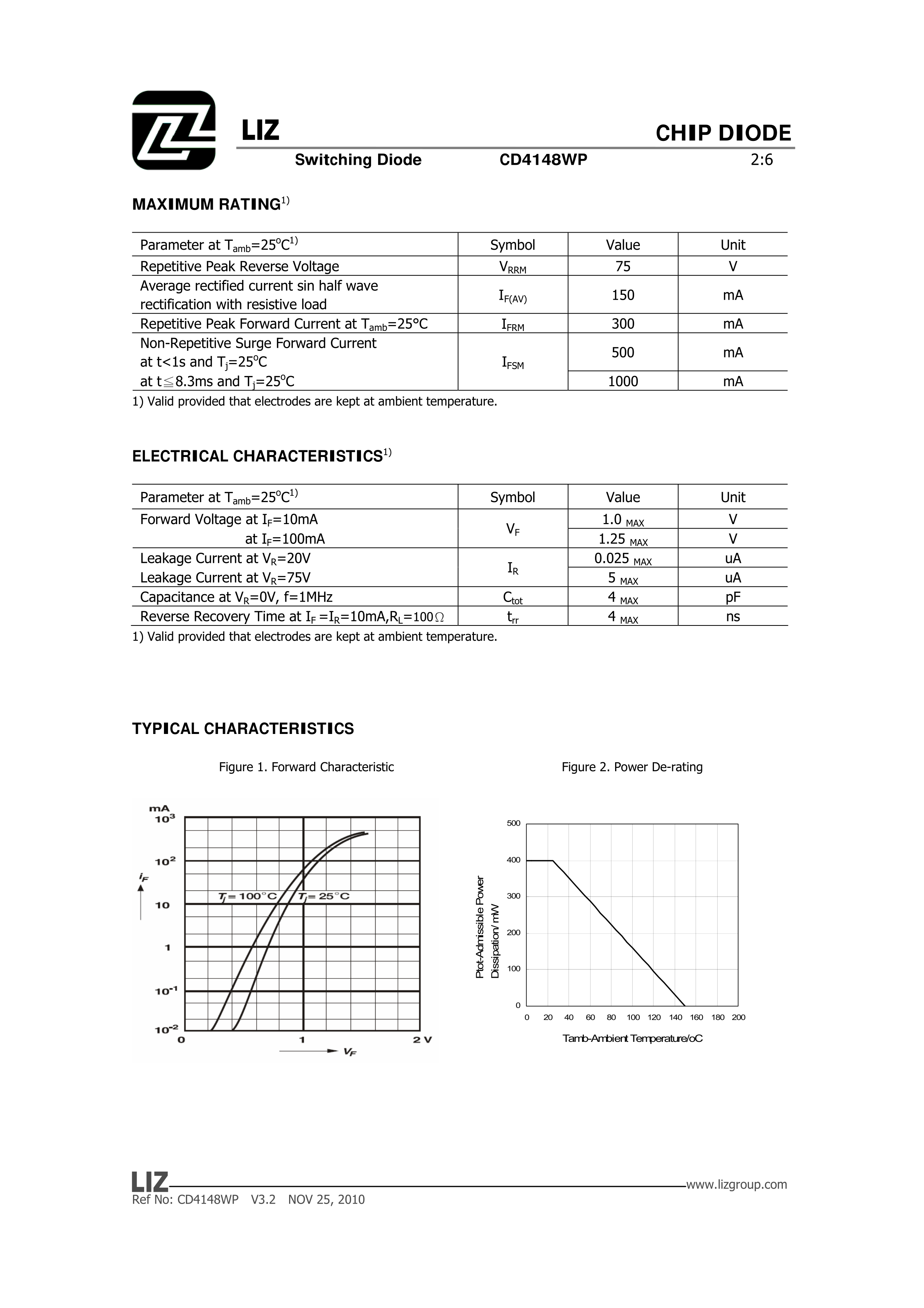 CD4148WP数据手册1206封装LIZ(丽智电子)PDF规格书,中英文下载