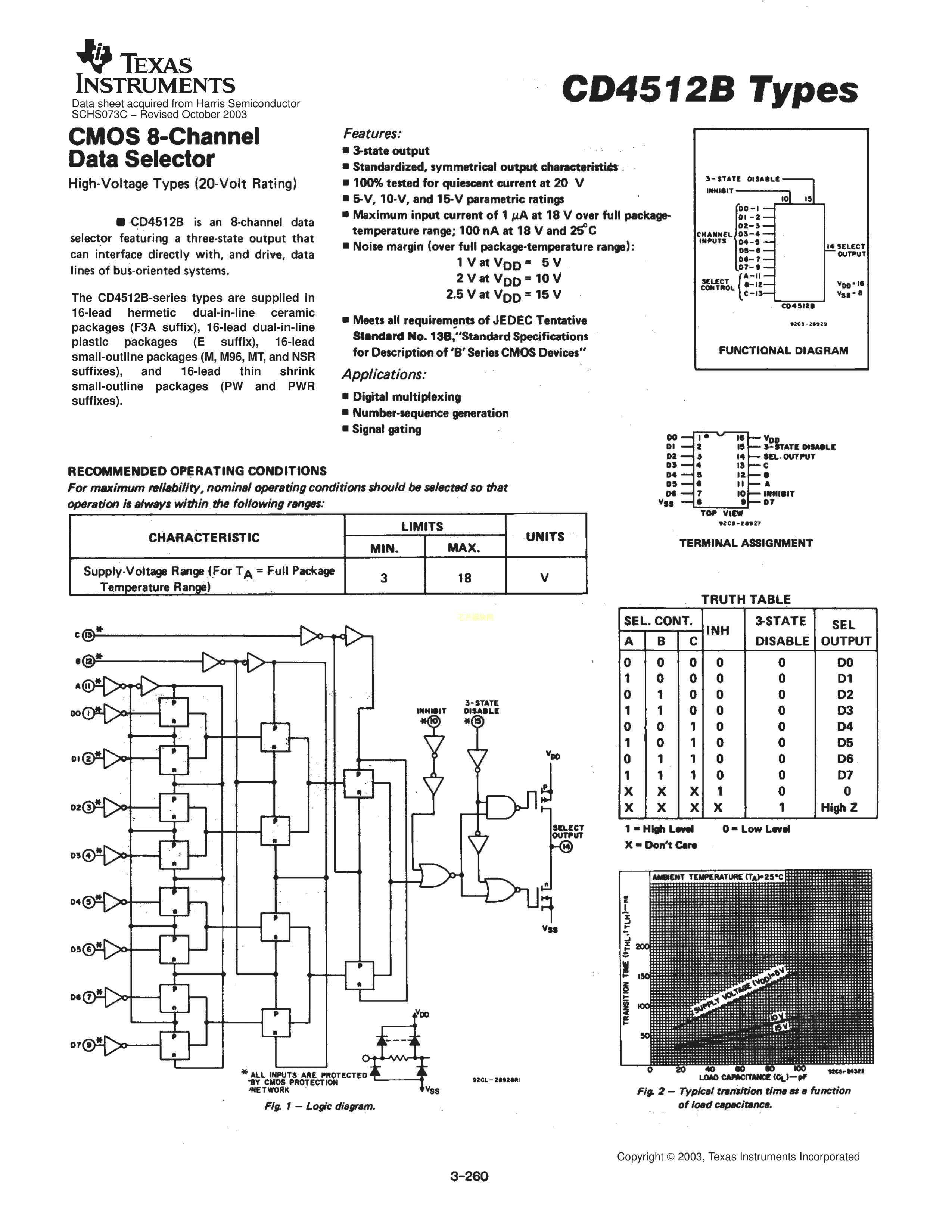 CD4512BM96数据手册SOIC-16封装TI(德州仪器)PDF规格书,中英文下载