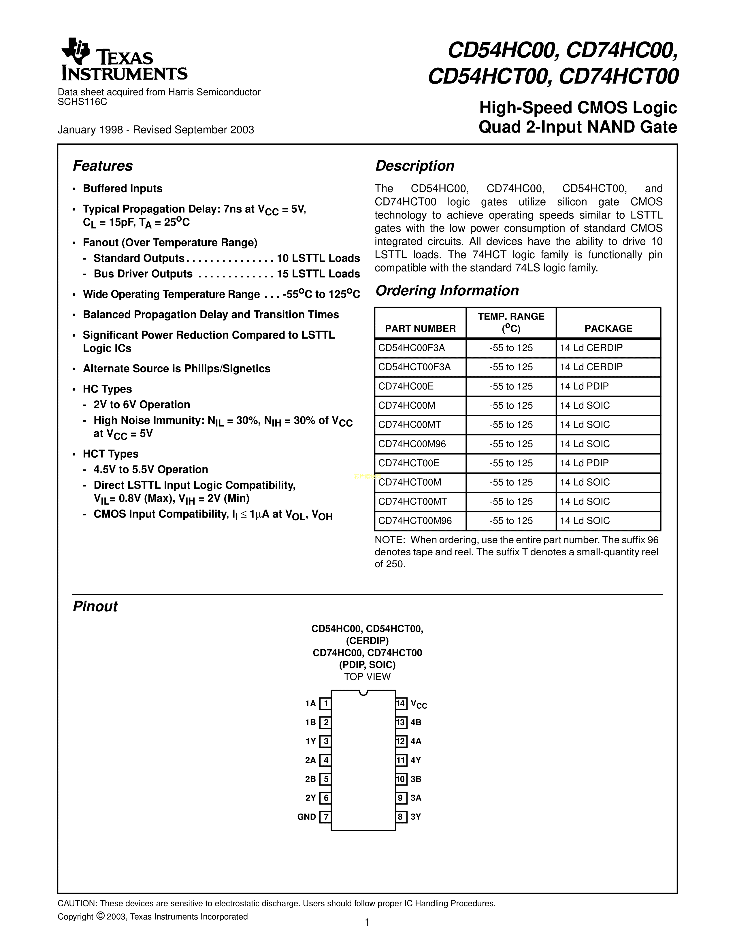 CD74HC00M96数据手册-封装TI(德州仪器)PDF规格书,中英文下载