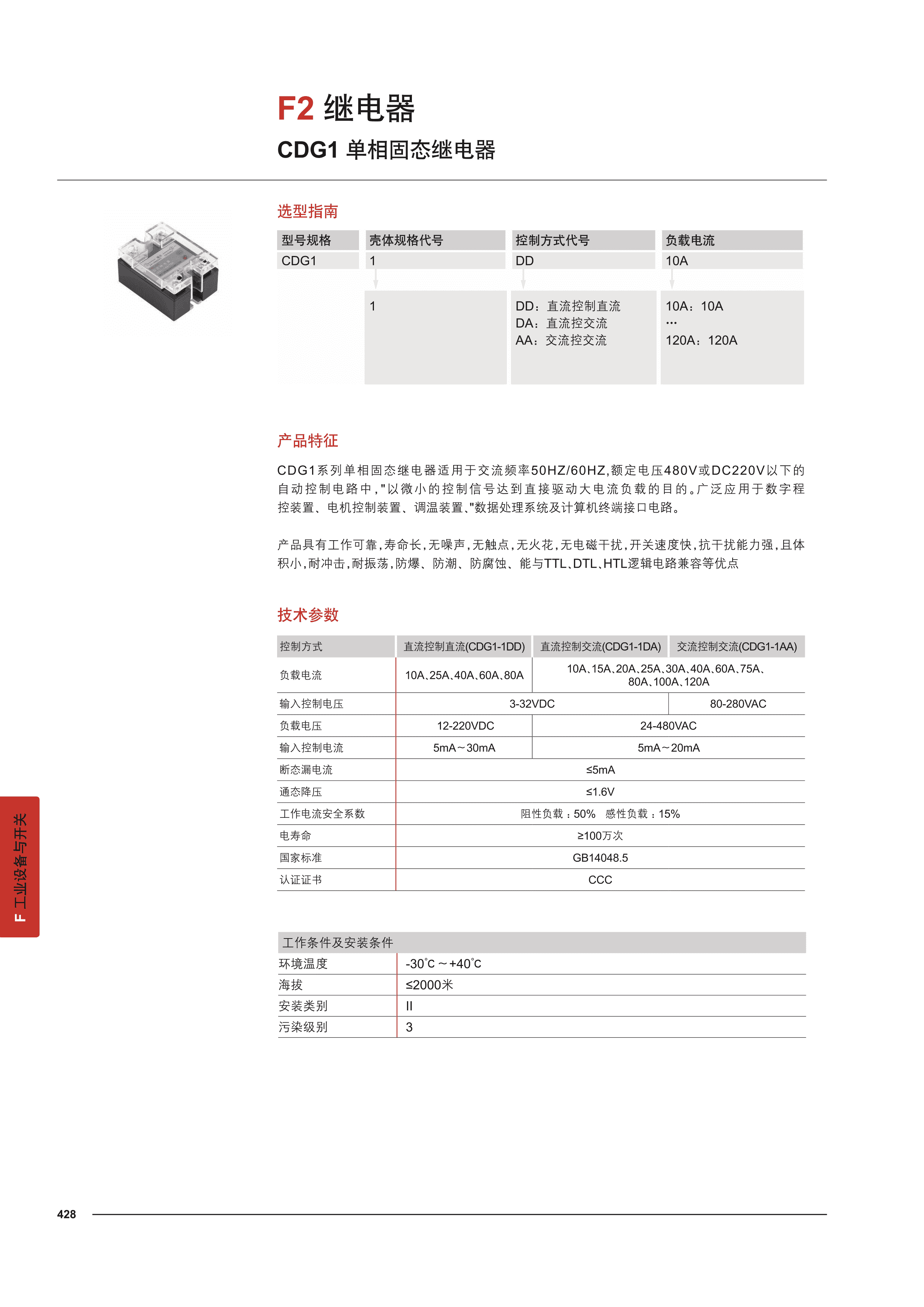 CDG1-1DA-40A数据手册58mmx45mmx33mmm封装DELIXI(德力西)PDF规格书