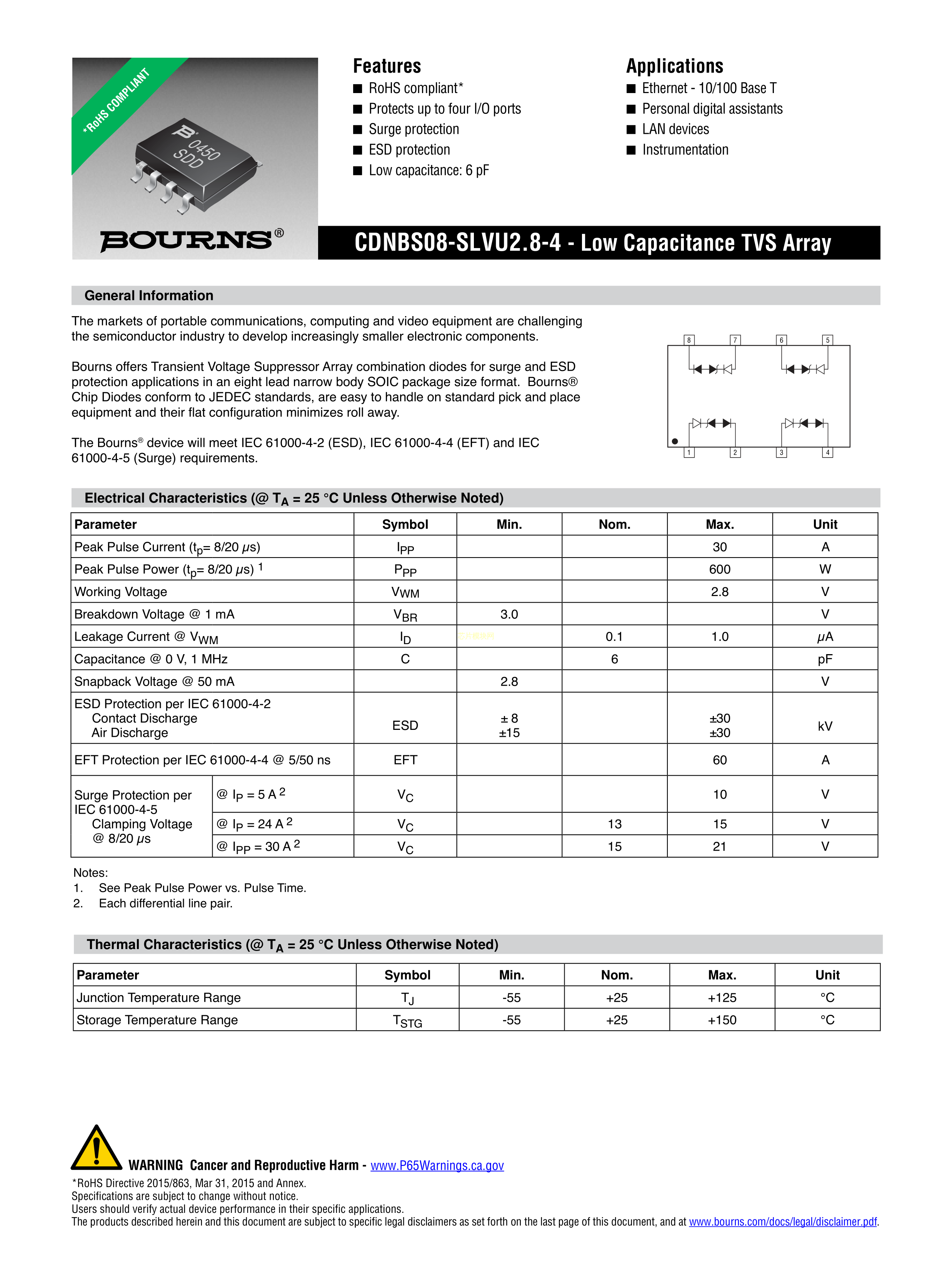 CDNBS08-SLVU2.8-4数据手册SO-8封装BOURNSPDF规格书,中英文下载