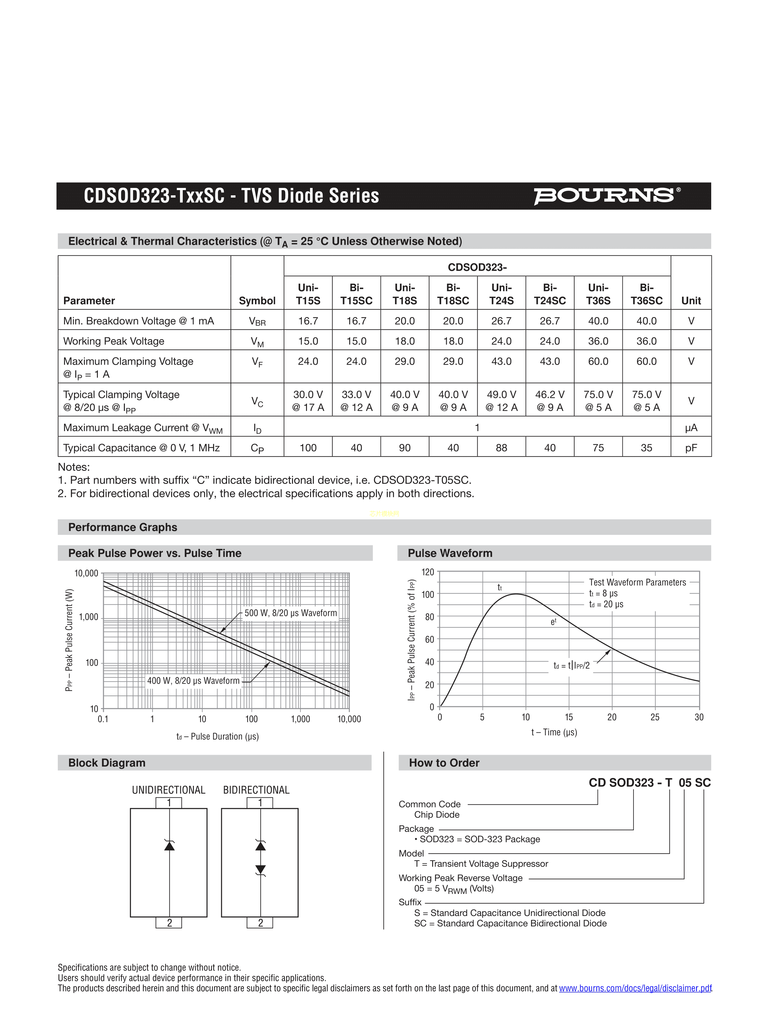 CDSOD323-T12S数据手册SOD-323封装BOURNSPDF规格书,中英文下载