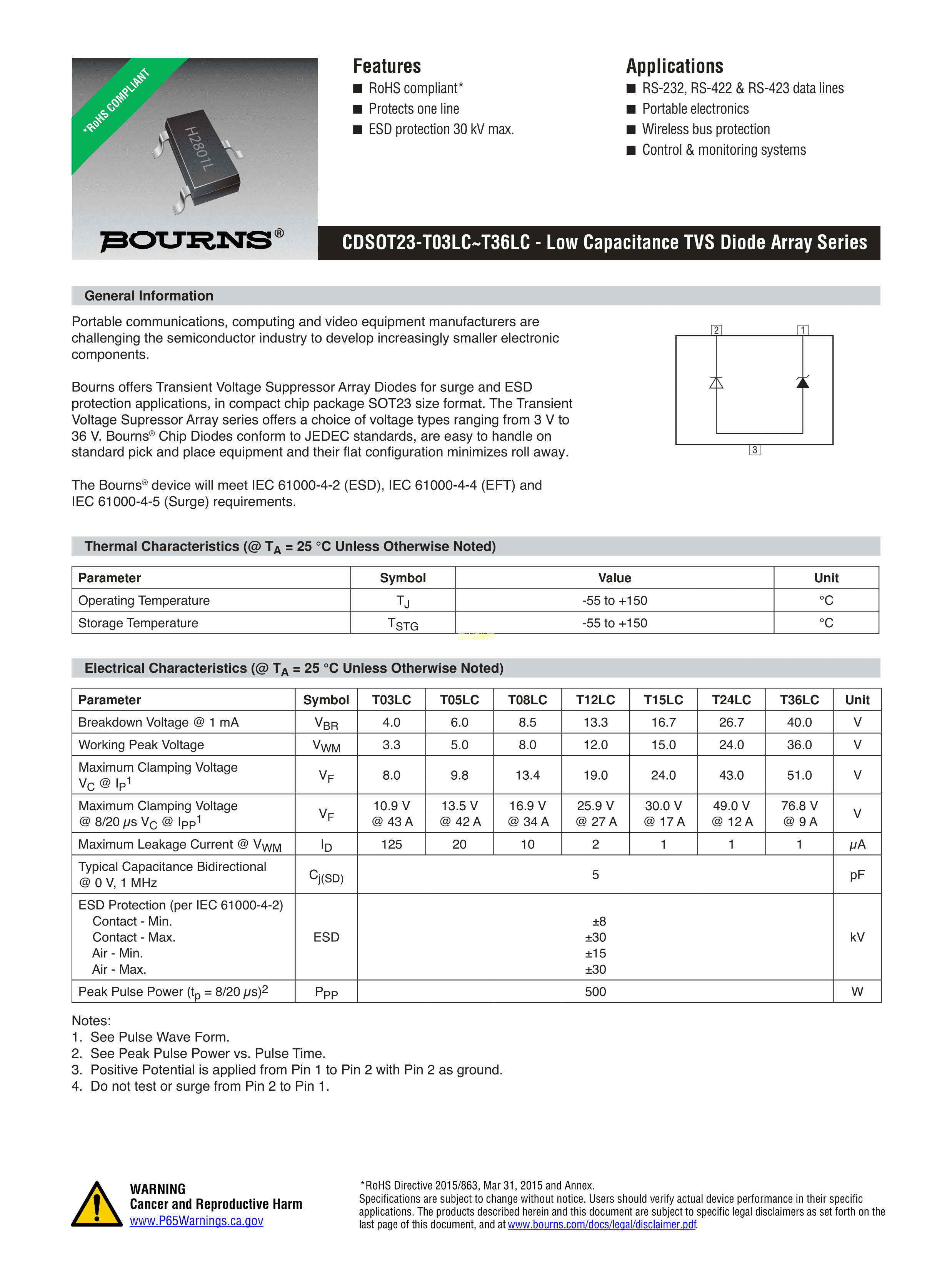 CDSOT23-T15LC数据手册SOT-23-3封装BOURNSPDF规格书,中英文下载