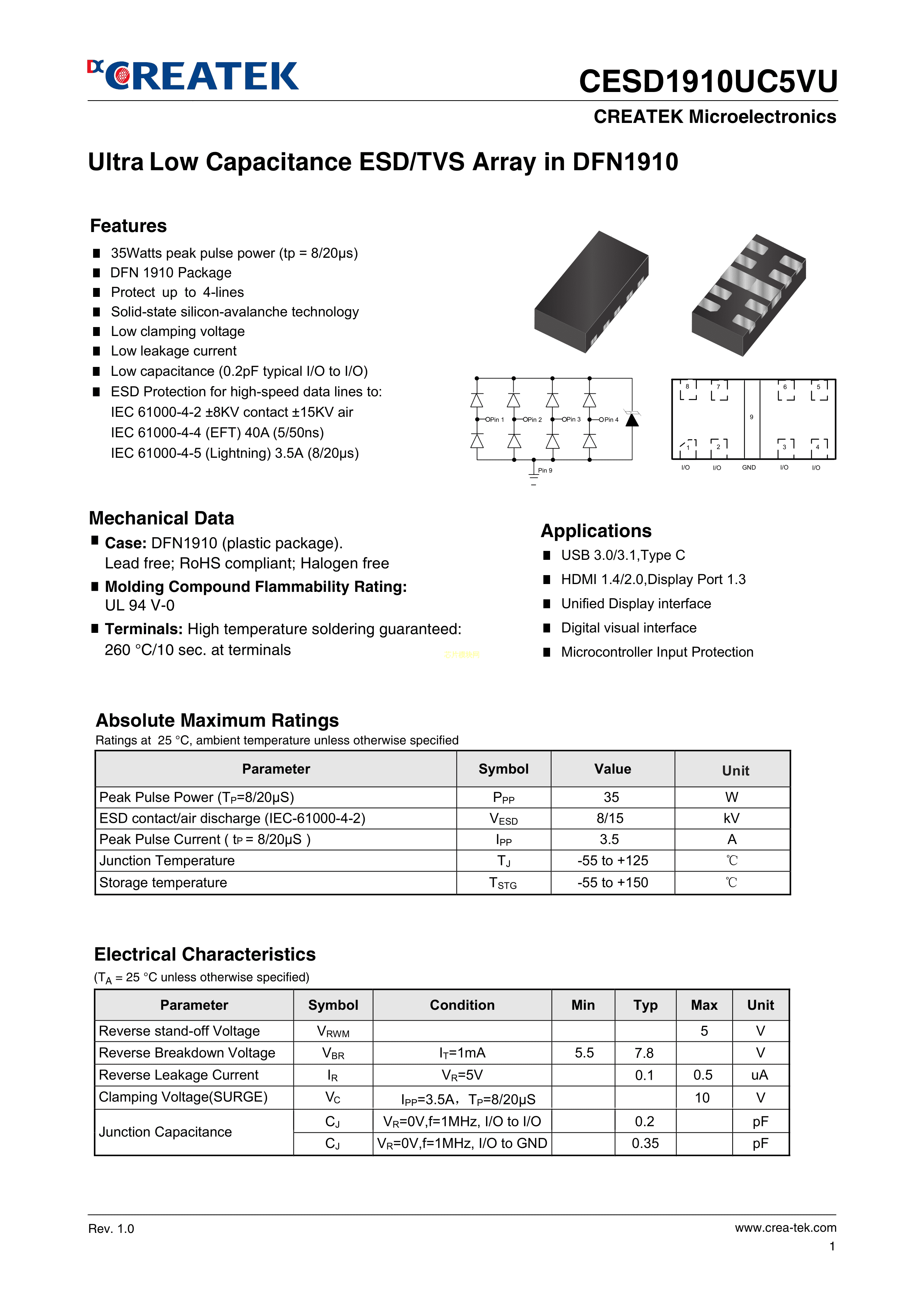 CESD1910UC5VU数据手册DFN1910封装CREATEK(达晶微)PDF规格书,中英文下载