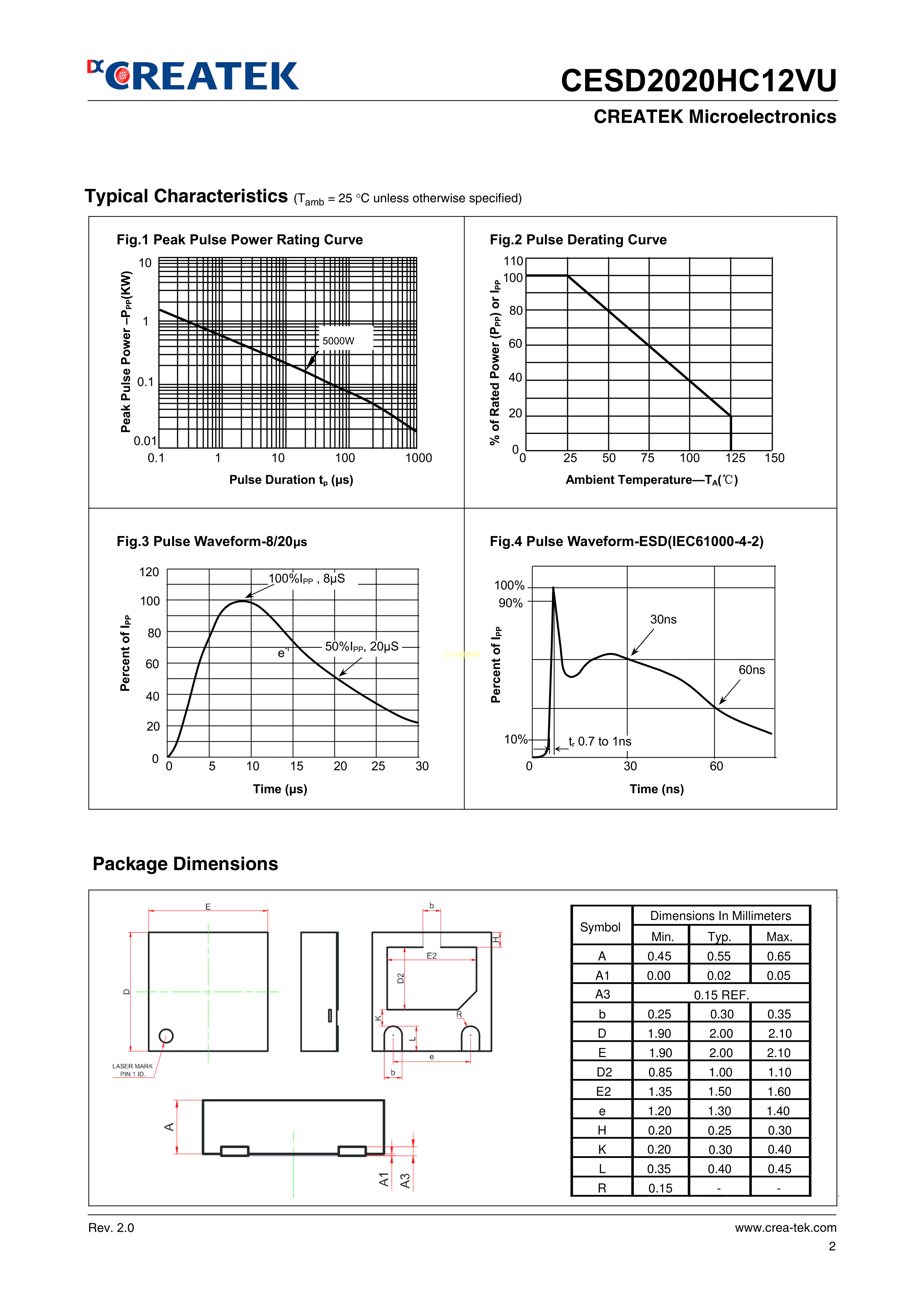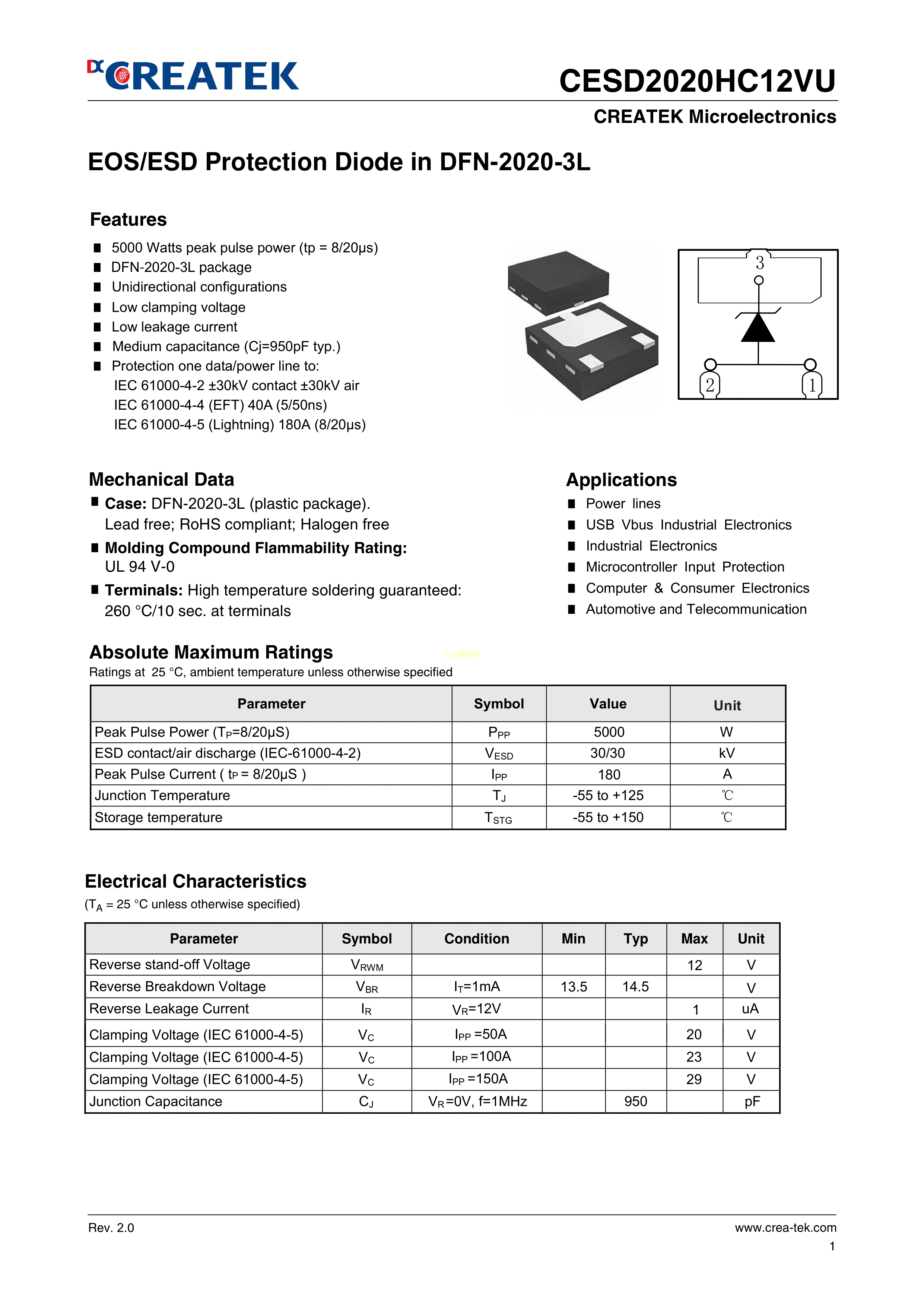 CESD2020HC12VU数据手册DFN2020封装CREATEK(达晶微)PDF规格书,中英文下