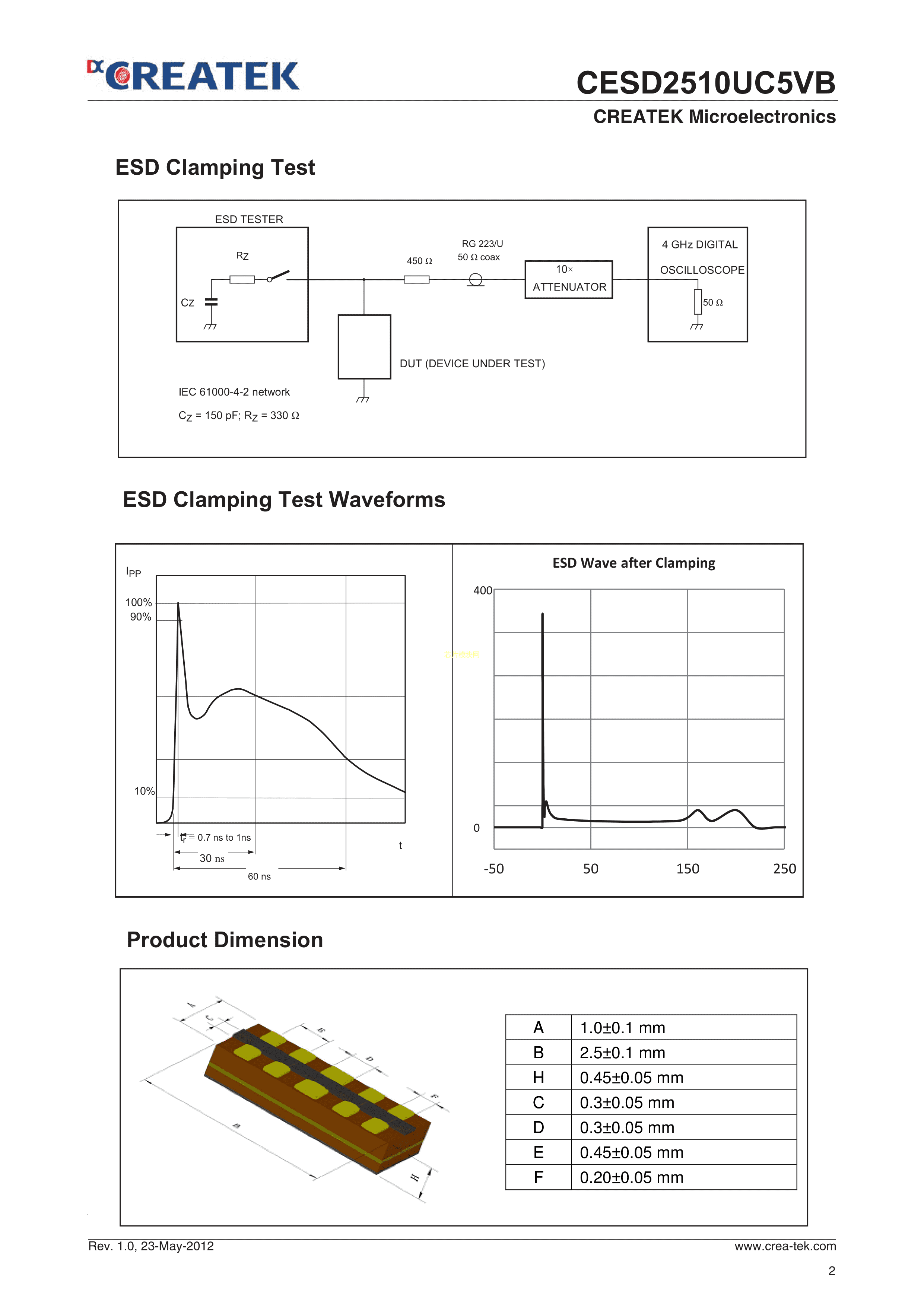 CESD2510UC5VB数据手册DFN2510封装CREATEK(达晶微)PDF规格书,中英文下载