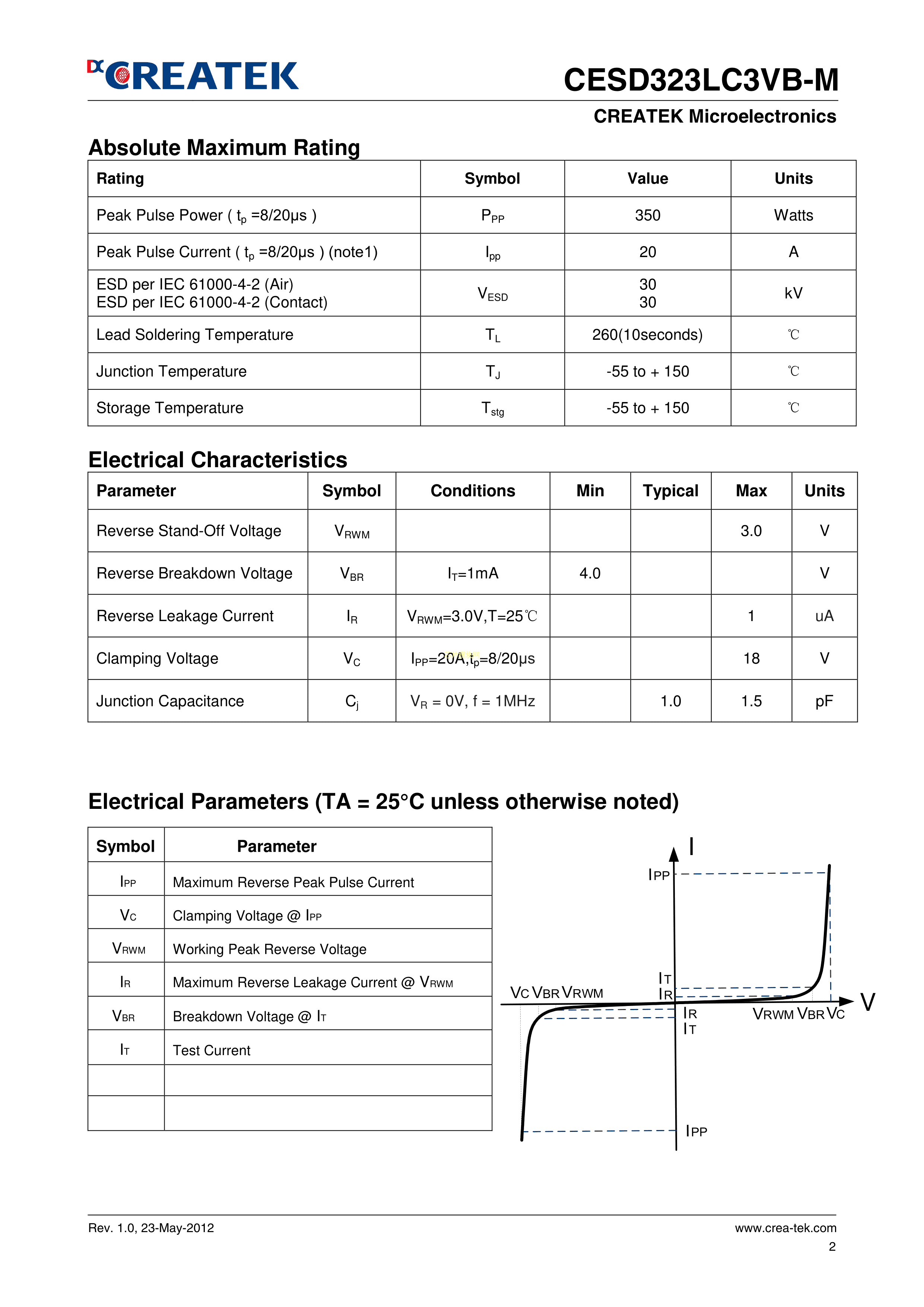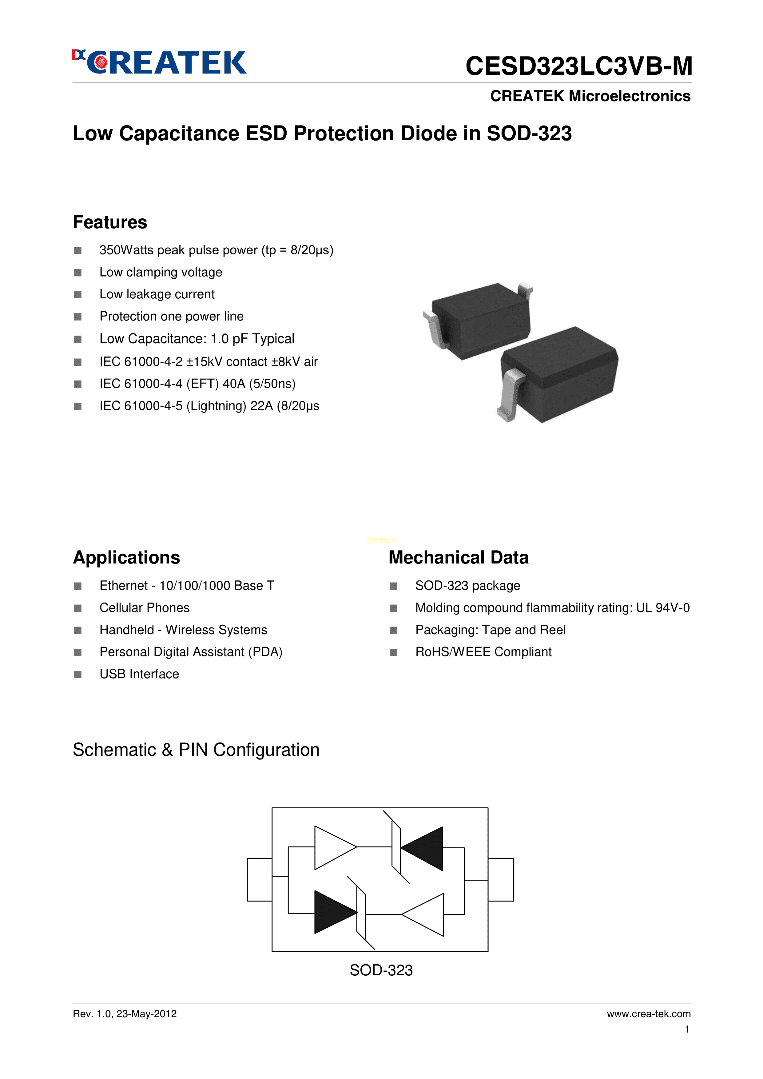 CESD323LC3VB-M数据手册SOD-323封装CREATEK(达晶微)PDF规格书,中英文下载