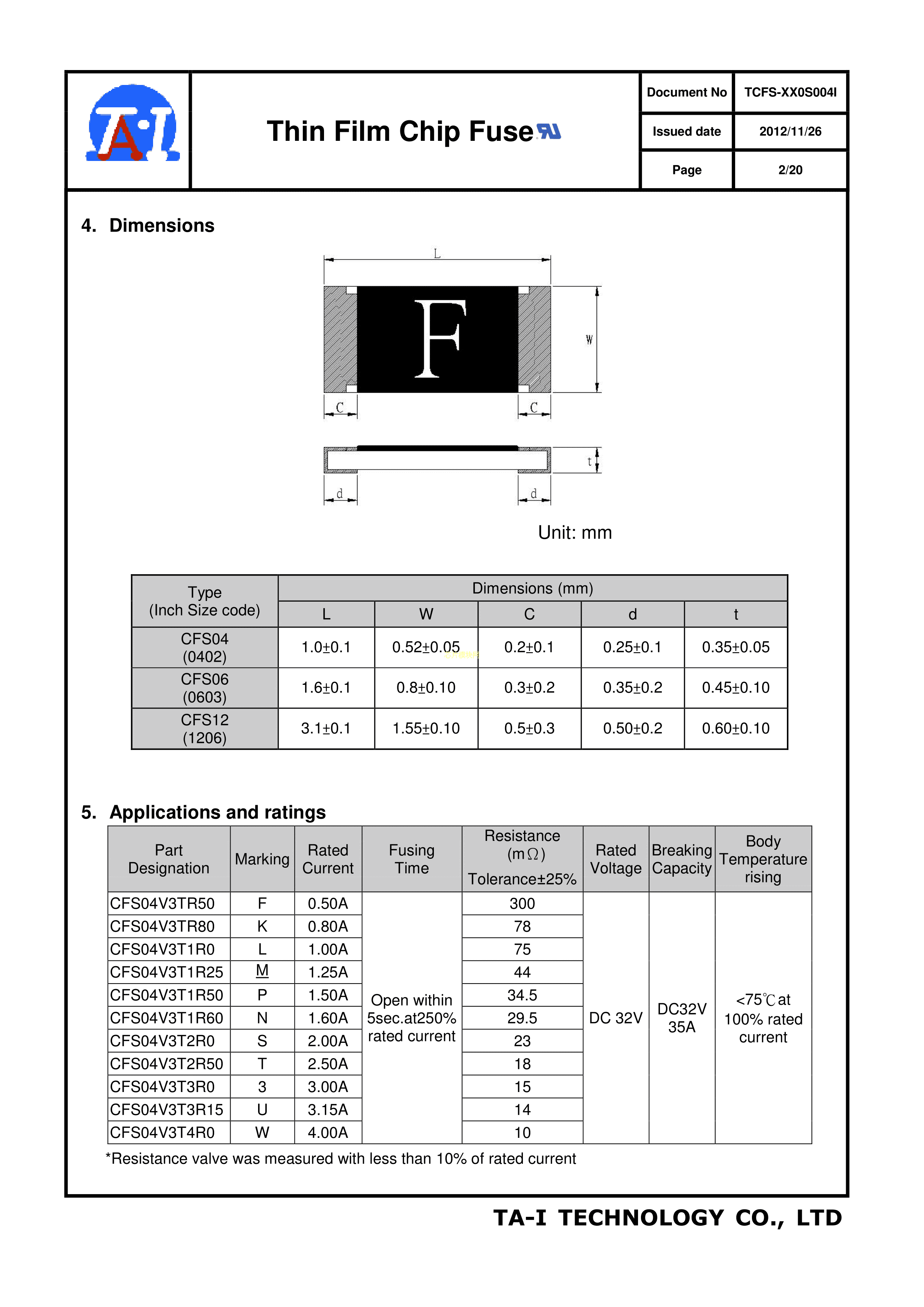 CFS12V3T3R00数据手册1206封装台湾大毅PDF规格书,中英文下载
