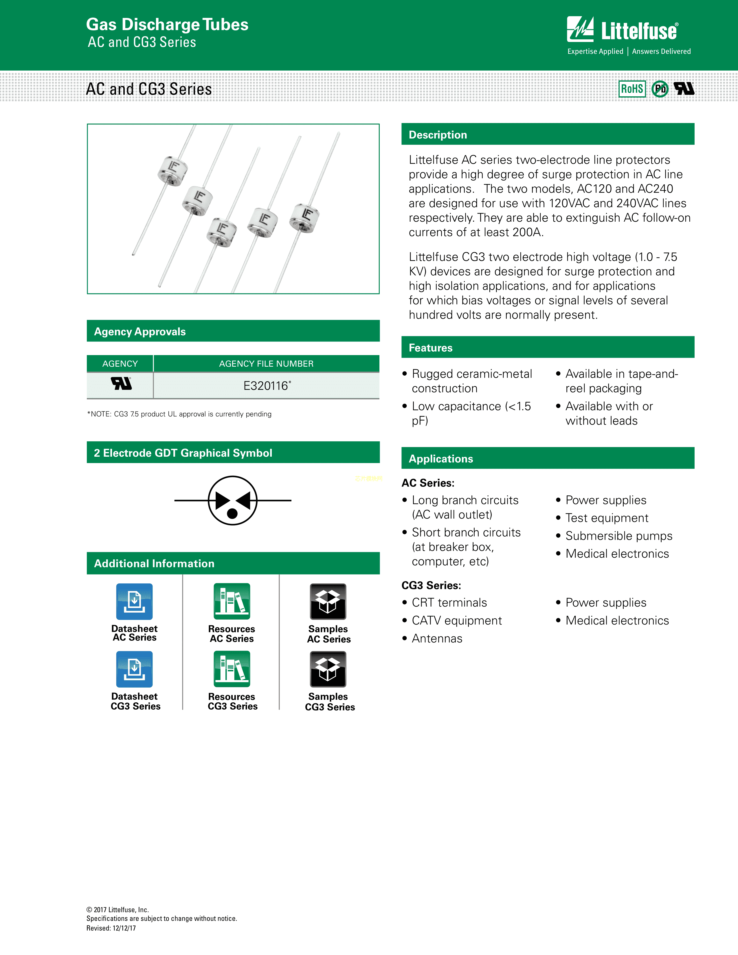 CG33.0LTR数据手册轴向引线封装Littelfuse(美国力特)PDF规格书,中英文下载