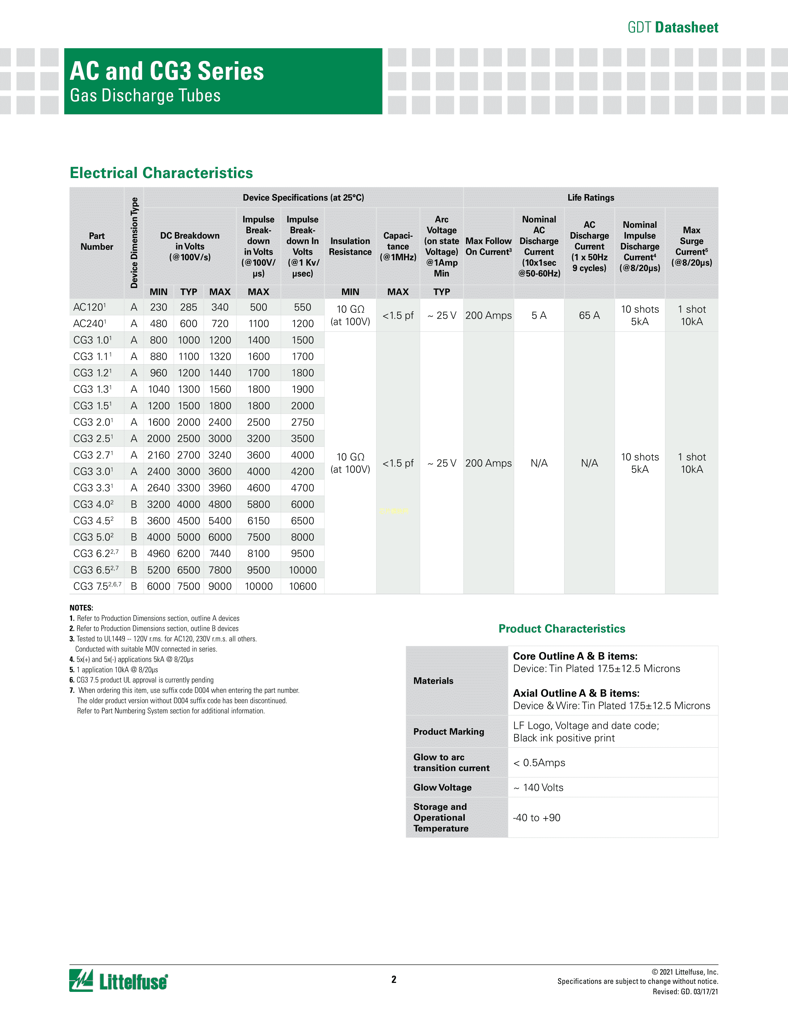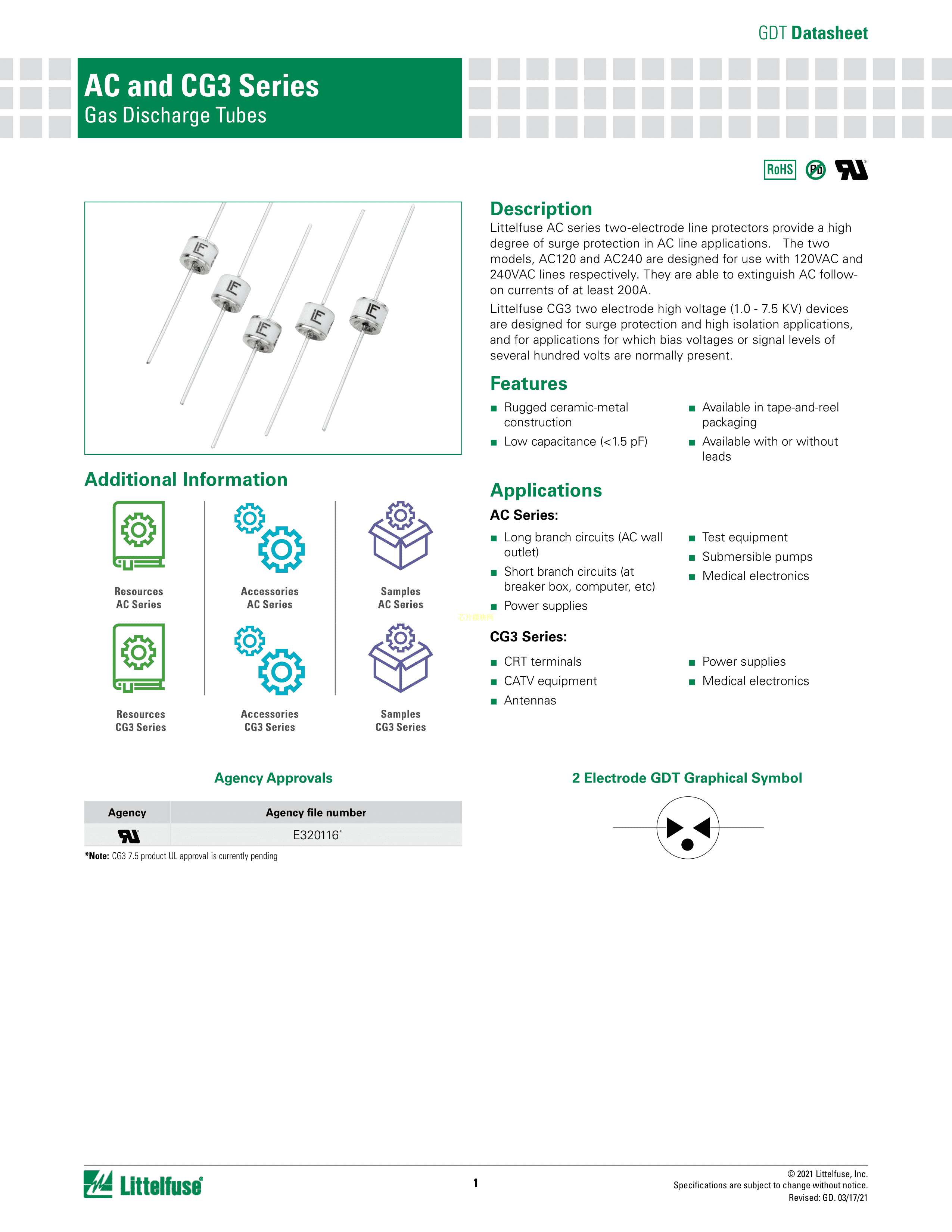CG35.0LTR数据手册轴向引线封装Littelfuse(美国力特)PDF规格书,中英文下载