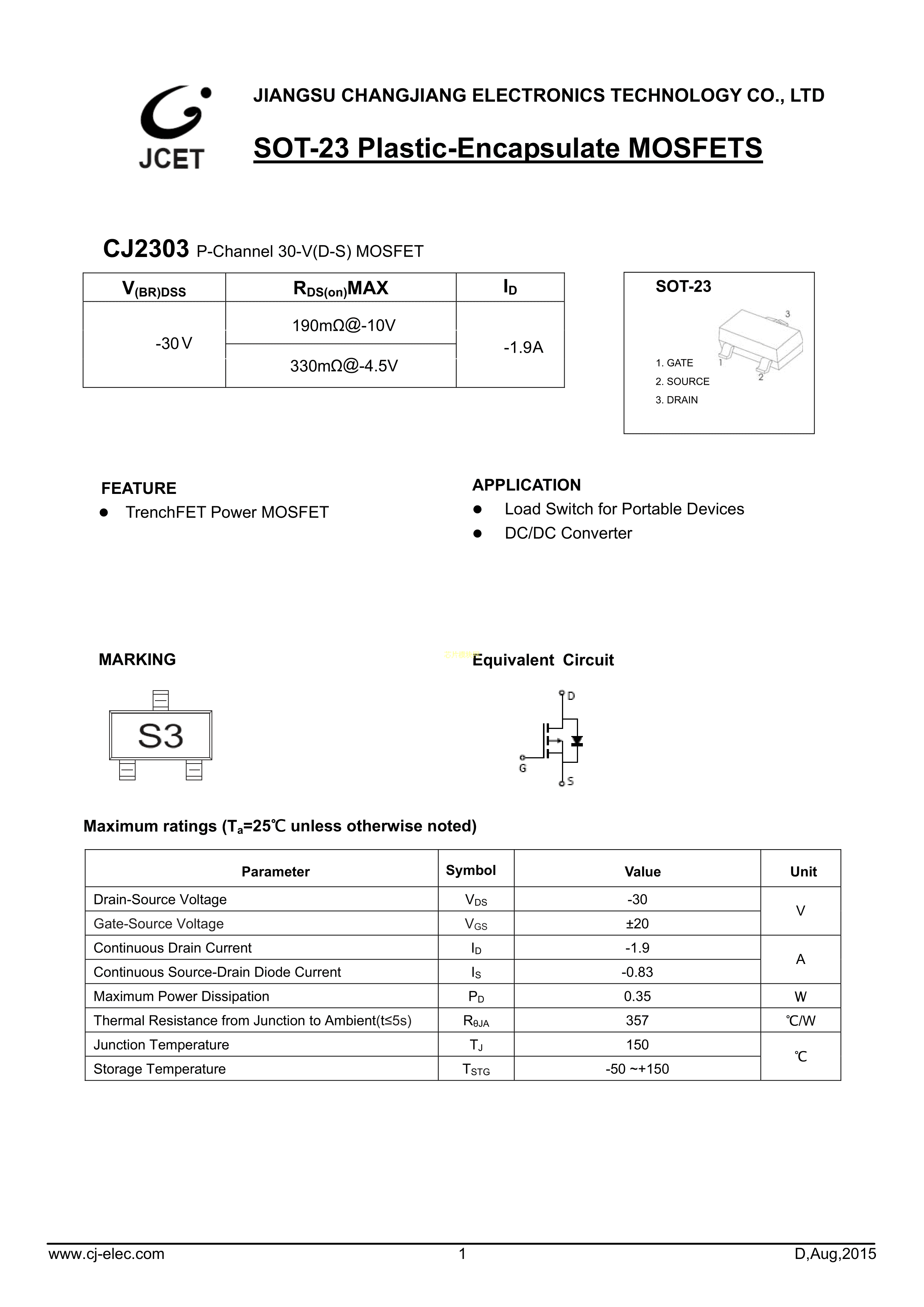 CJ2303数据手册SOT-23(SOT-23-3)封装CJ(江苏长电-长晶)PDF规格书,中英文下