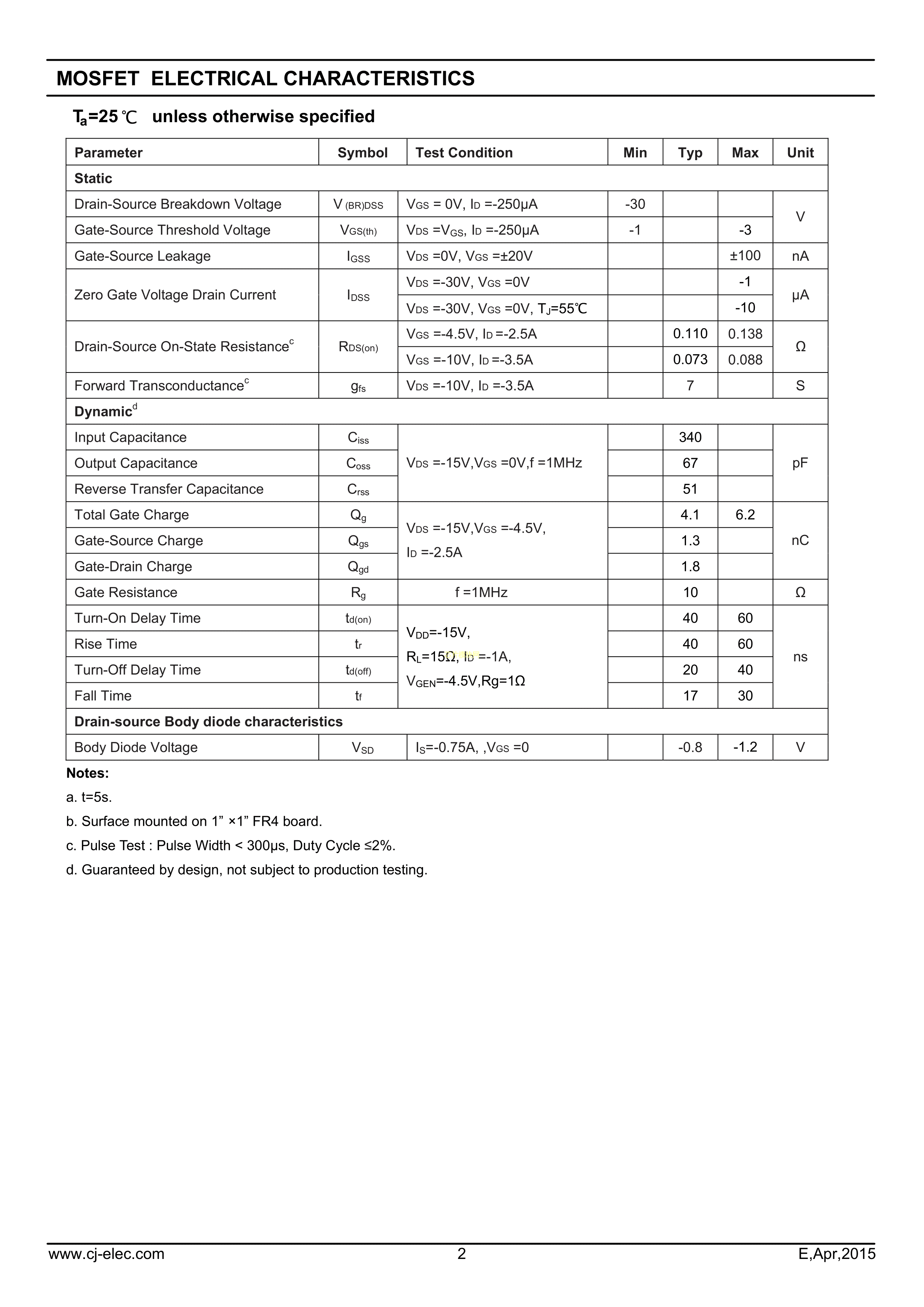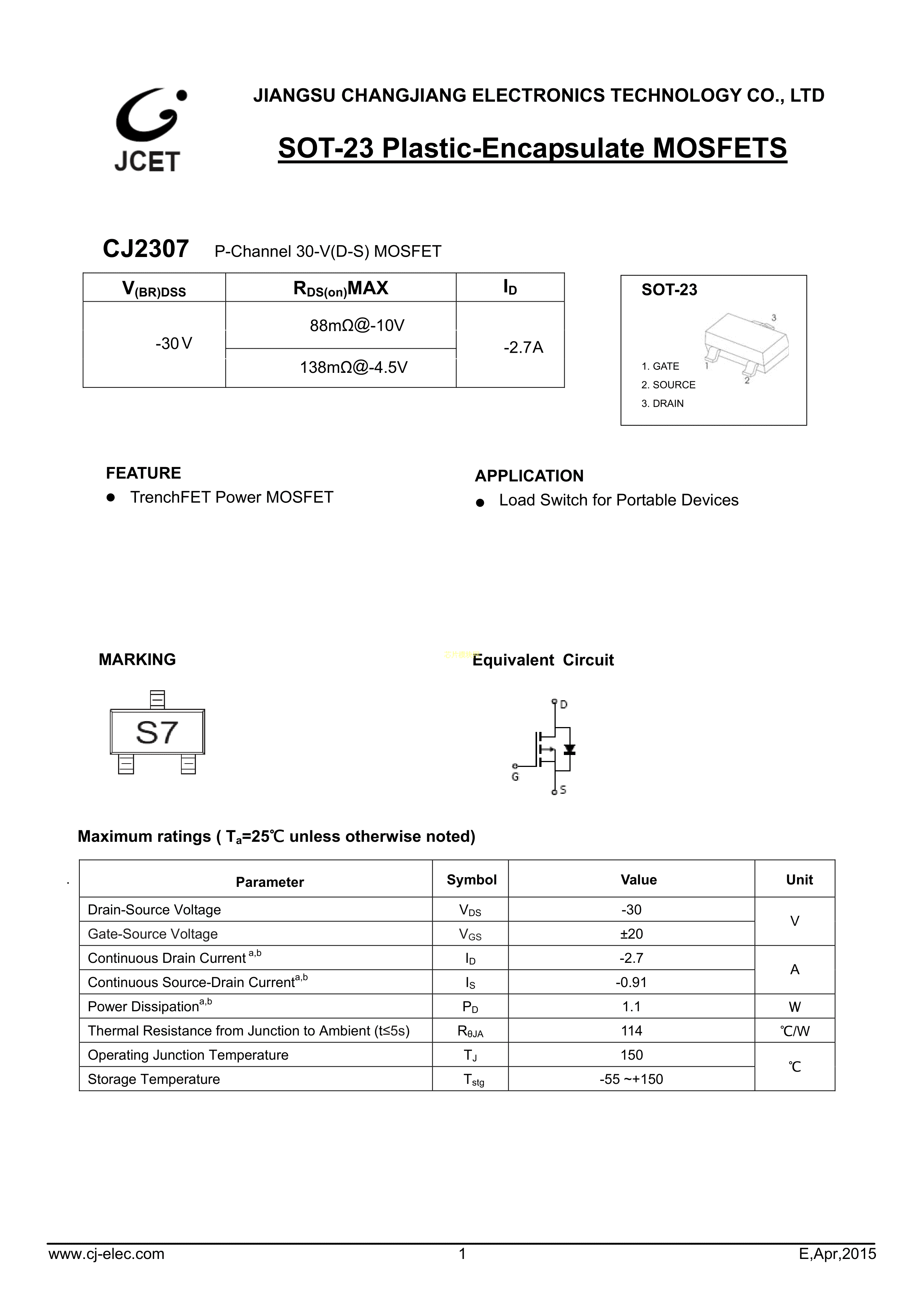 CJ2307数据手册SOT-23(SOT-23-3)封装CJ(江苏长电-长晶)PDF规格书,中英文下