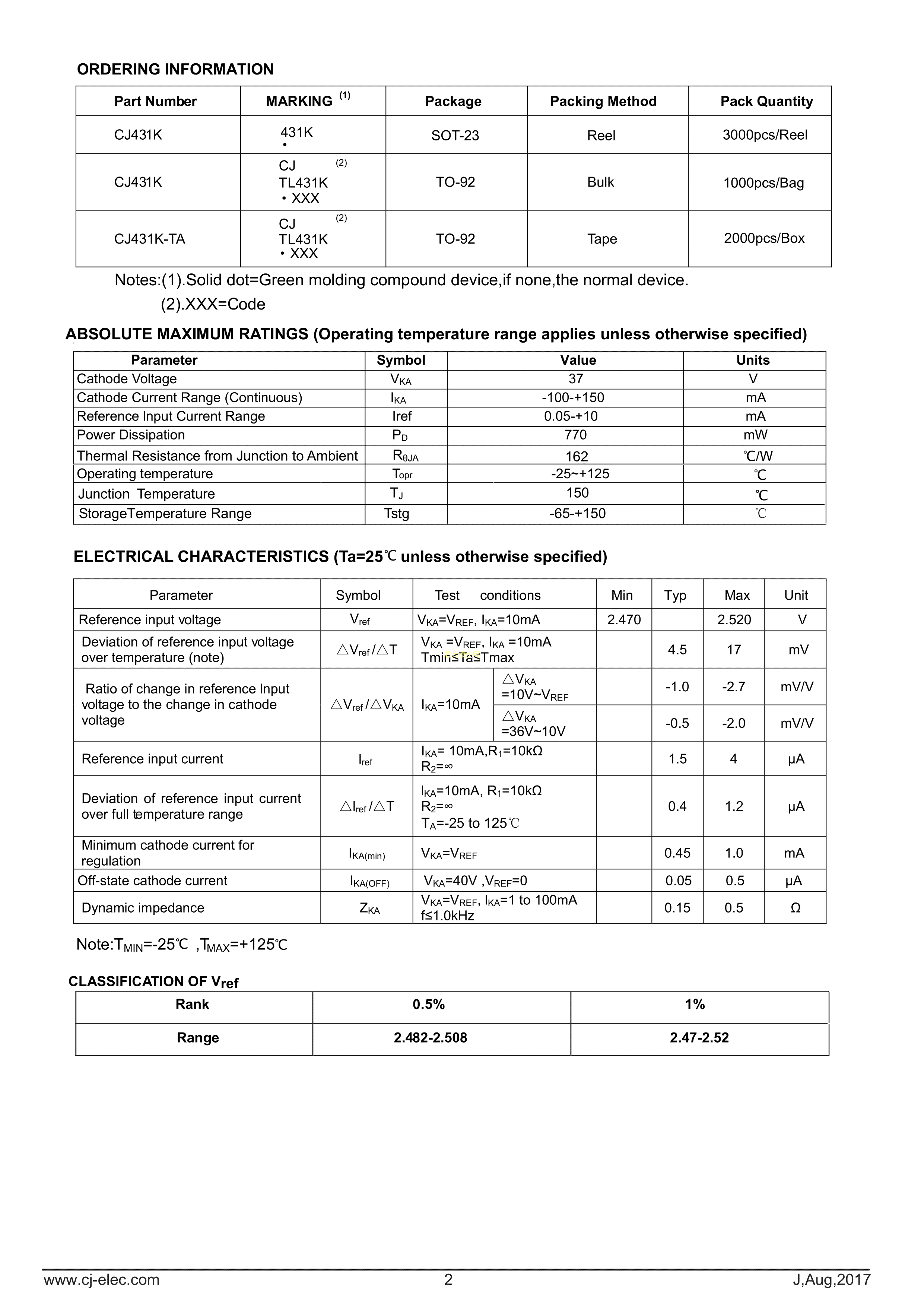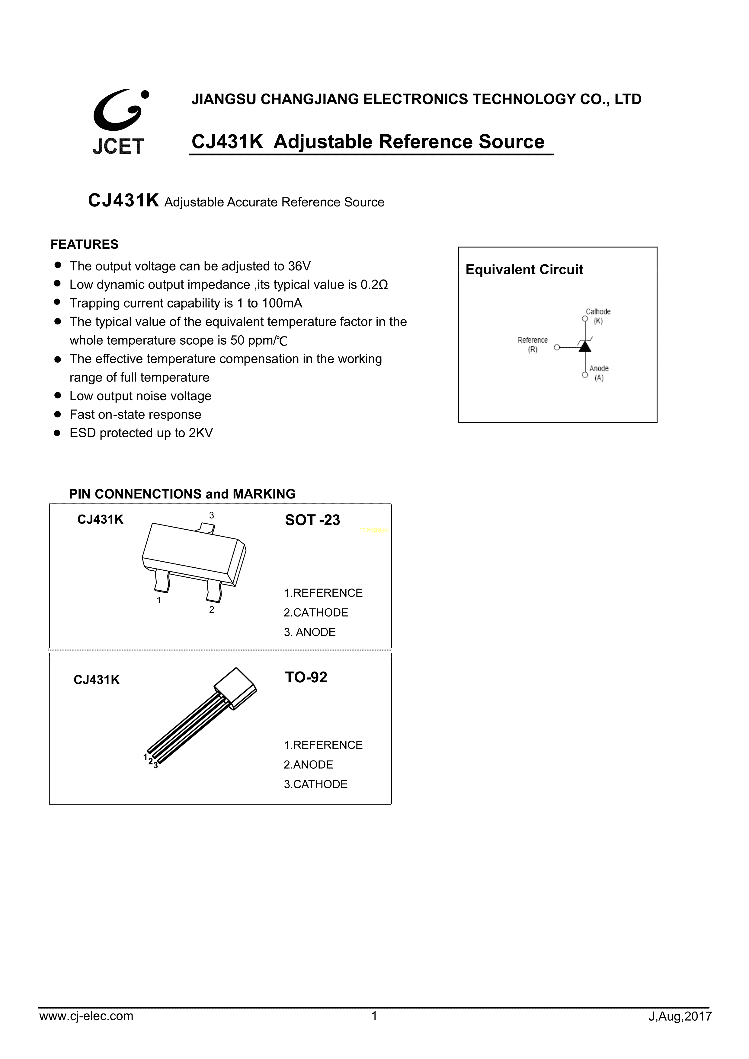 CJ431K-TA数据手册TO-92_Forming1封装CJ(江苏长电-长晶)PDF规格书,中英文
