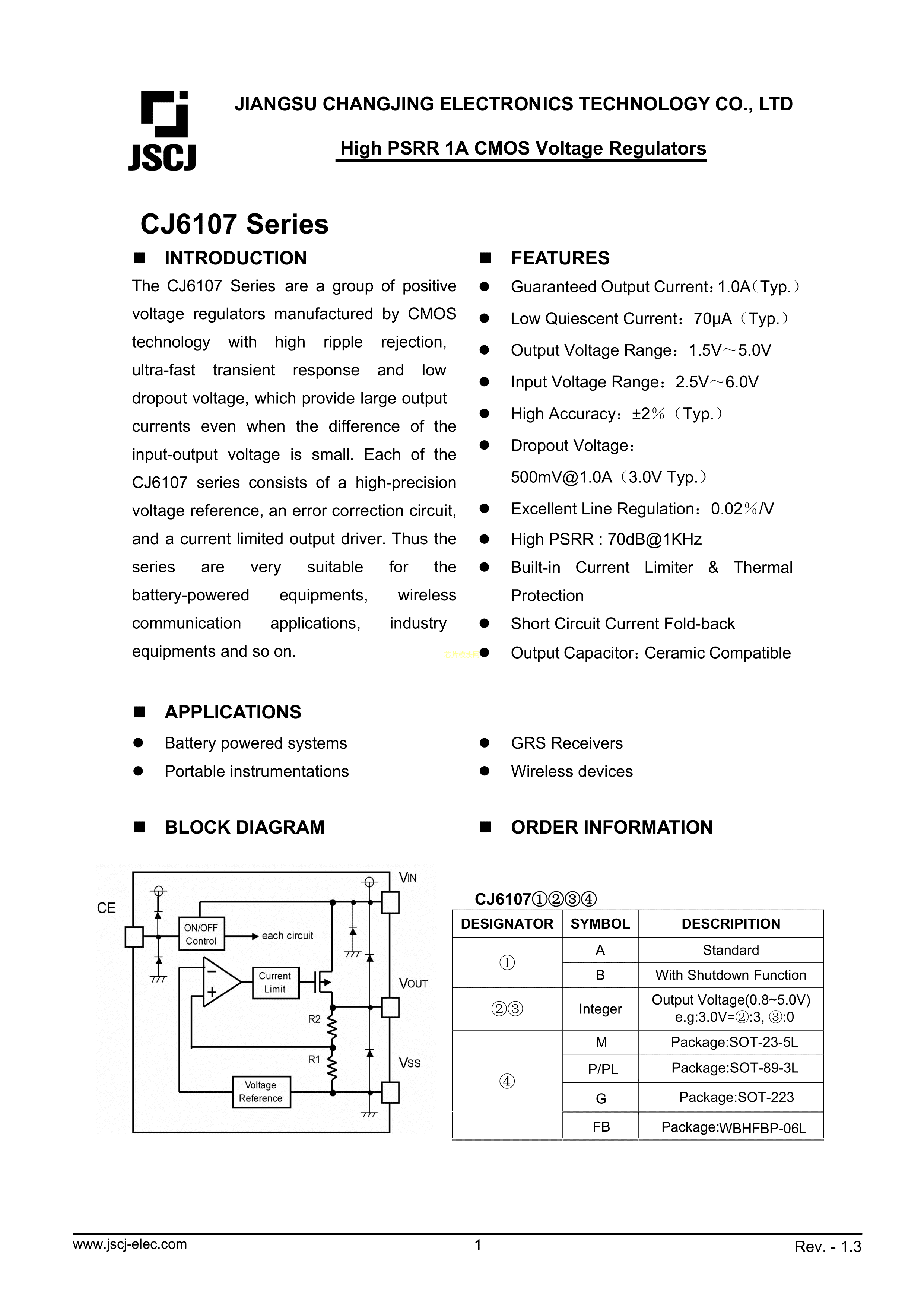 CJ6107A33GW数据手册SOT-223封装CJ(江苏长电-长晶)PDF规格书,中英文下载