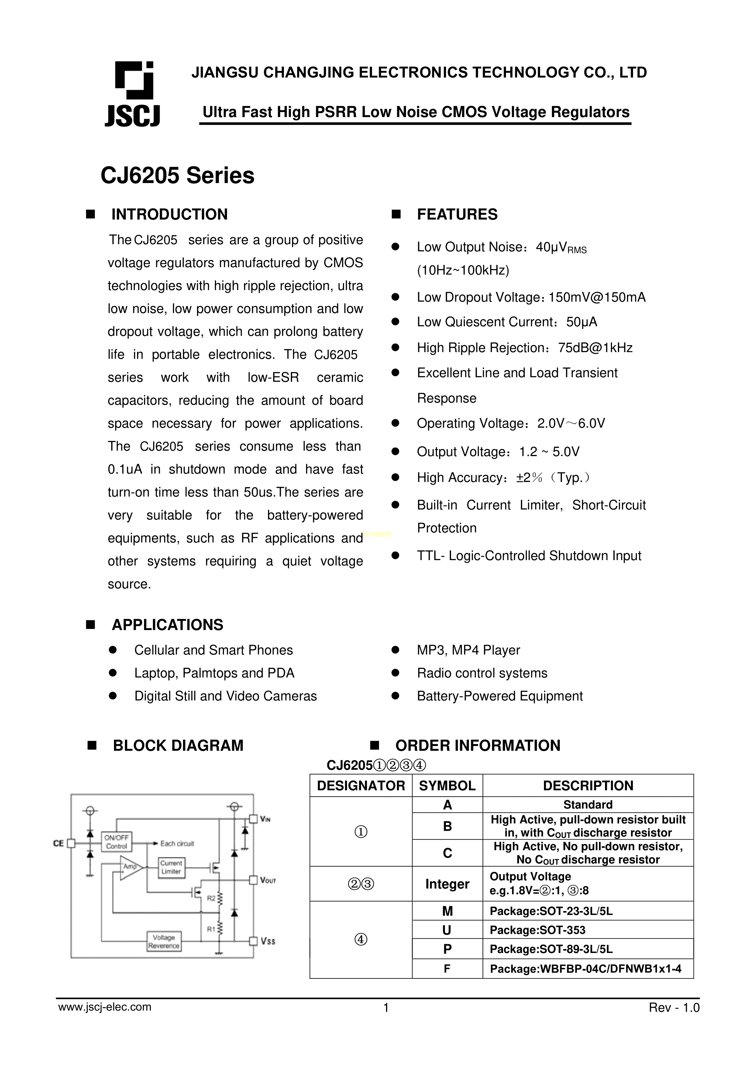 CJ6205B25M数据手册SOT-23-5L封装CJ(江苏长电-长晶)PDF规格书,中英文下载