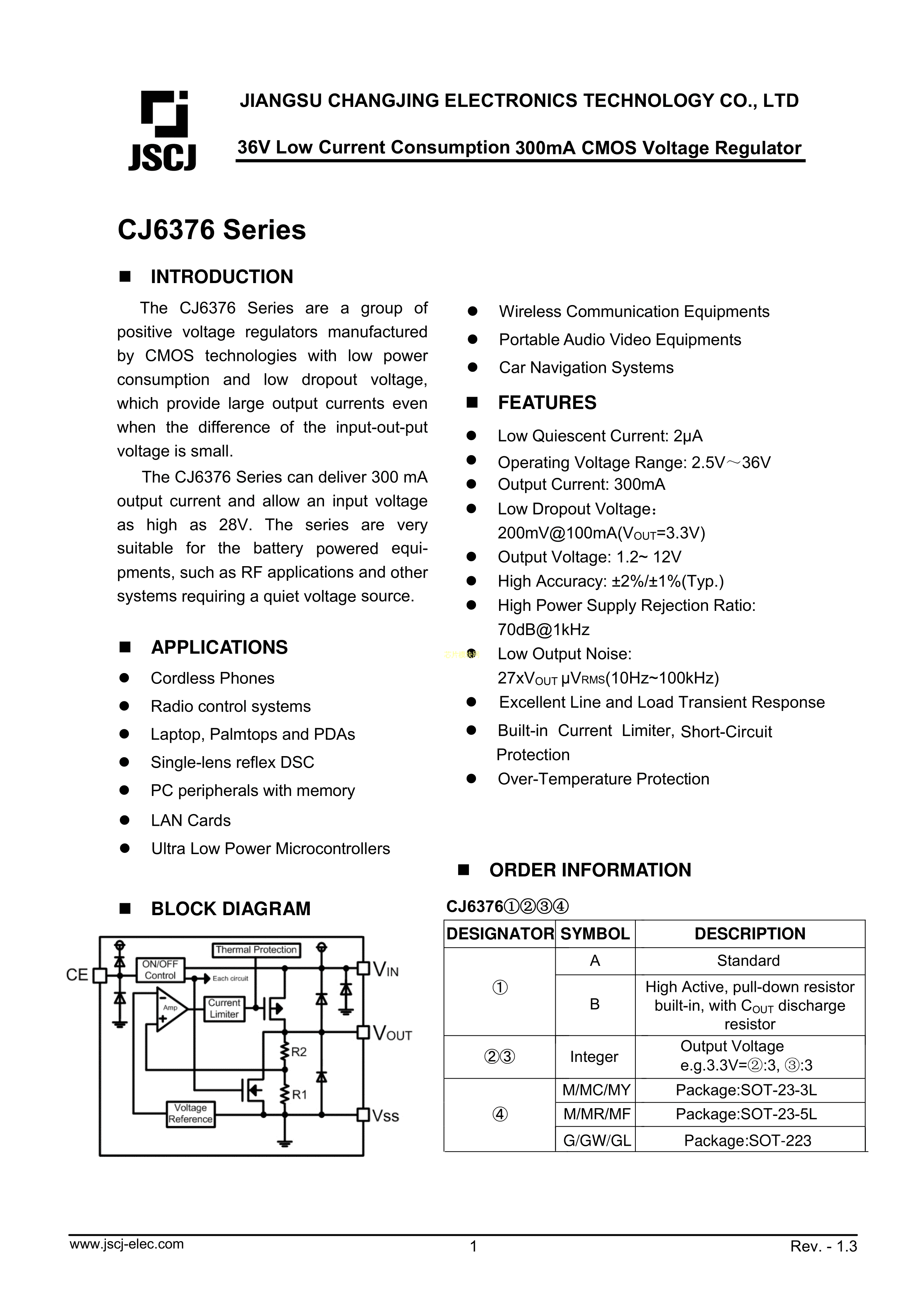 CJ6376B33M数据手册SOT-23封装CJ(江苏长电-长晶)PDF规格书,中英文下载